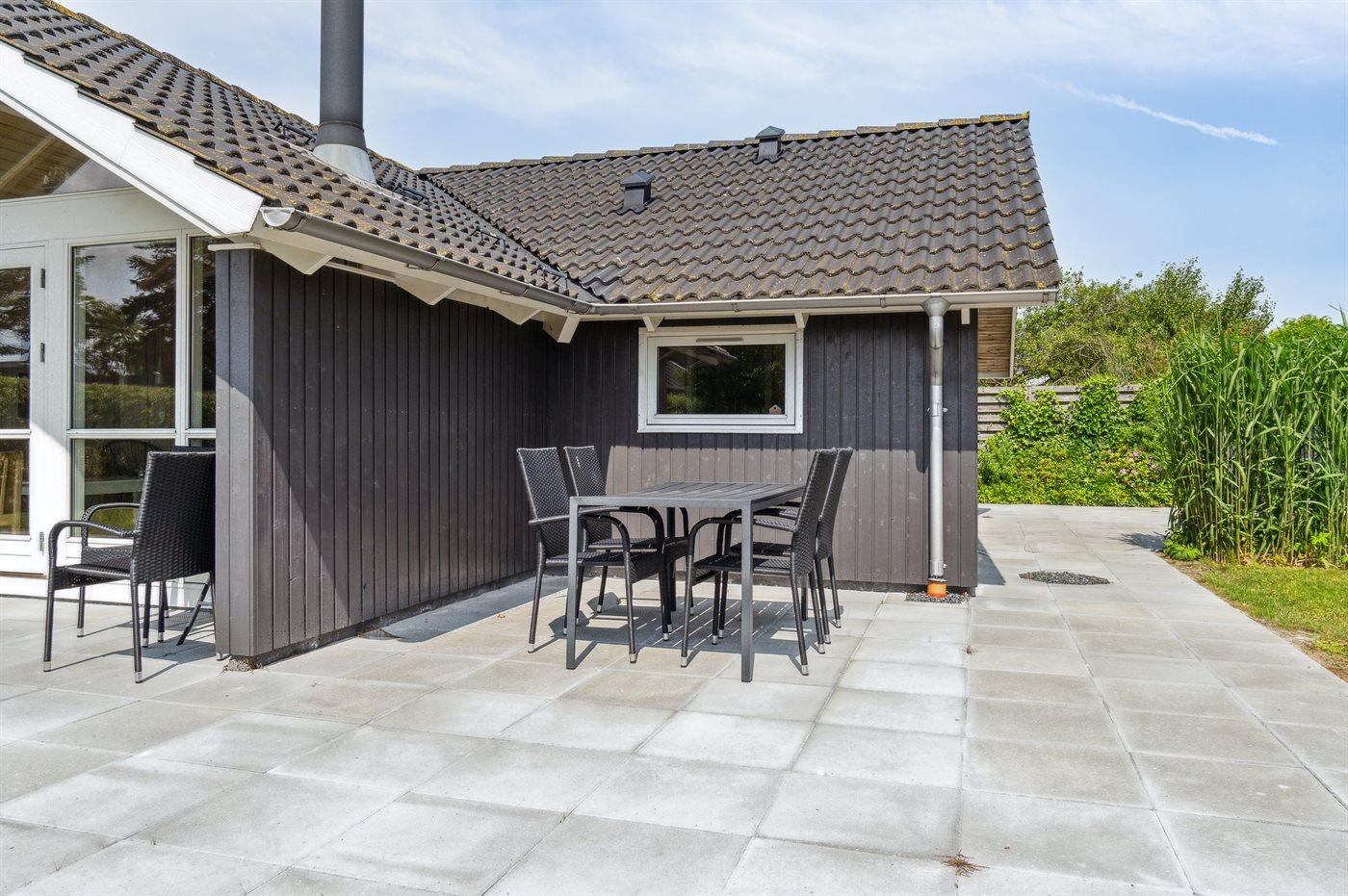 Ferieboligen er beliggende på en 2152 m² stor havegrund. Der er 150 m til havet. Der er 11100 m til fjorden. Nærmeste forretning er beliggende i en afstand af 300 m. Der er en golfbane i en afstand af 14800 m. Til ferieboligen hører åbent terrasseareal. Grill til rådighed. Parkering ved ferieboligen.