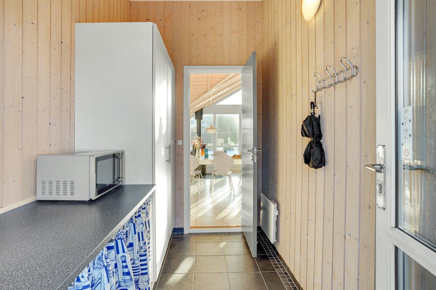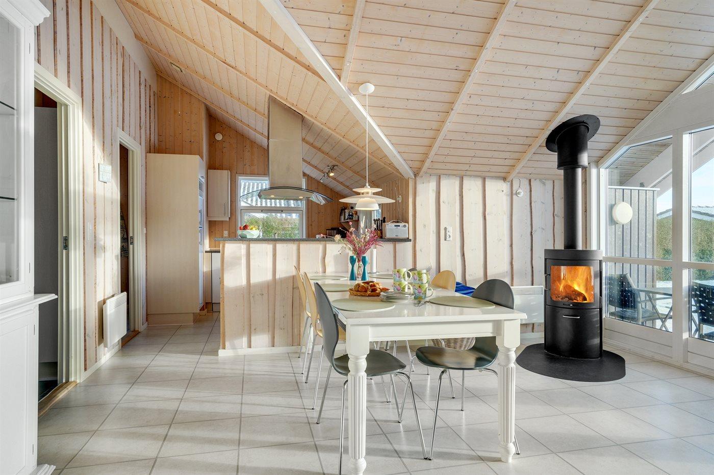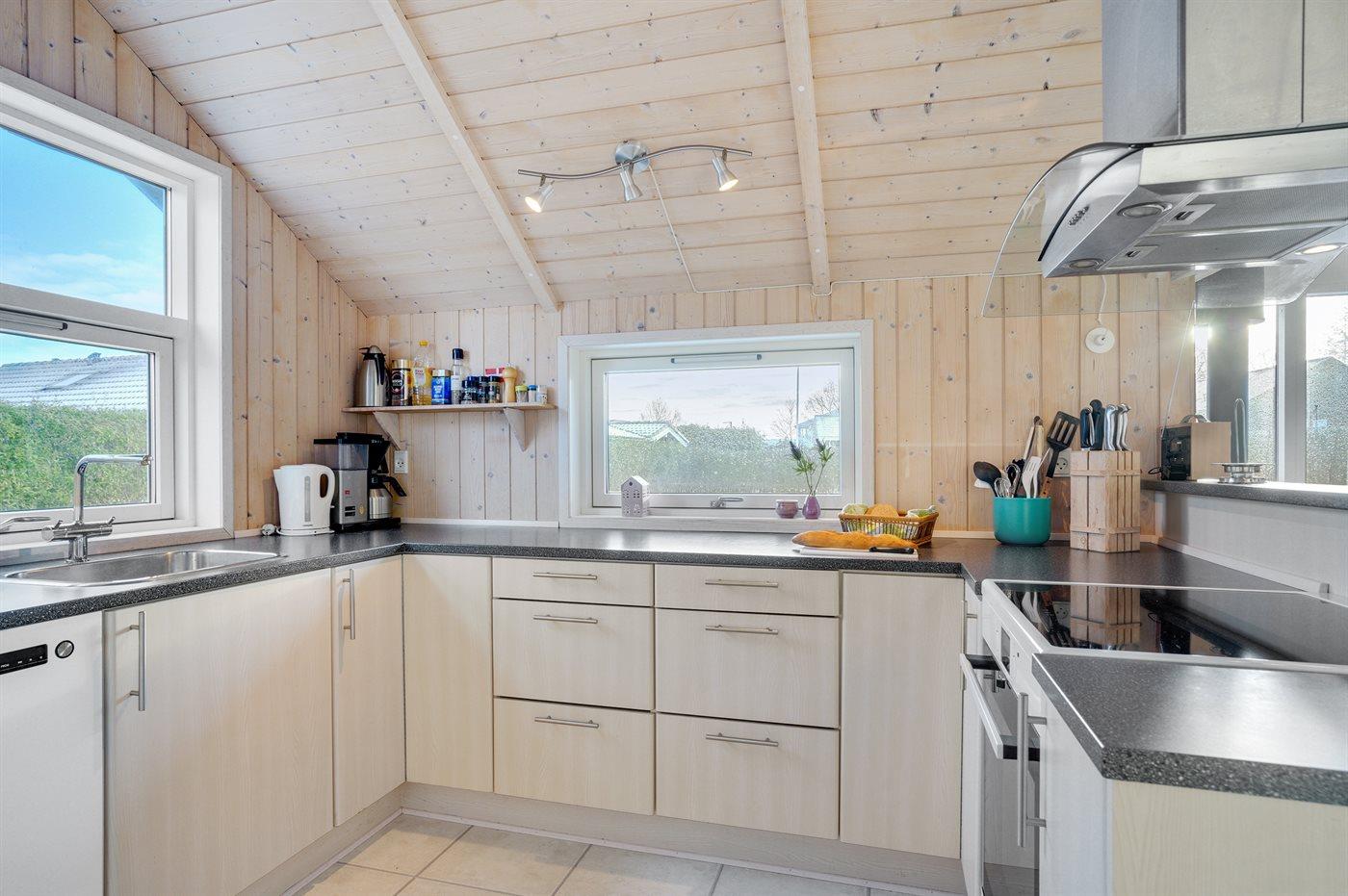 Køkkenet er udstyret med 1 køleskab. Der er 4 keramiske kogeplader, varmluftovn, mikrobølgeovn samt opvaskemaskine.