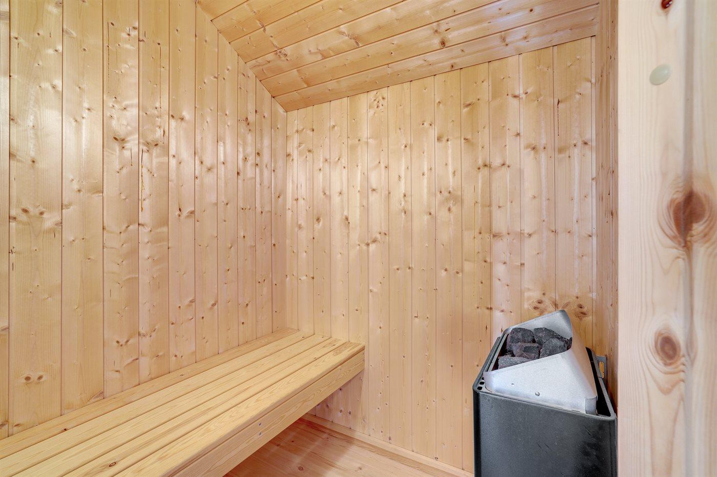 Der er 1 badeværelse med bruseniche og 1 toilet.. Der er gulvvarme på 1 badeværelse. I saunaen er der mulighed for afslapning.