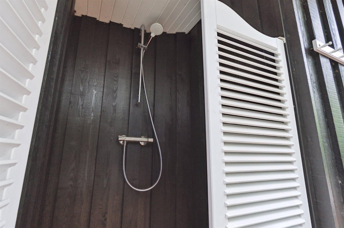 Hvis du hellere vil have varmen i det udendørs spabad, så kan du skylle dig under den udendørs bruser, inden du hopper i spaen. Den udendørs bruser er til rådighed i perioden fra 01.03 til 31.10.