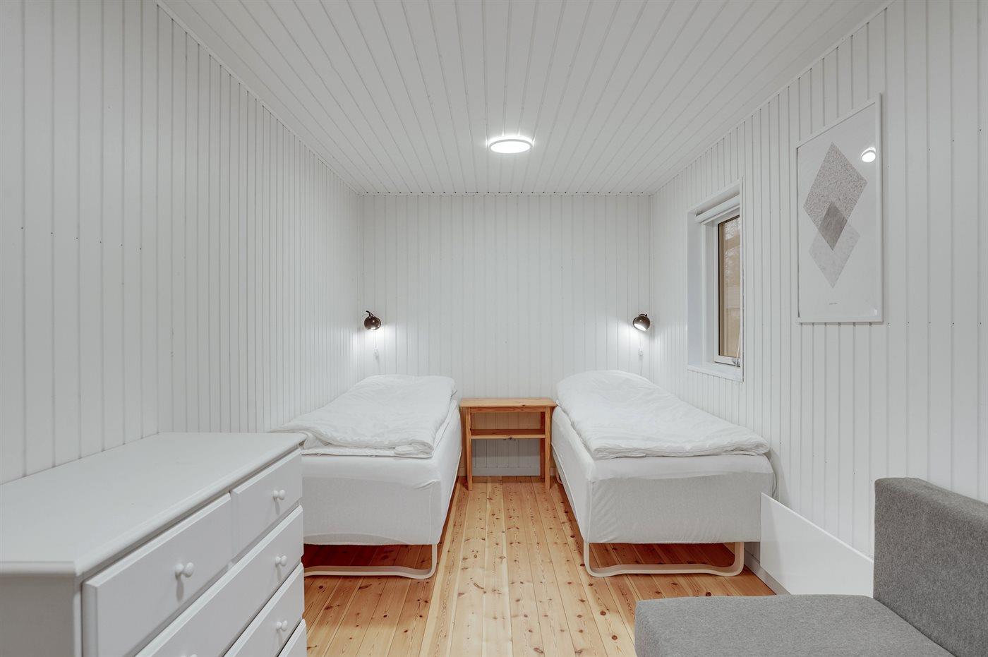 Der er i alt 3 soveværelser. Sovepladserne fordeler sig på: 2 sovepladser i dobbeltseng. 4 sovepladser i enkeltsenge. 2 sovepladser i sovesofa (enkelt).