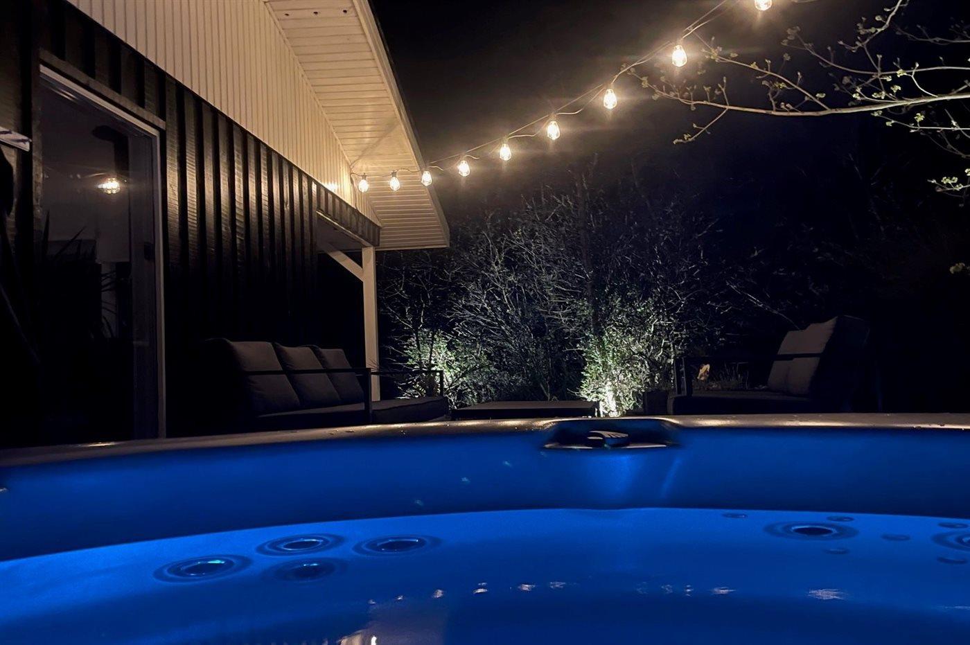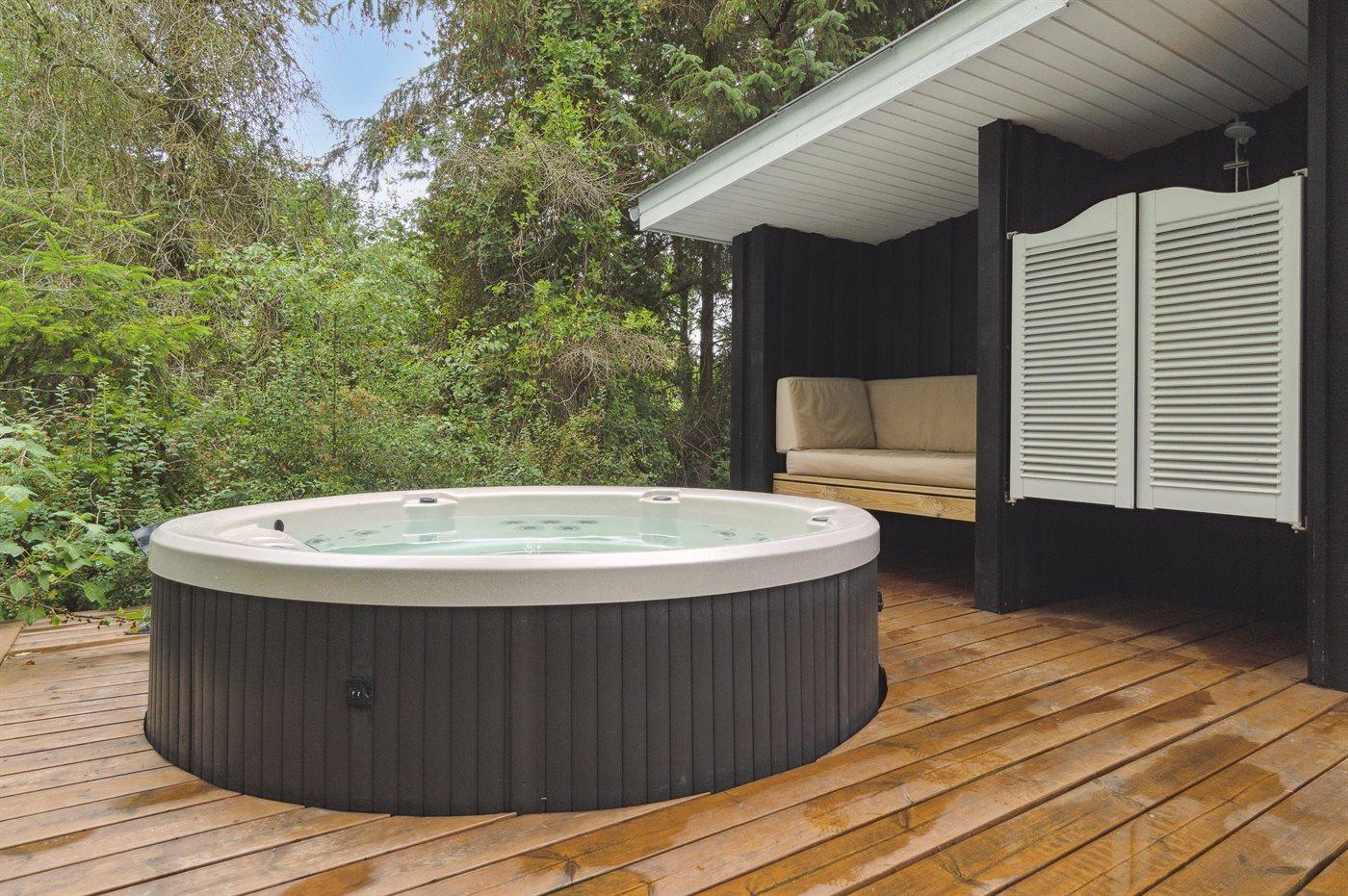 Der er mulighed for afslapning i udendørs standvandsspa til 6 personer.
