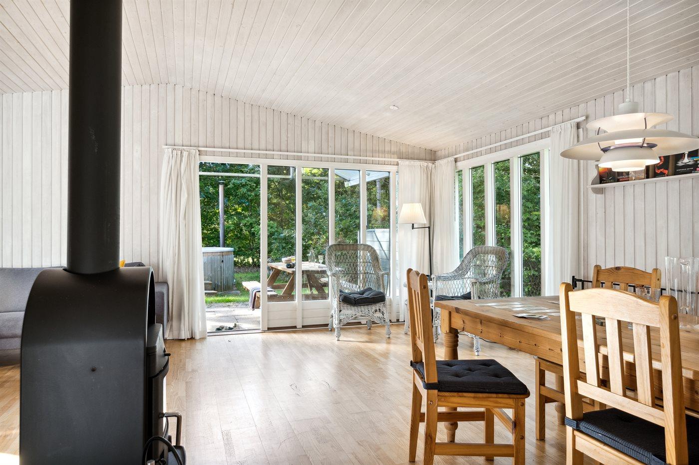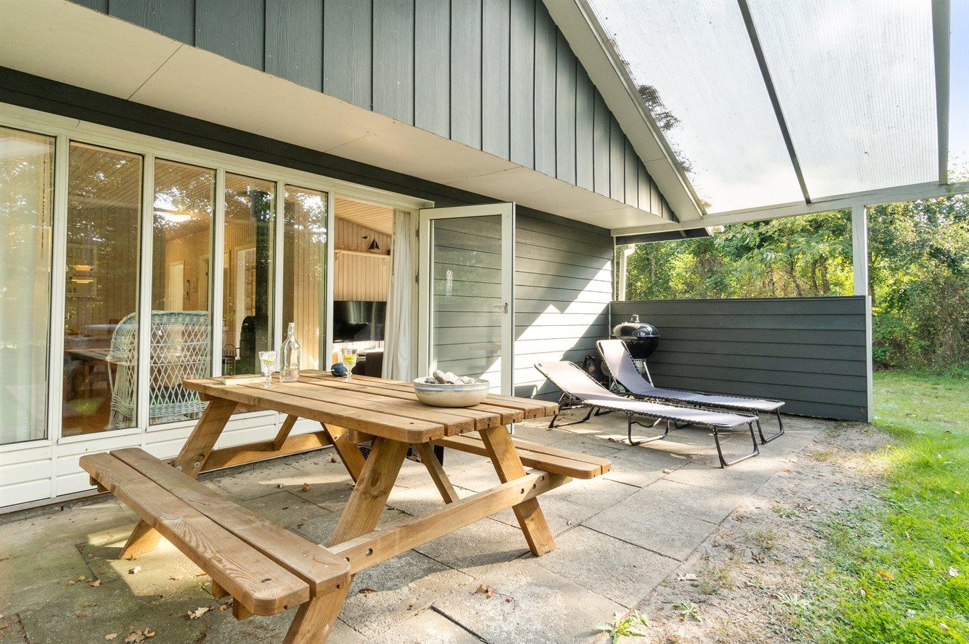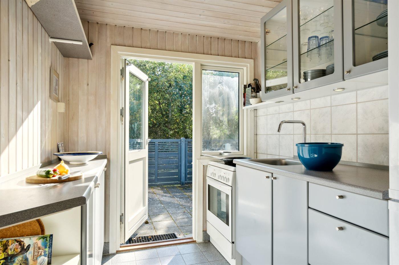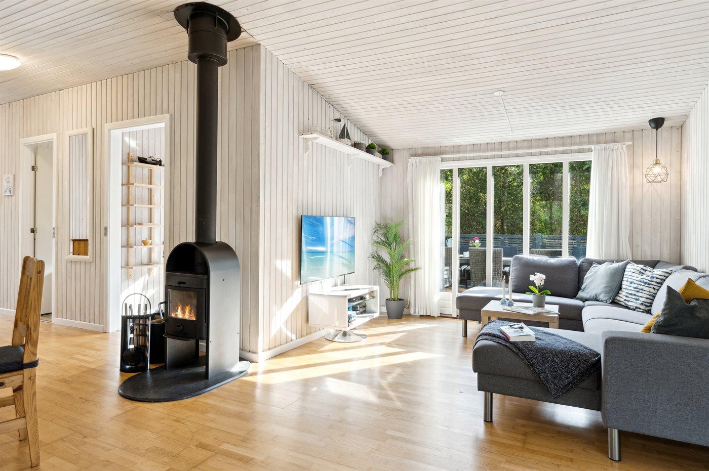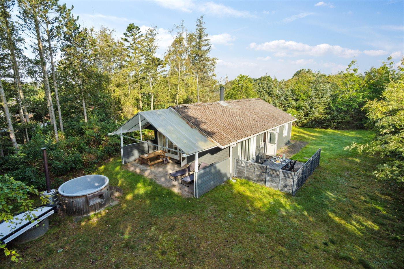 Ferieboligen er beliggende på en 1128 m² stor naturgrund. Der er 200 m til havet. Nærmeste forretning er beliggende i en afstand af 1000 m. Til ferieboligen hører åbent terrasseareal. Desuden er der overdækket terrasse. Der er redskabsrum. Bålsted. Grill til rådighed. Der er carport til rådighed. Parkering ved ferieboligen.