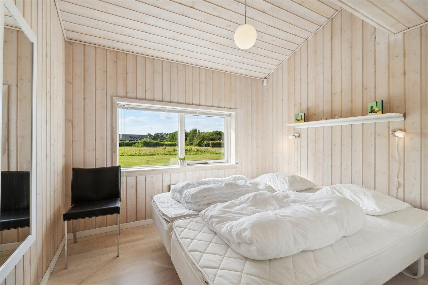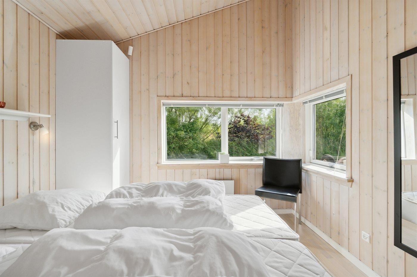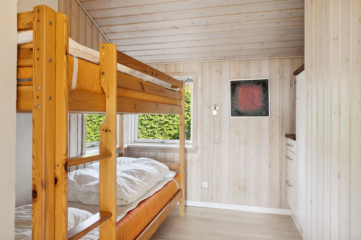 Der er i alt 3 soveværelser. Sovepladserne fordeler sig på: 4 sovepladser i dobbeltsenge. 2 sovepladser i køjeseng. Derudover er der 1 stk. barneseng.