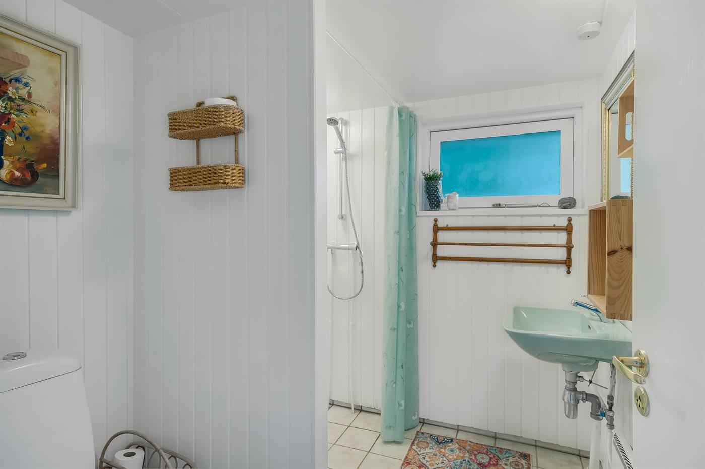 Der er 1 badeværelse med bruseniche og 1 toilet.