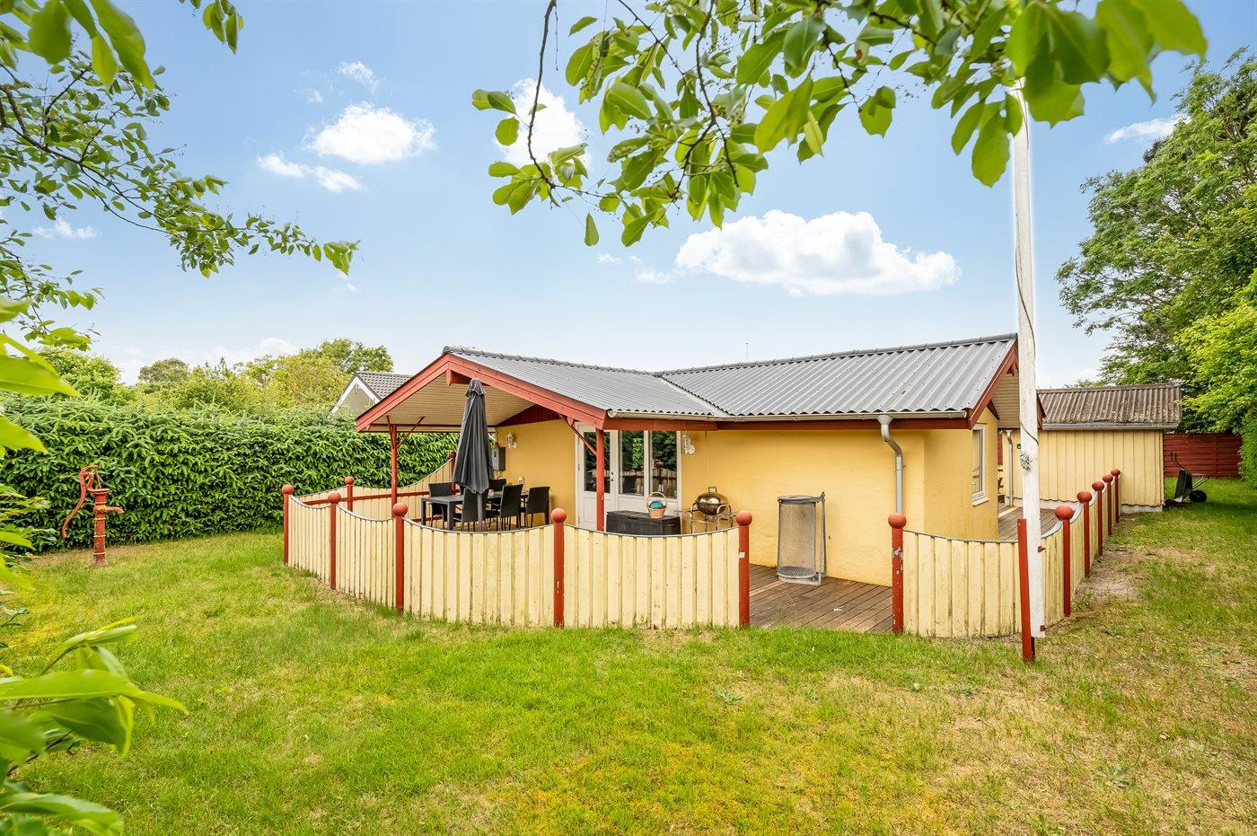 Hyggeligt sommerhus i Øster Hurup, tæt på strand, bymidte og med skøn have og terrasse.