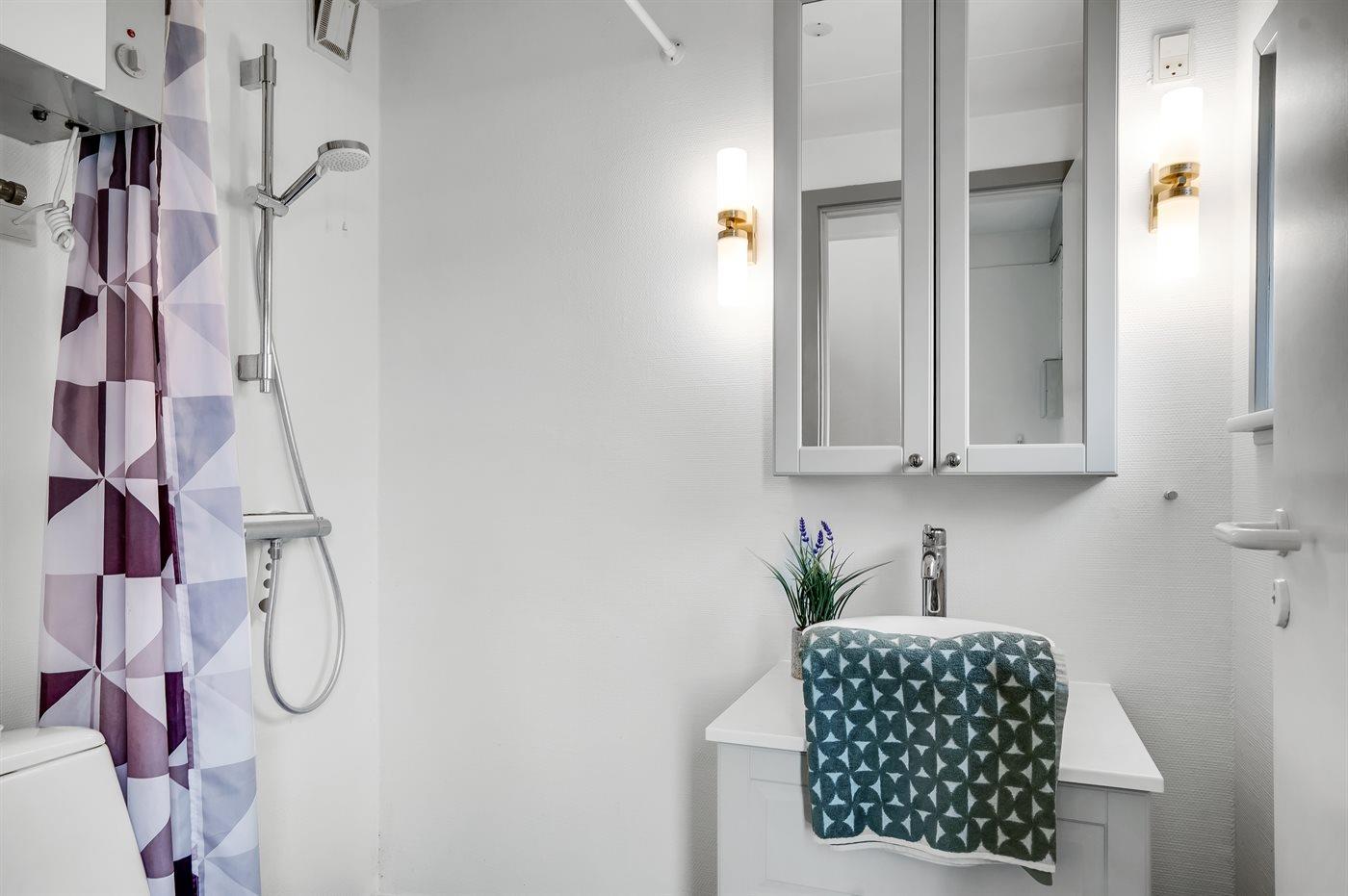 Der er 1 badeværelse med bruseniche og 1 toilet.. Der er gulvvarme på 1 badeværelse.