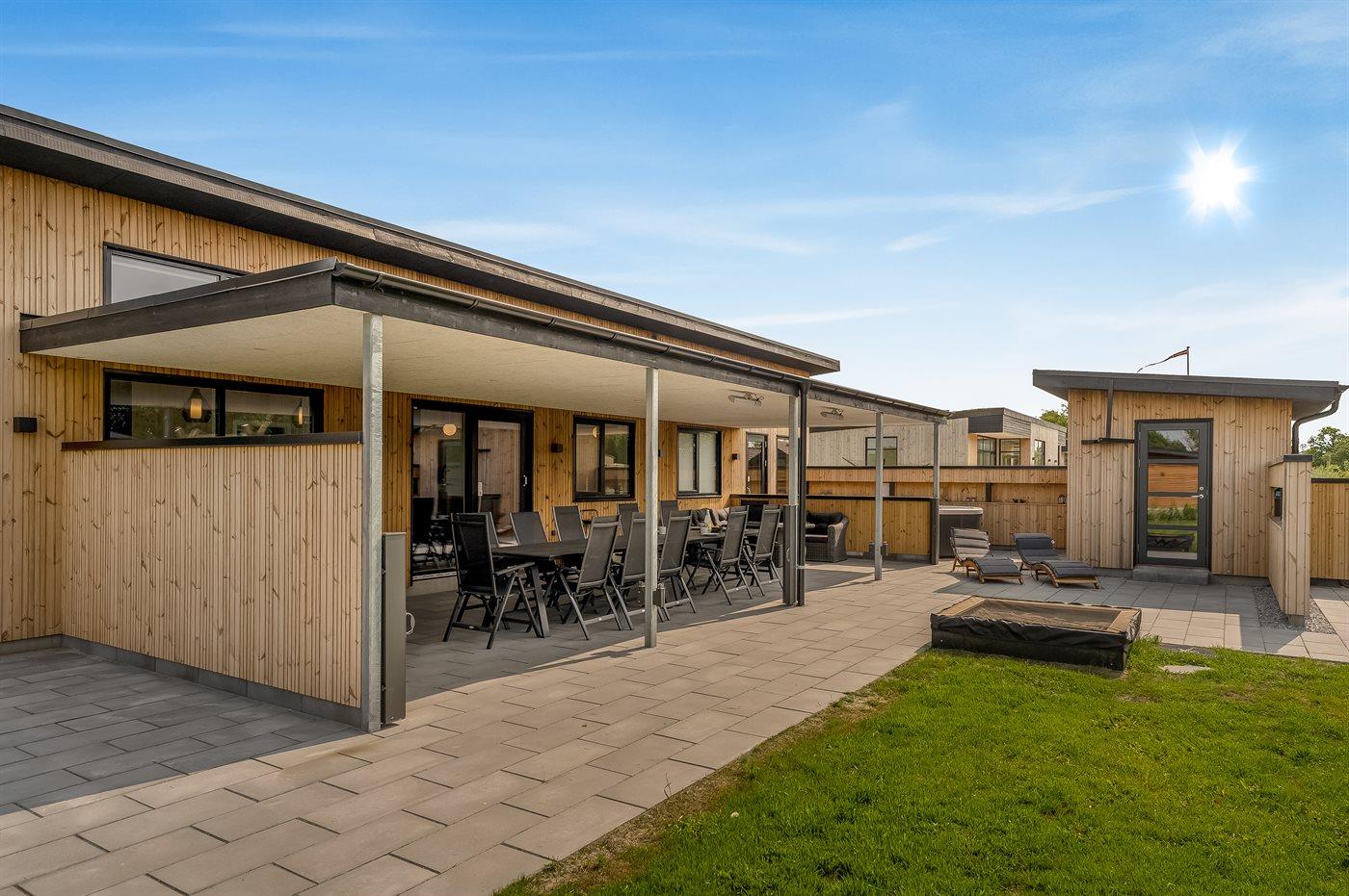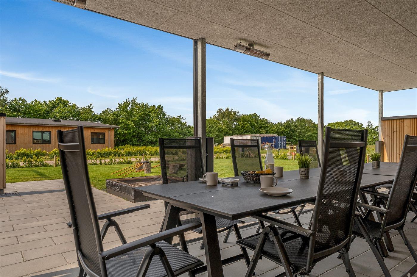 Ferieboligen er beliggende på en 1200 m² stor havegrund. Der er 1000 m til havet. Der er 10100 m til fjorden. Nærmeste forretning er beliggende i en afstand af 1000 m. Der er en golfbane i en afstand af 17400 m. Til ferieboligen hører åbent terrasseareal. Desuden er der overdækket terrasse. Der er redskabsrum. Udendørs sauna. Udendørs, infrarød sauna. Udendørs bruser. Grill til rådighed. Der er installeret stik til opladning af elbil. Type 2 stik. Med 11 kW ladeeffekt. Parkering ved ferieboligen.