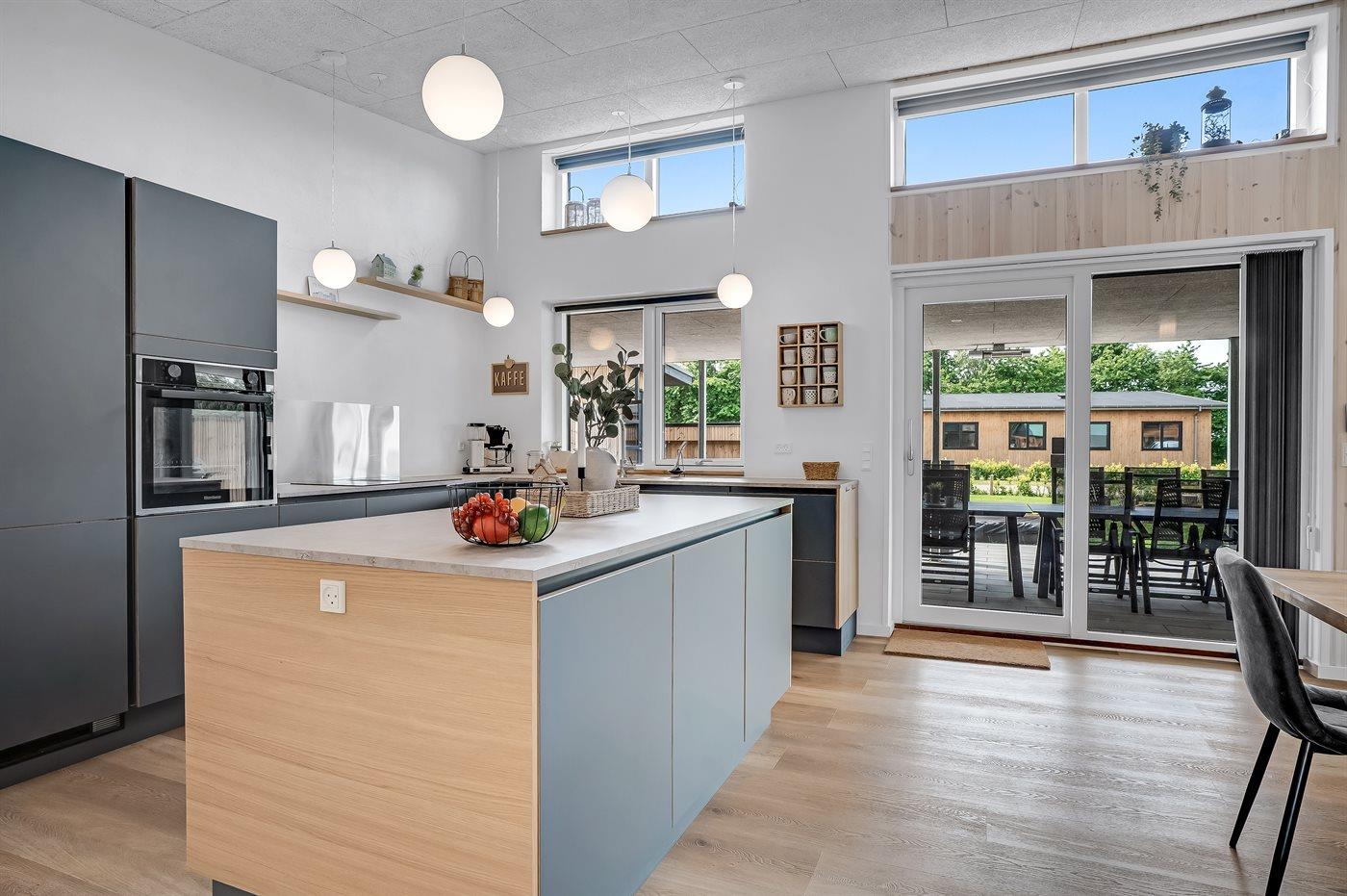 Køkkenet er udstyret med 2 køleskabe. Der er 4 induktionskogeplader, varmluftovn, mikrobølgeovn samt opvaskemaskine.