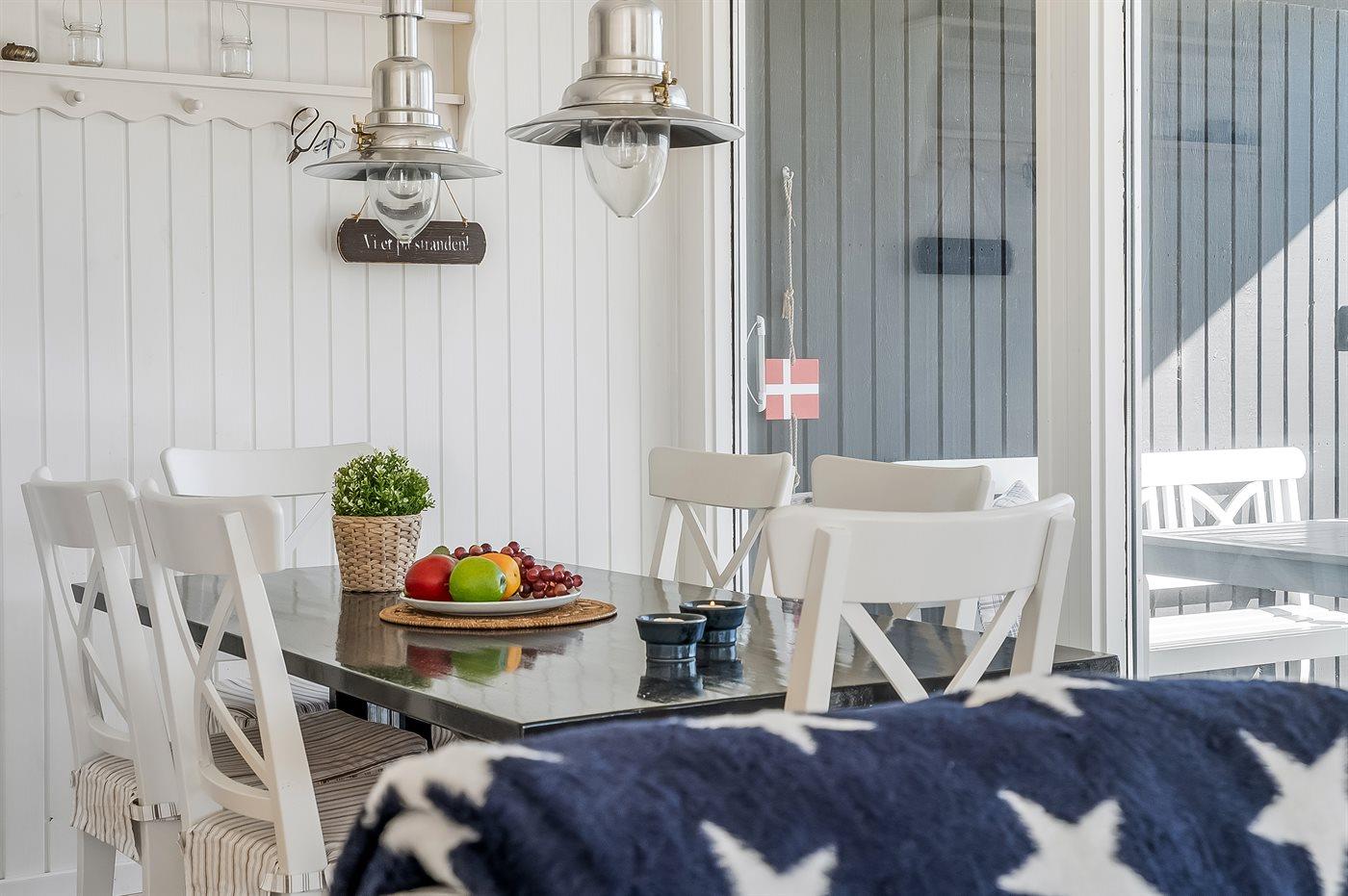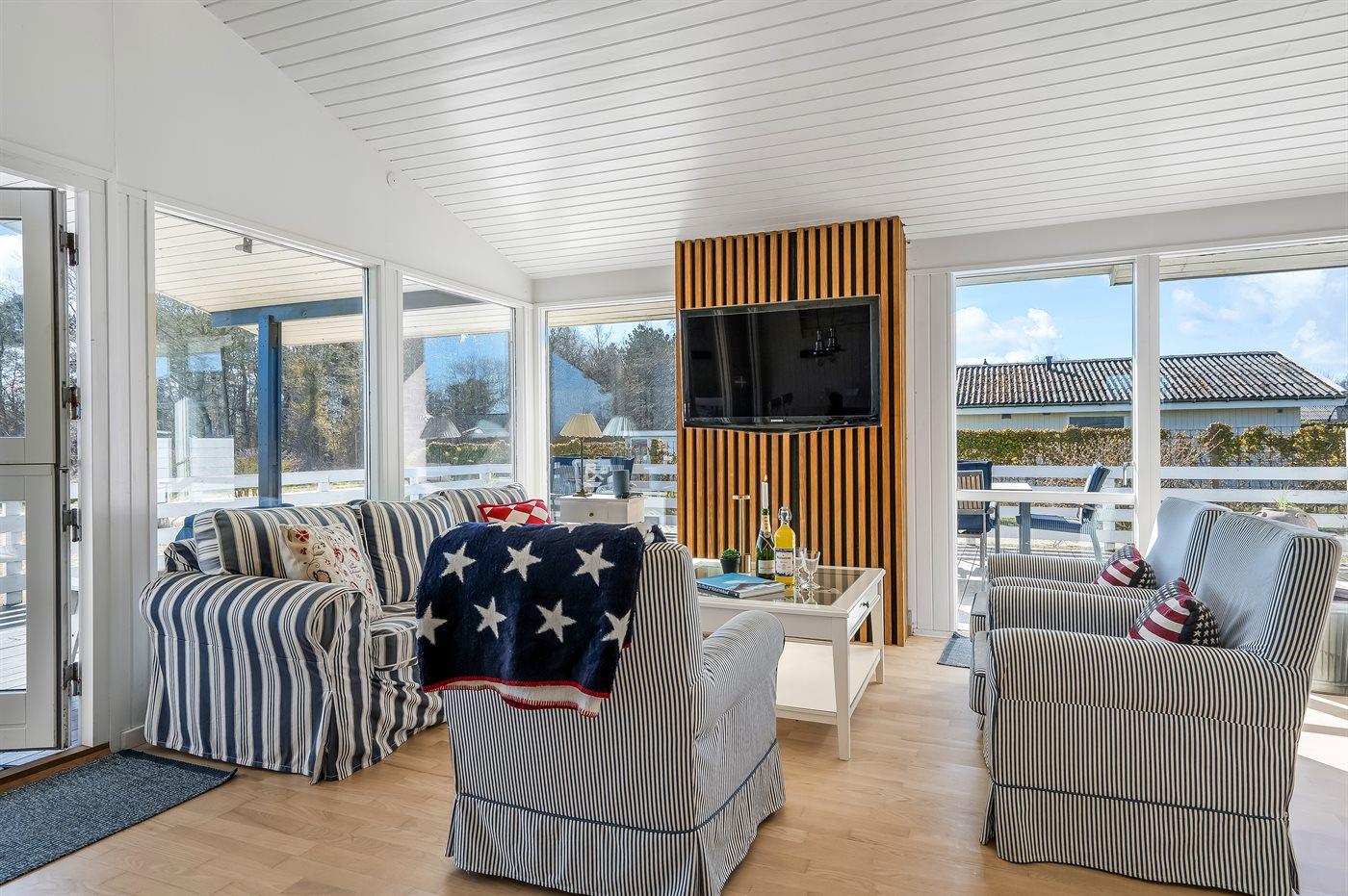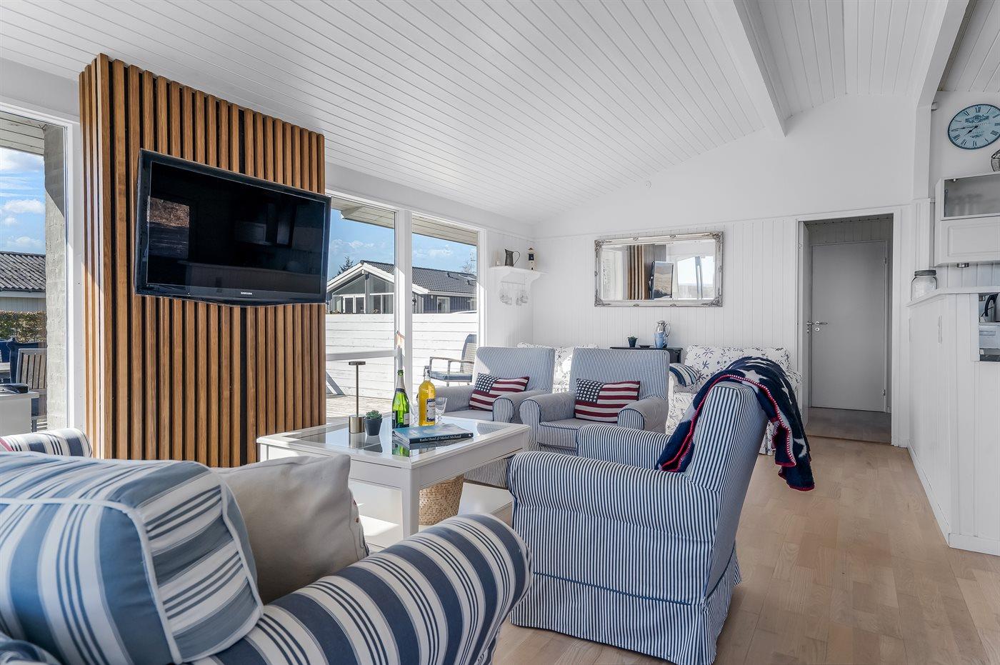 Indendørs kan I nyde de hyggelige omgivelser med smart TV, Chromecast og internet – ideelt til både afslapning og underholdning på regnvejrsdage. Sommerhuset har ét badeværelse med bruser og er indrettet til at skabe en behagelig base for jeres ophold.