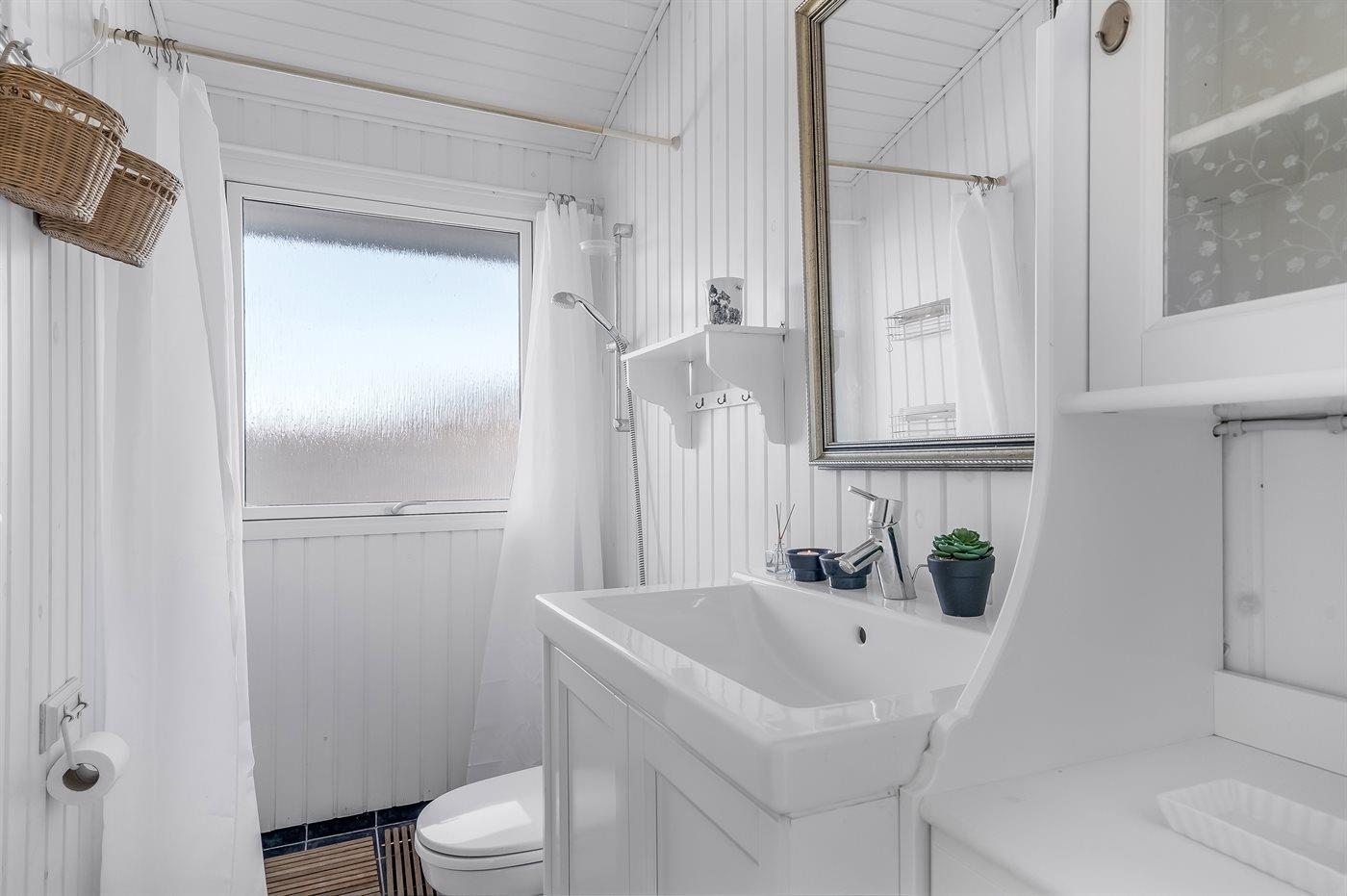 Der er 1 badeværelse med bruseniche og 1 toilet.