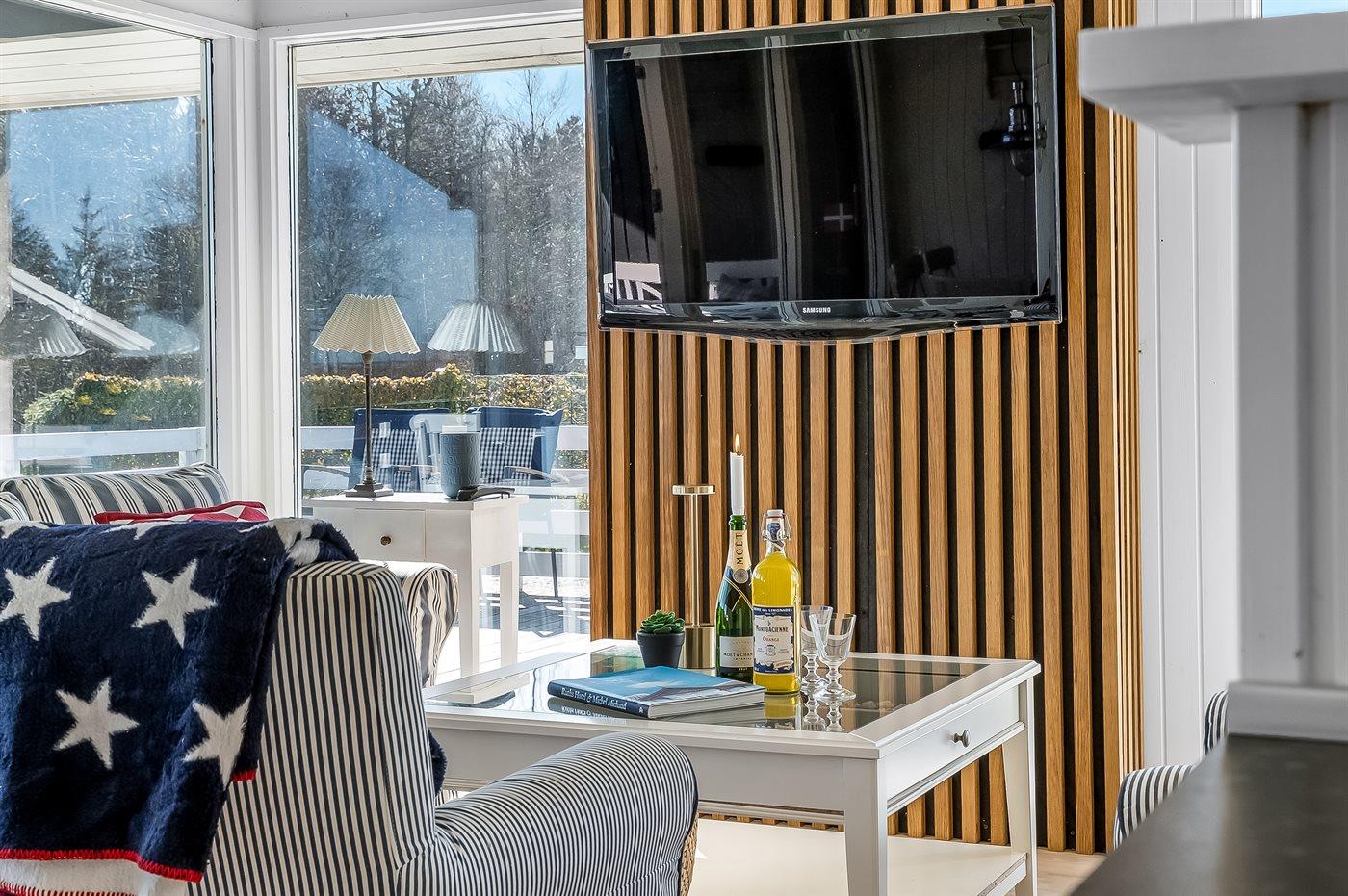 I ferieboligen findes 1 Smart-TV.1 Chromecast. Ingen TV-kanaler - kun streaming. Der er trådløst internet til rådighed.