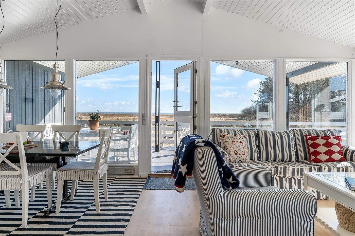 Dette sommerhus byder på en afslappende og aktiv ferie med en smuk havudsigt og direkte adgang til stranden – her kan du nyde den danske sommer ved kysten.