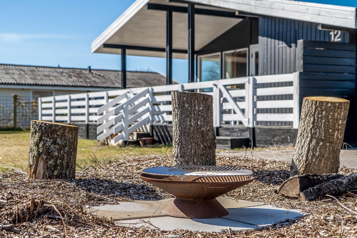 Udendørs finder I en stor, overdækket terrasse samt en åben terrasse med bålplads – perfekt til hyggelige aftener med kig til stjernerne. Der er også mulighed for at låne et paddleboard (bruges på eget ansvar og forsikring), og der er udendørs bordtennis til sjove familieaktiviteter i solen.