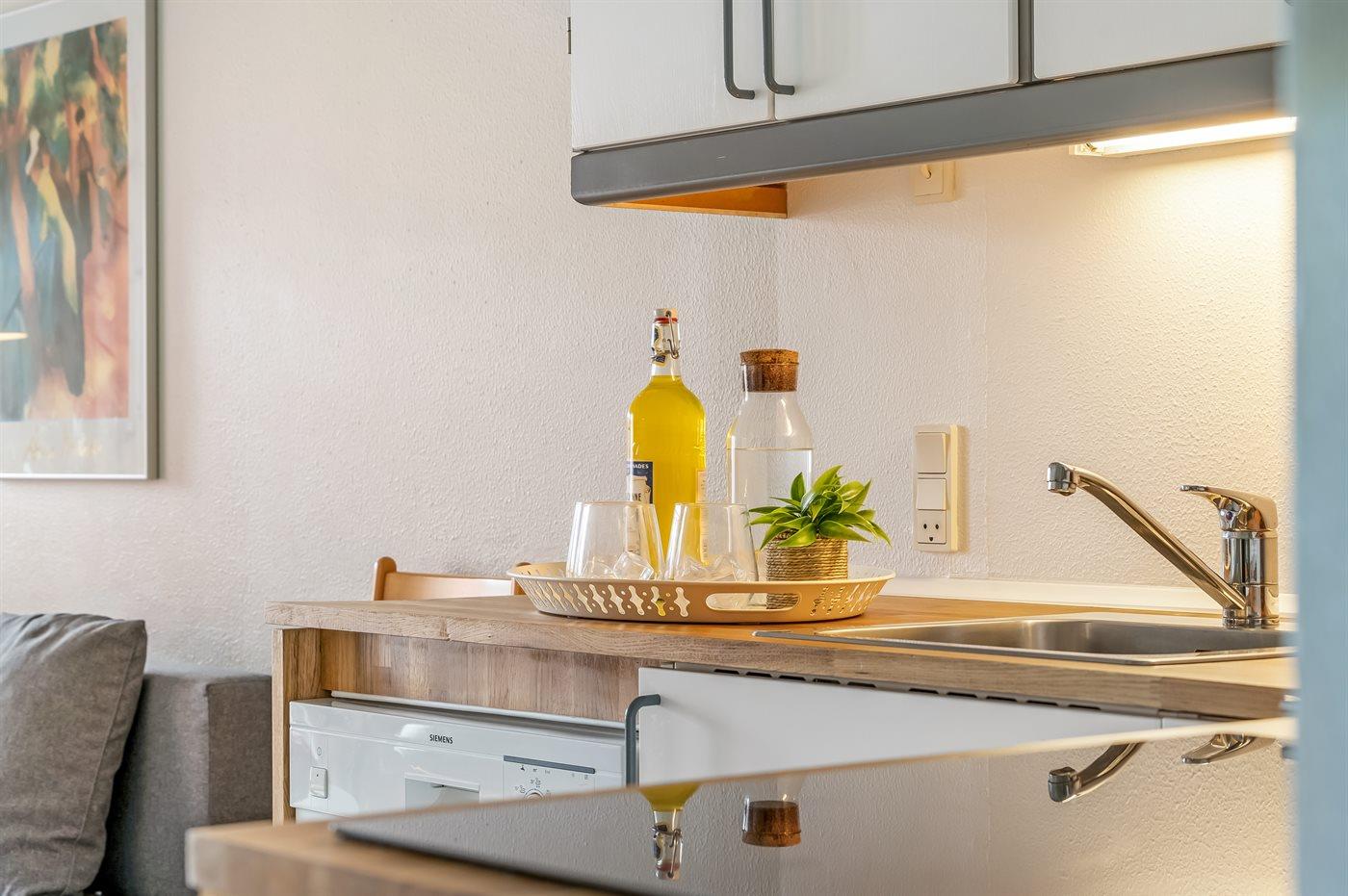 Køkkenet er udstyret med 1 køleskab. Der er 4 keramiske kogeplader, varmluftovn, mikrobølgeovn, Airfryer samt opvaskemaskine.
