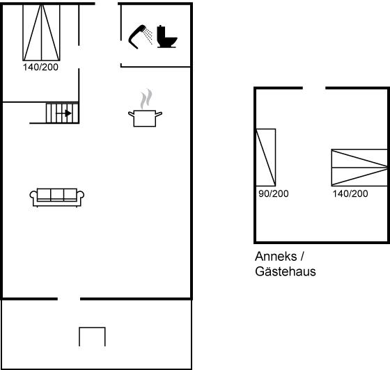 Der er i alt 2 soveværelser. Sovepladserne fordeler sig på: 4 sovepladser i dobbeltsenge. 1 soveplads i enkeltseng. 3 af disse sovepladser befinder sig i et anneks.