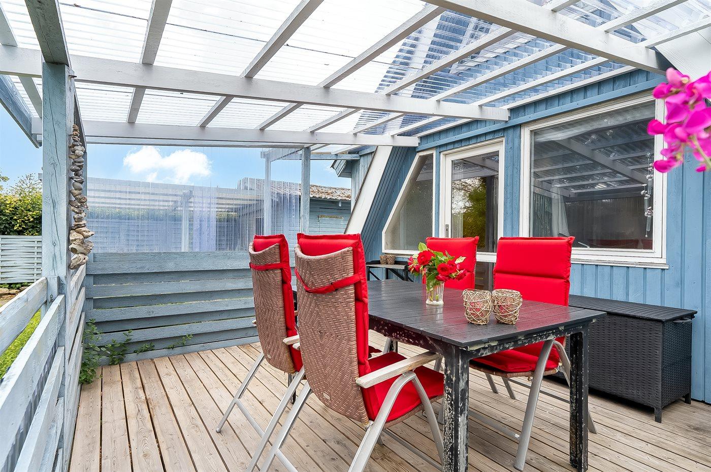 Hyggeligt sommerhus med anneks nær havet og overdækket terrasse, perfekt til en afslappende ferie i fredelige omgivelser.