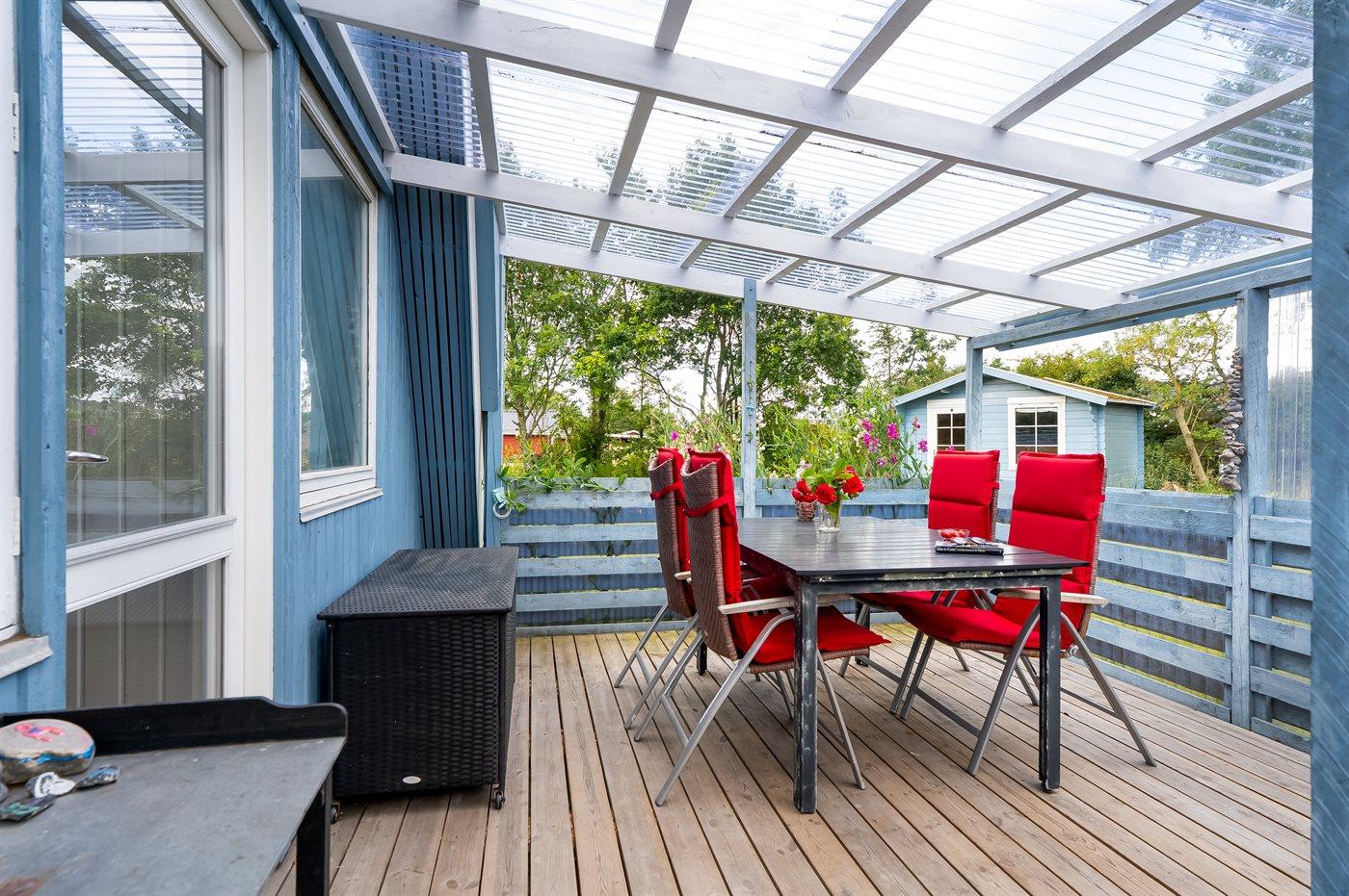 Ferieboligen er beliggende på en 809 m² stor havegrund. Der er 400 m til havet. Nærmeste forretning er beliggende i en afstand af 980 m. Til ferieboligen hører åbent terrasseareal. Desuden er der overdækket terrasse. Grill til rådighed. Parkering ved ferieboligen.