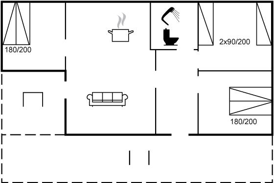 Der er i alt 3 soveværelser. Sovepladserne fordeler sig på: 4 sovepladser i dobbeltsenge. 2 sovepladser i enkeltsenge.