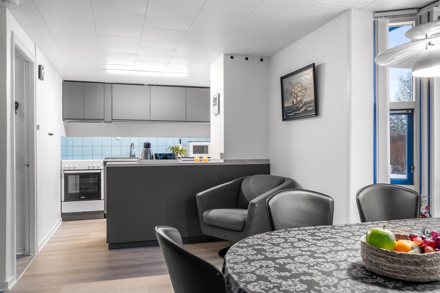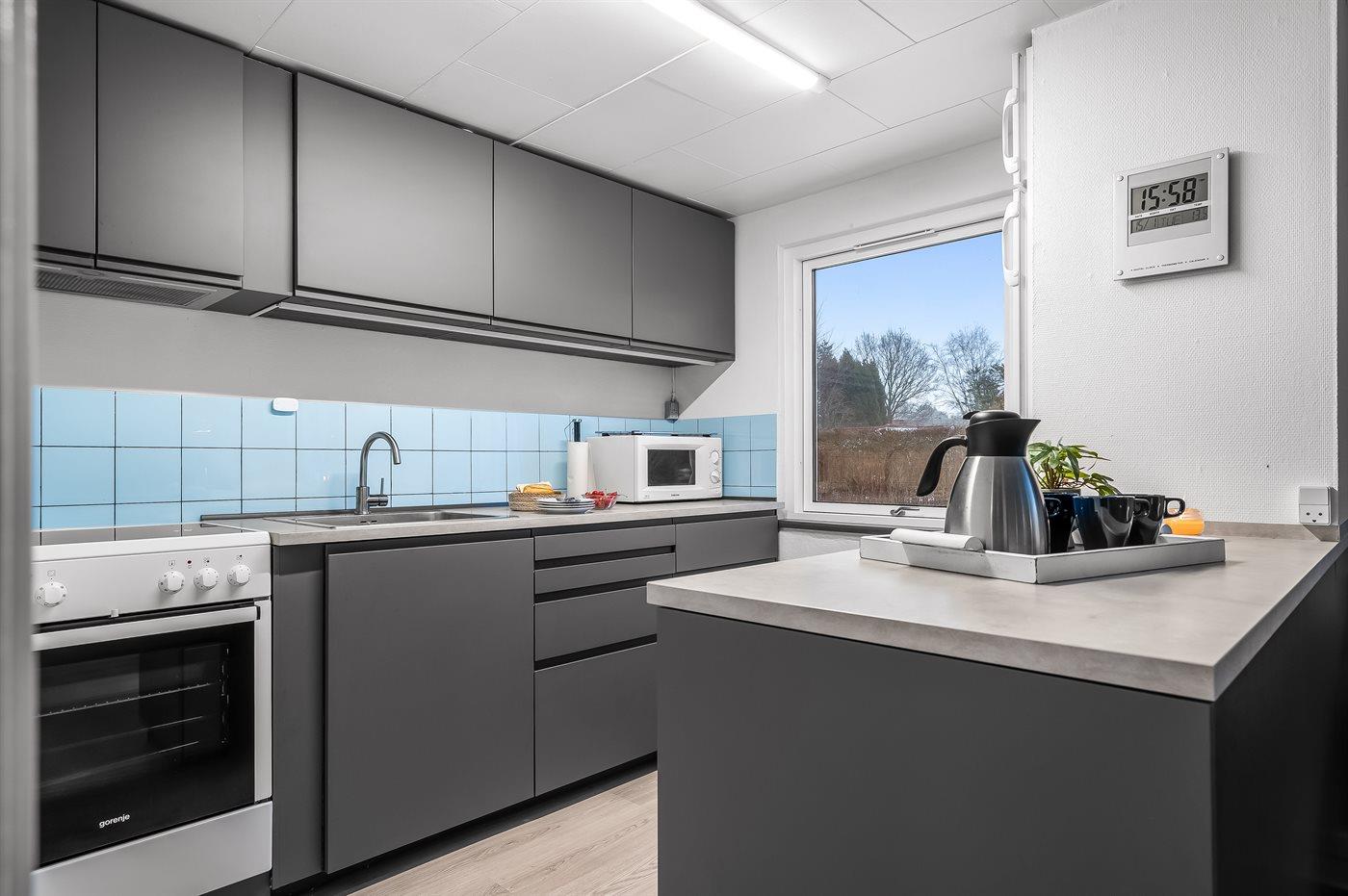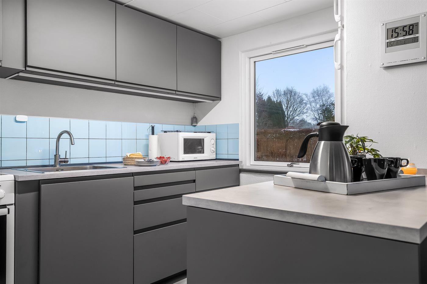 Køkkenet er udstyret med 1 køleskab. Der er 4 keramiske kogeplader, varmluftovn, mikrobølgeovn samt opvaskemaskine.
