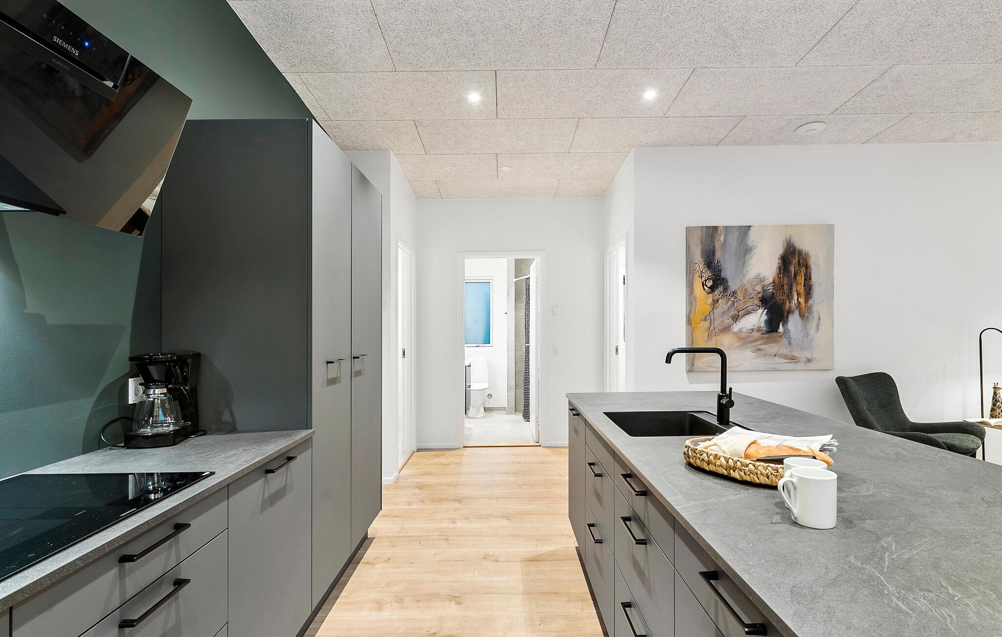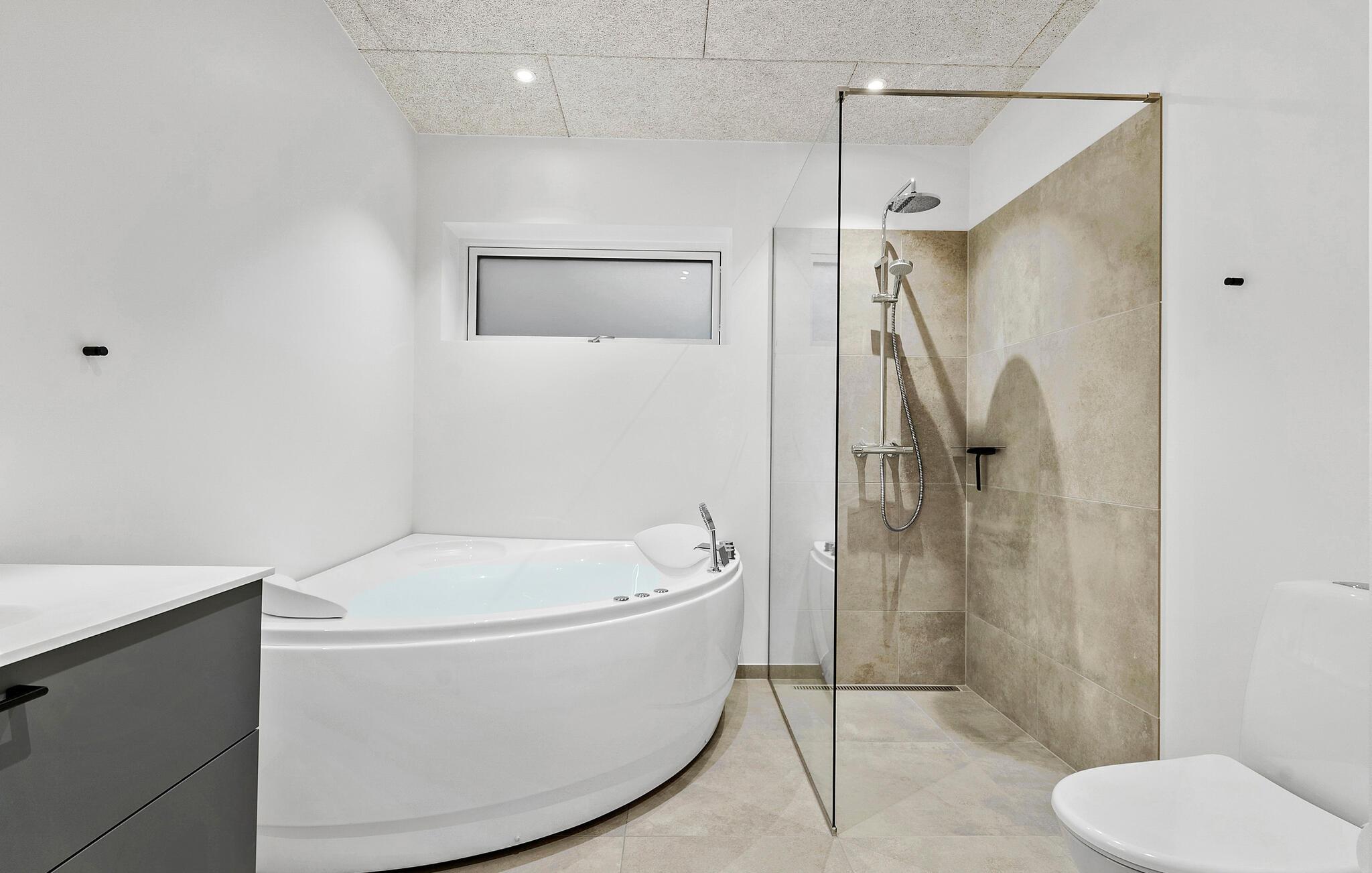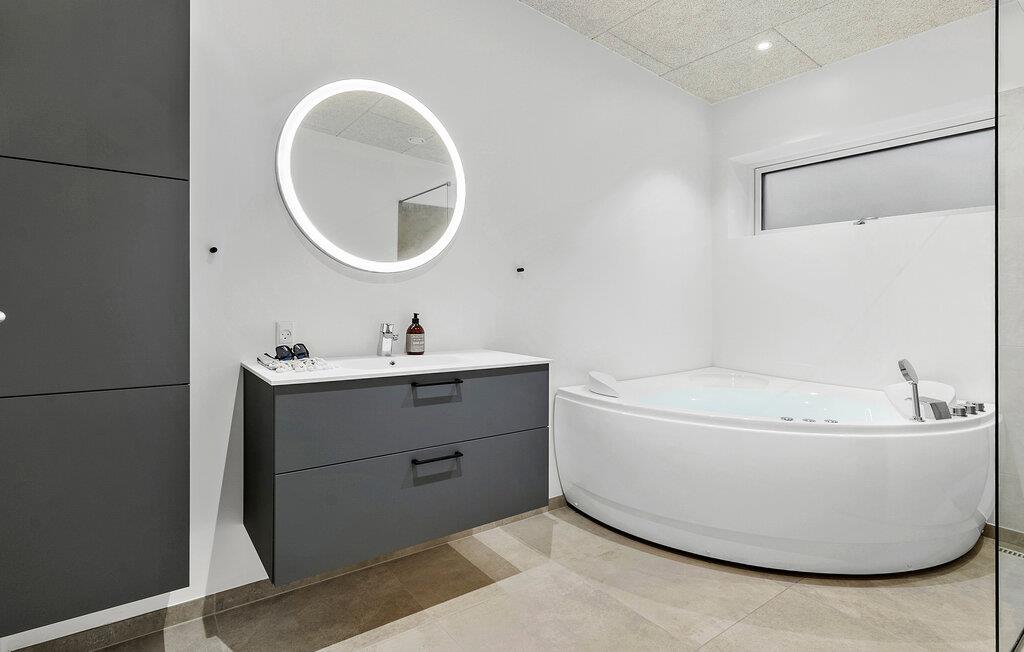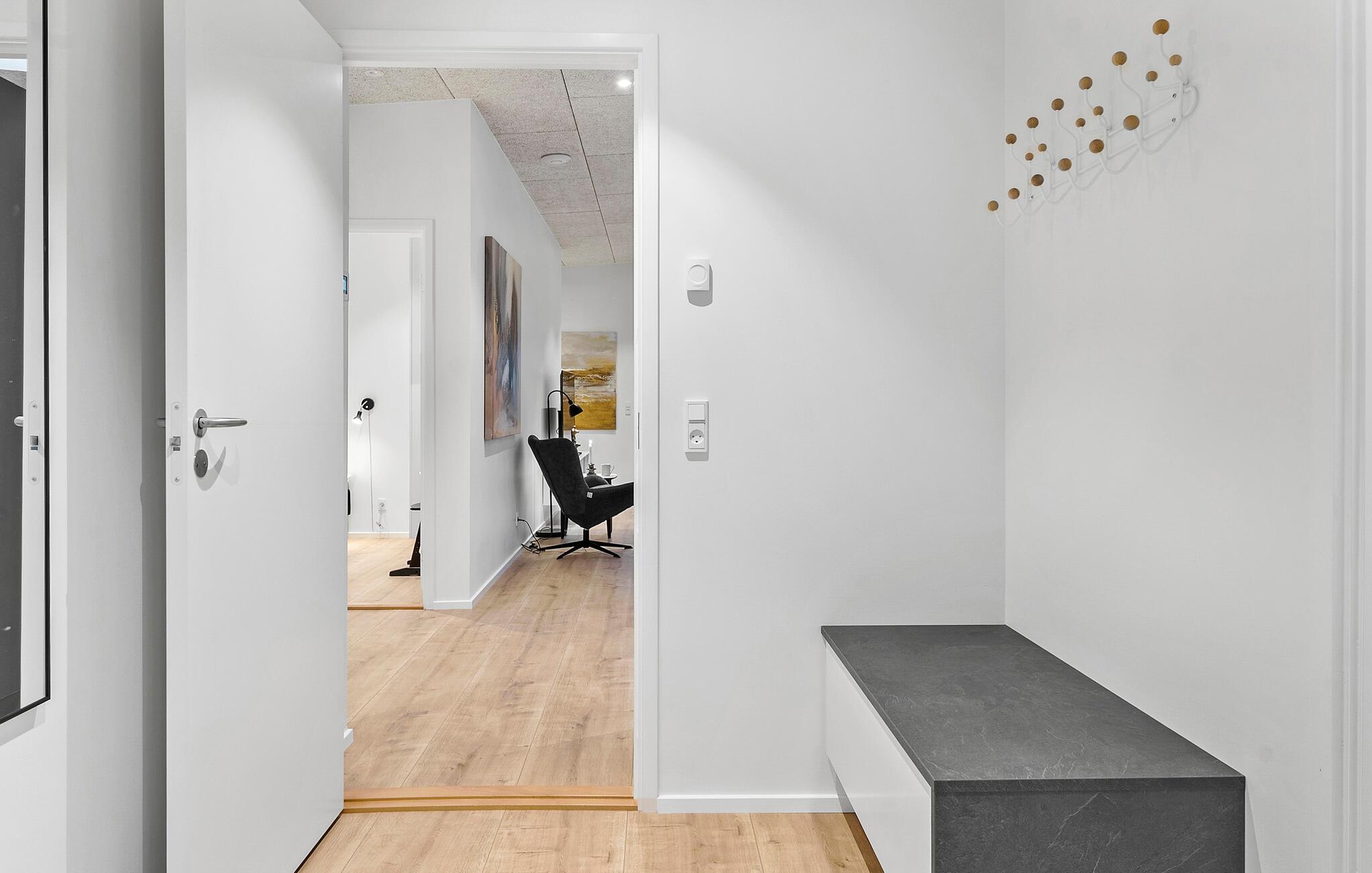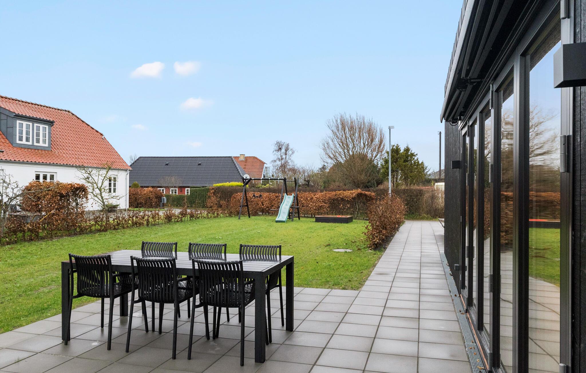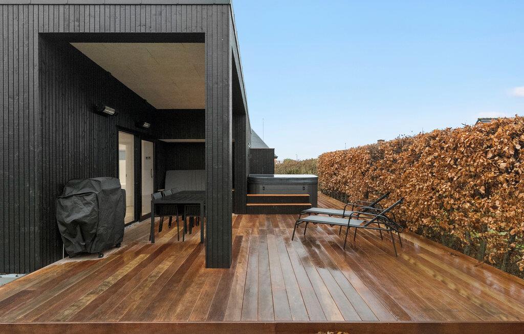 Nyd privatlivets fred på den elegante træterrasse, mens I nyder solen eller forkæler jer selv med et beroligende bad i spabadet. Lad børnene løbe rundt i den beskyttede have og samles til stemningsfulde grillaftener i det fri.