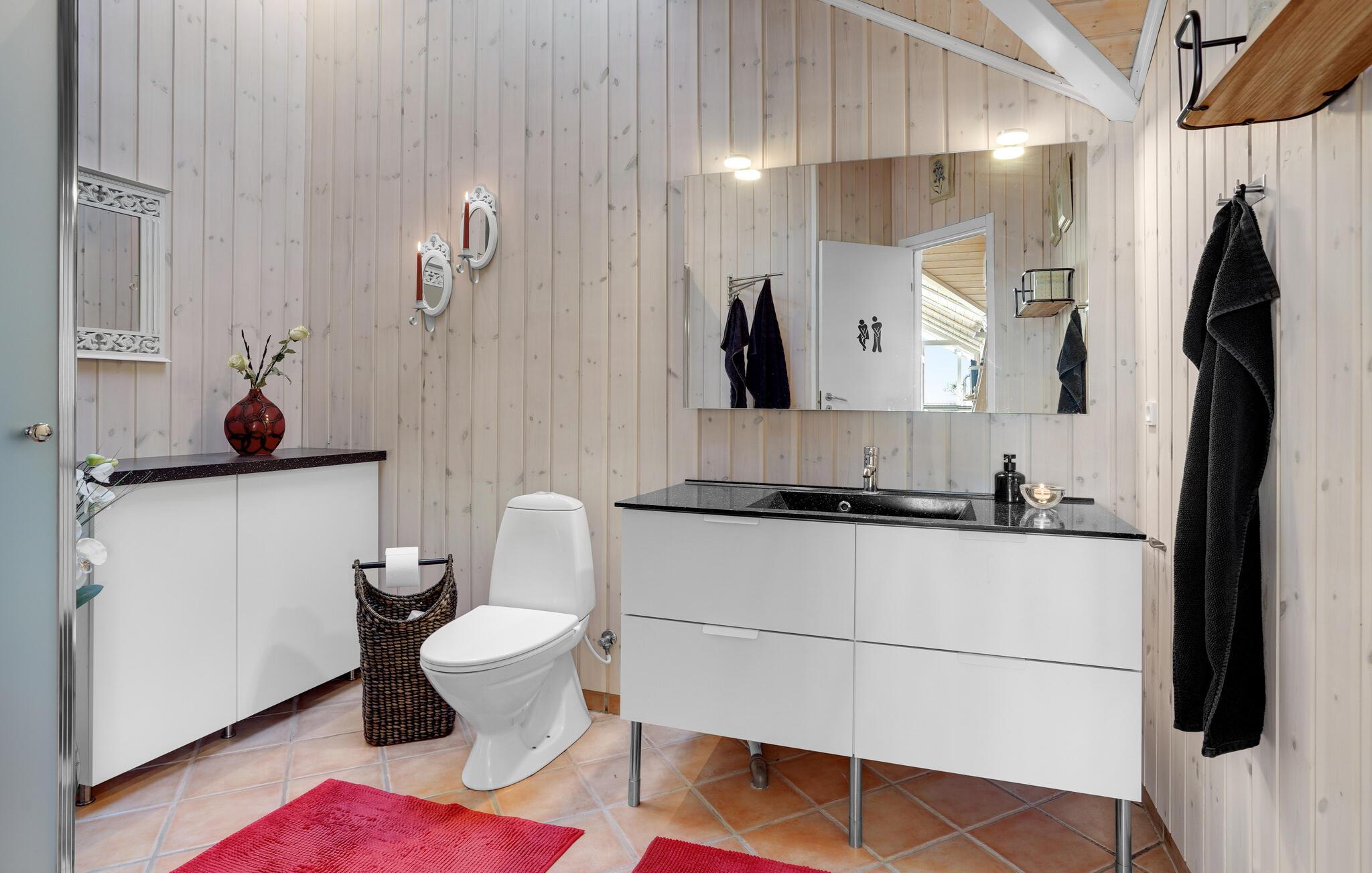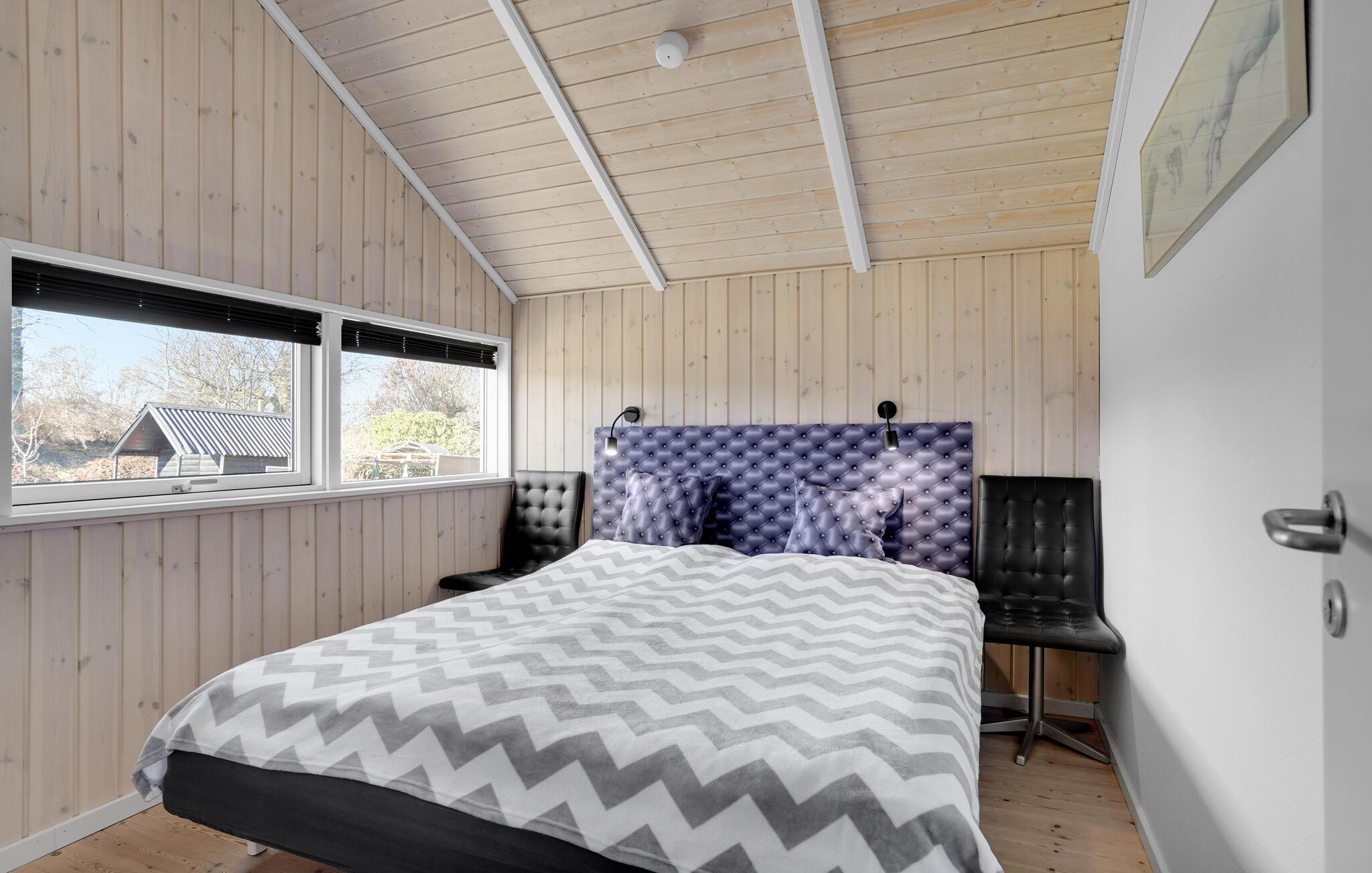 I dette lyse og moderne sommerhus kan I tilbringe en dejlig ferie med familien, som alle vil huske med glæde i lang tid. Der er tre soveværelser med komfortable dobbeltsenge og to badeværelser, så huset kan rumme seks personer. To kæledyr er også tilladt på ferien. Hjertet i huset er det veludstyrede køkken, der ligger i åben forbindelse med stuen. Der strømmer masser af lys ind gennem de store vinduer, og I har en vidunderlig udsigt over vandet.