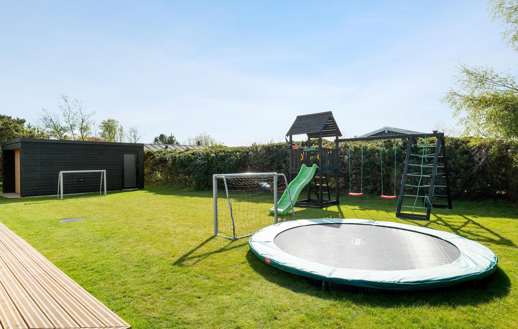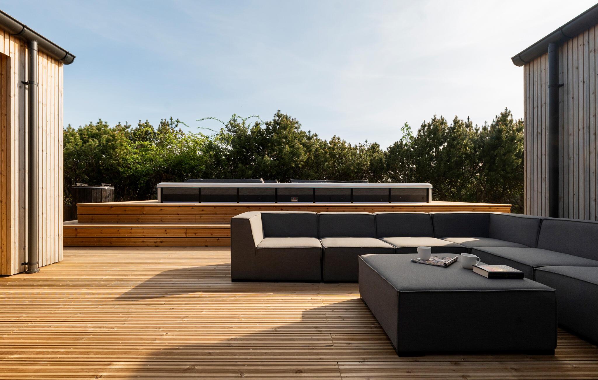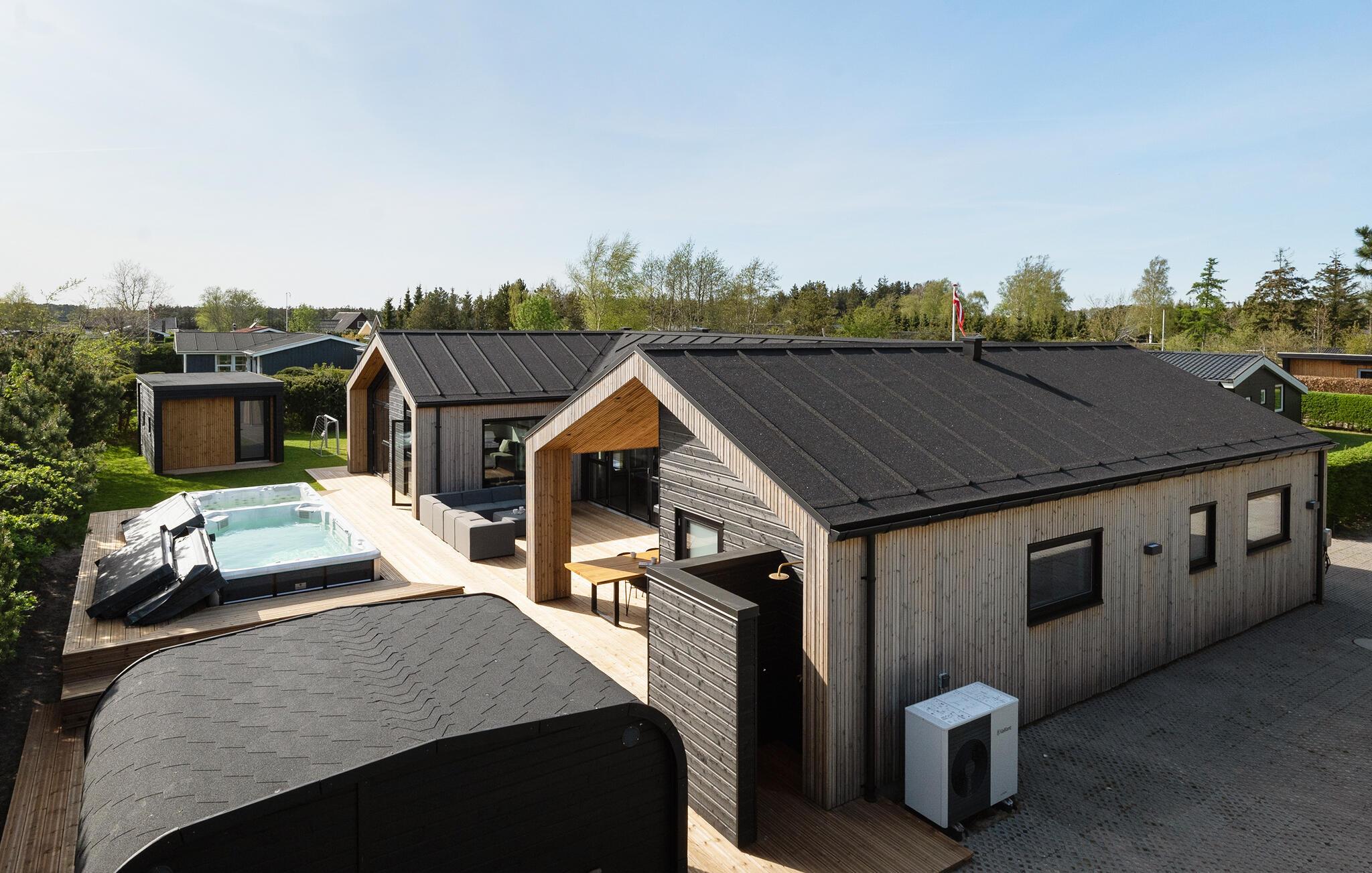 Slap af i spabadet og skift saunaen med en forfriskende dukkert i det kolde vand, mens børnene leger med legemulighederne i den overdækkede have. Nyd en drink i den elegante udendørs lounge og hold jeres tid sammen med stemningsfulde grillmad på terrassen.