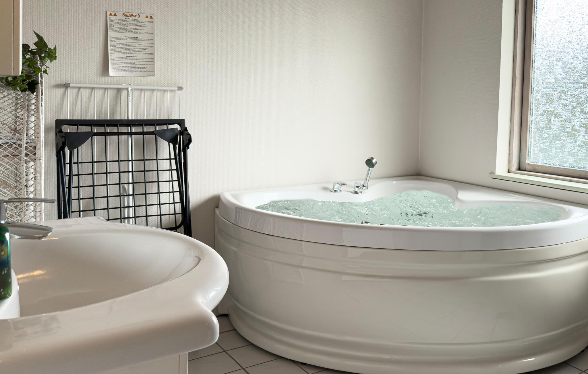 Nyd den friske luft på den store træterrasse. Sæt jer til rette i det boblende spabad eller læn jer tilbage på liggestolene. Tag plads i de komfortable havemøbler eller forkæl jer selv med lidt ro i udestuen. Leg med børnene på den store græsplæne og nyd den velplejede grønne have.