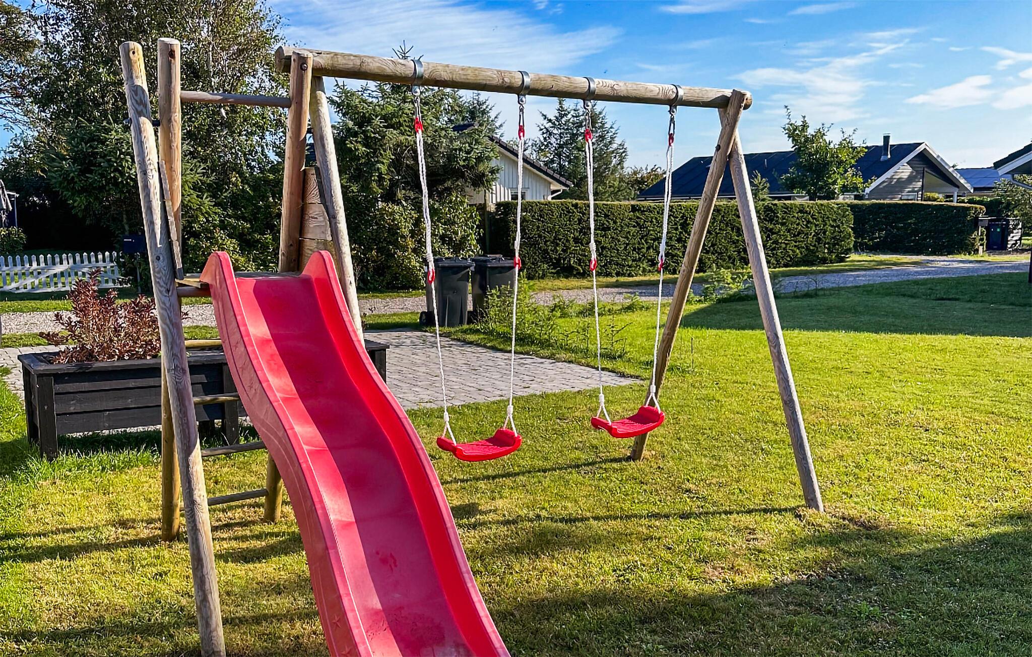 På lune dage kan I rykke ud i haven og lade børnene kaste sig over gyngerne og rutsjebanen. Dæk op på terrassen til den store sommermiddag, og når mørket falder på, kan I samles omkring bålet og riste skumfiduser.
