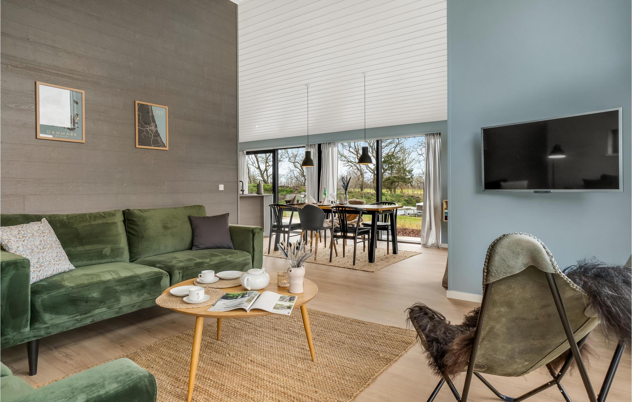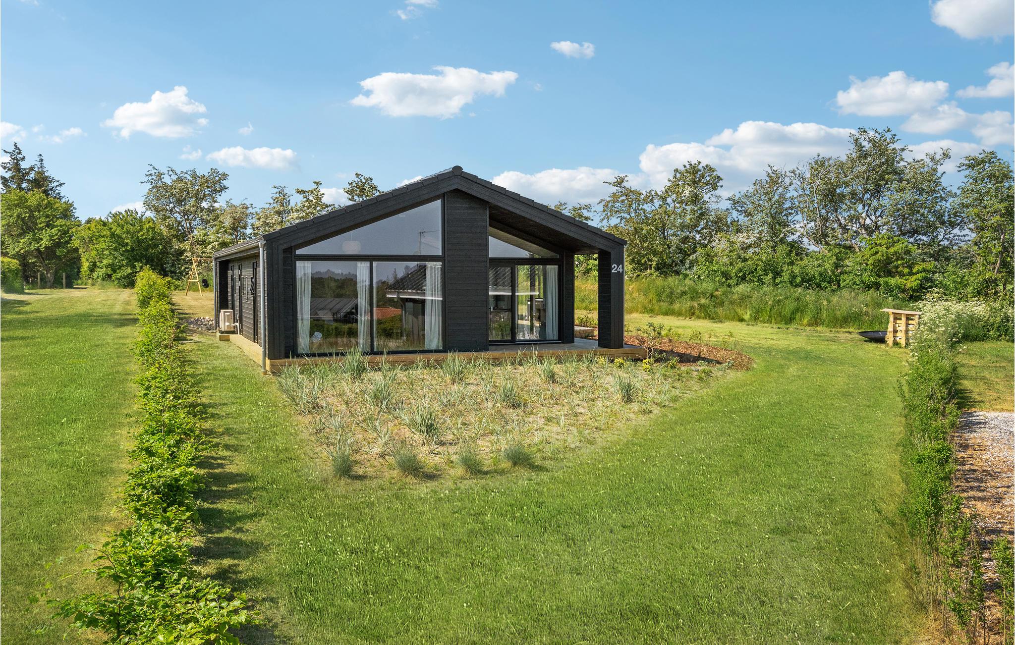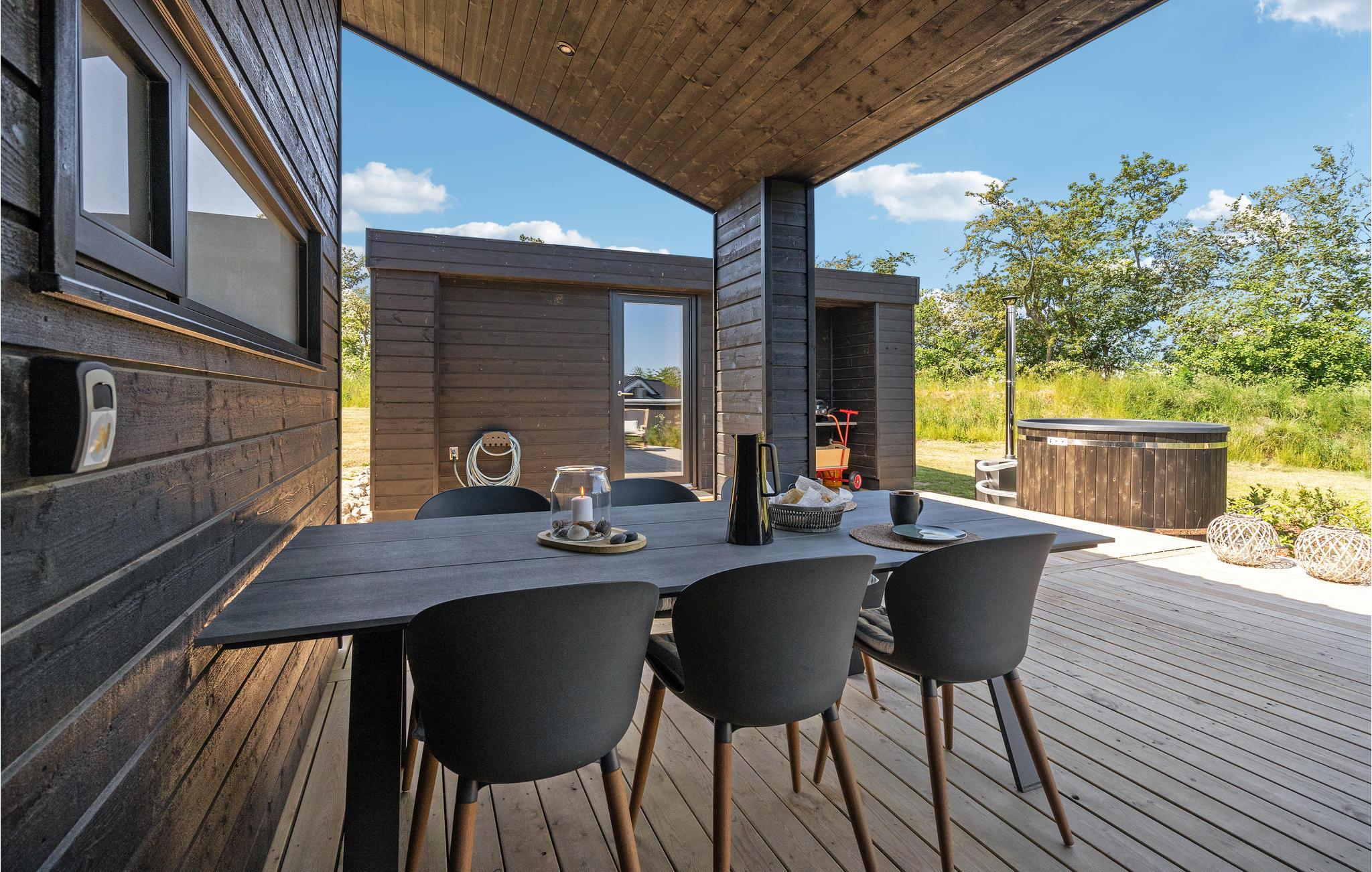 I ugenerte rammer for enden af en vej finder I dette helt igennem skønne hus, som kan blive rammen om jeres næste ferie. Ud over boligens høje komfort er der også lagt vægt på energivenlige løsninger. Stuen er et helt særligt rum at samles i, for her mærker man især, hvordan ingen detaljer i boligen er tilfældige. Både, når I laver mad, nyder dagens måltider og hygger jer med brætspil, bidrager rummet med en vidunderlig atmosfære, der er båret af de store vinduespartier ud mod grunden og de lækre materialer, som indgår i indretningen. Om morgenen kan I dagens første kop kaffe på terrassen og se ud over vandet.