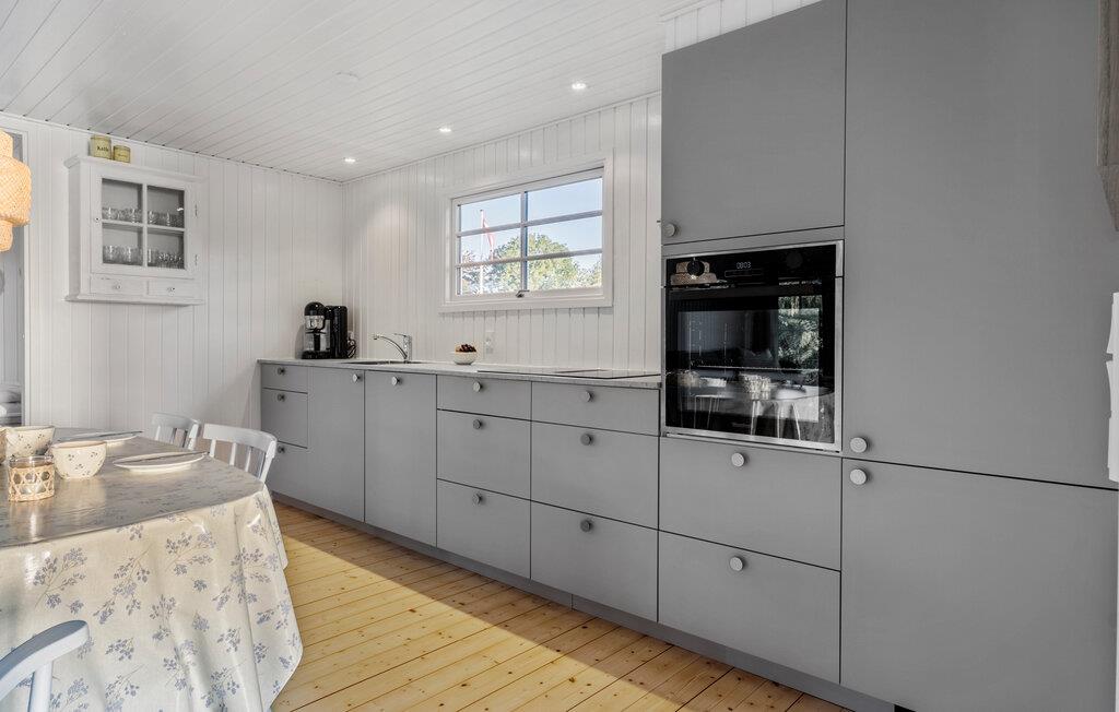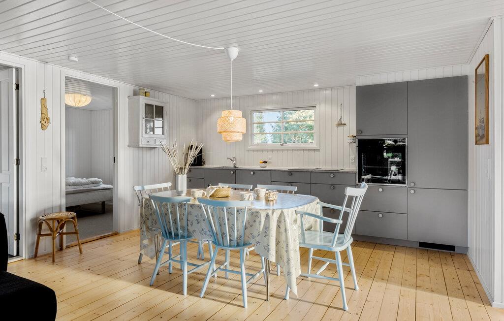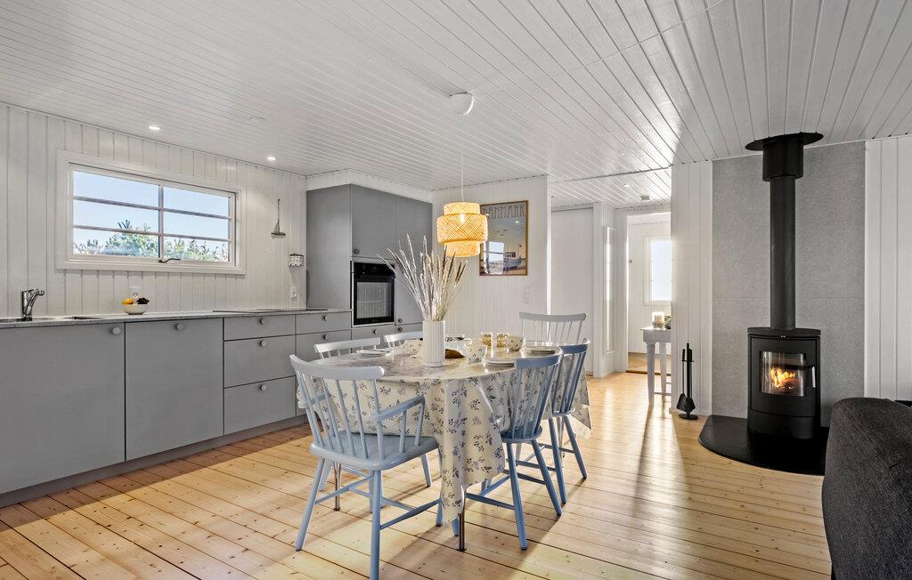 I kan se frem til nogle dejlige feriedage i fredfyldte omgivelser og med et flot, moderne hus som base. Slå dørene op til husets åbne, behagelige rum, hvor hele familien nemt kommer ned i tempo. Dagens måltider nydes i det elegante køkken, hvor I kan få varmen fra ilden i brændeovnen. Læn jer godt tilbage med en bog i sofaen efter en lang dag på farten og glæd jer over den skønne udsigt til haven.