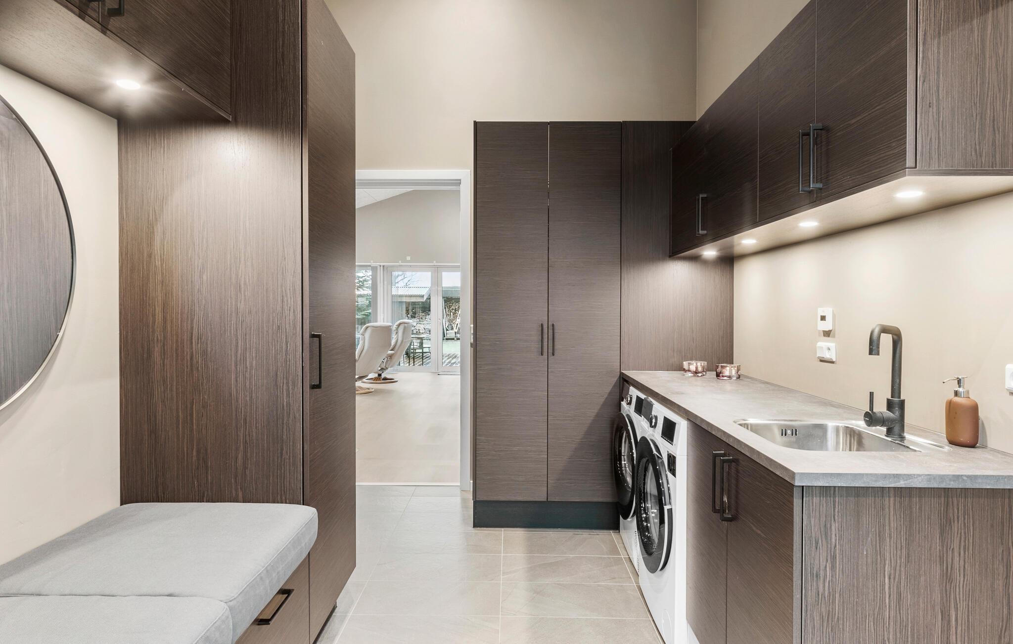 Dette komfortable feriehus i Øster Hurup kombinerer moderne bekvemmeligheder med beroligende hygge. De bløde farver og indretning af høj kvalitet skaber en indbydende atmosfære, mens brændeovnen giver hyggelig varme på køligere aftener. På den rummelige terrasse kan I slappe af i spabadet, lave mad sammen i udekøkkenet eller nyde solen. Alle kan finde en god hyggekrog her - der er altid et godt sted til at nyde måltiderne, solen eller måske et brætspil.