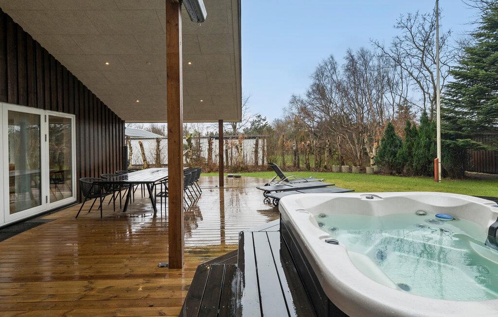 Nyd en afslappende ferie i et stilfuldt feriehus med spabad og udekøkken.