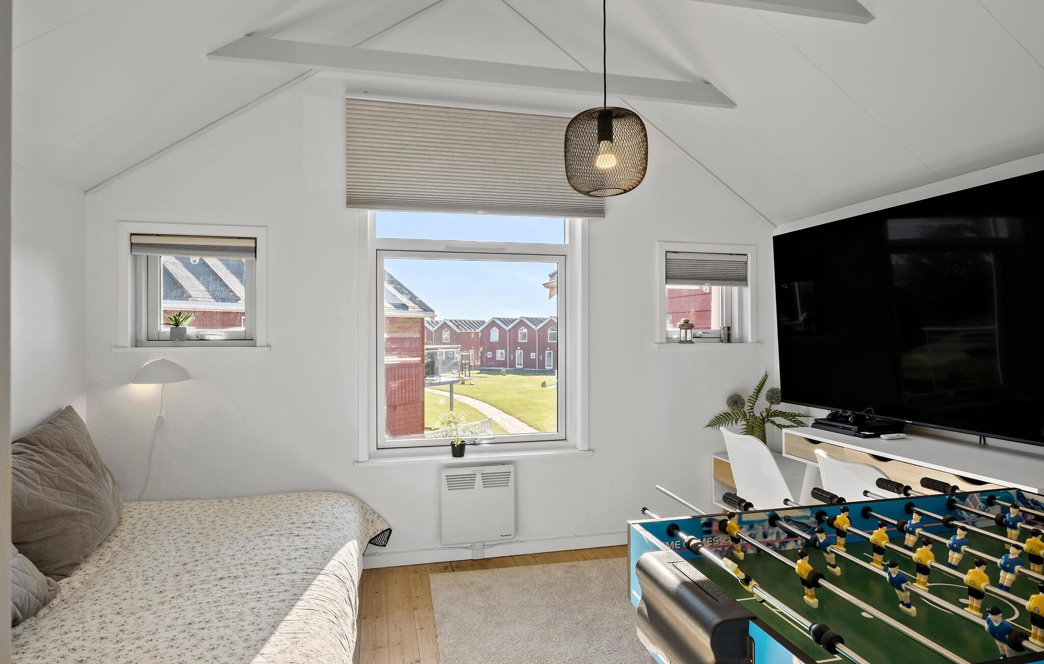 Dette sommerhus ligger kun en kort gåtur fra havet,og er en skøn ferieoase, hvor afslapning og komfort er i fokus. Uanset om I laver mad og spiser sammen i det hyggelige spisekøkken eller nyder en afslappende filmaften i sofaen, lover dette hus en familieferie med ro, nærvær og glæde.