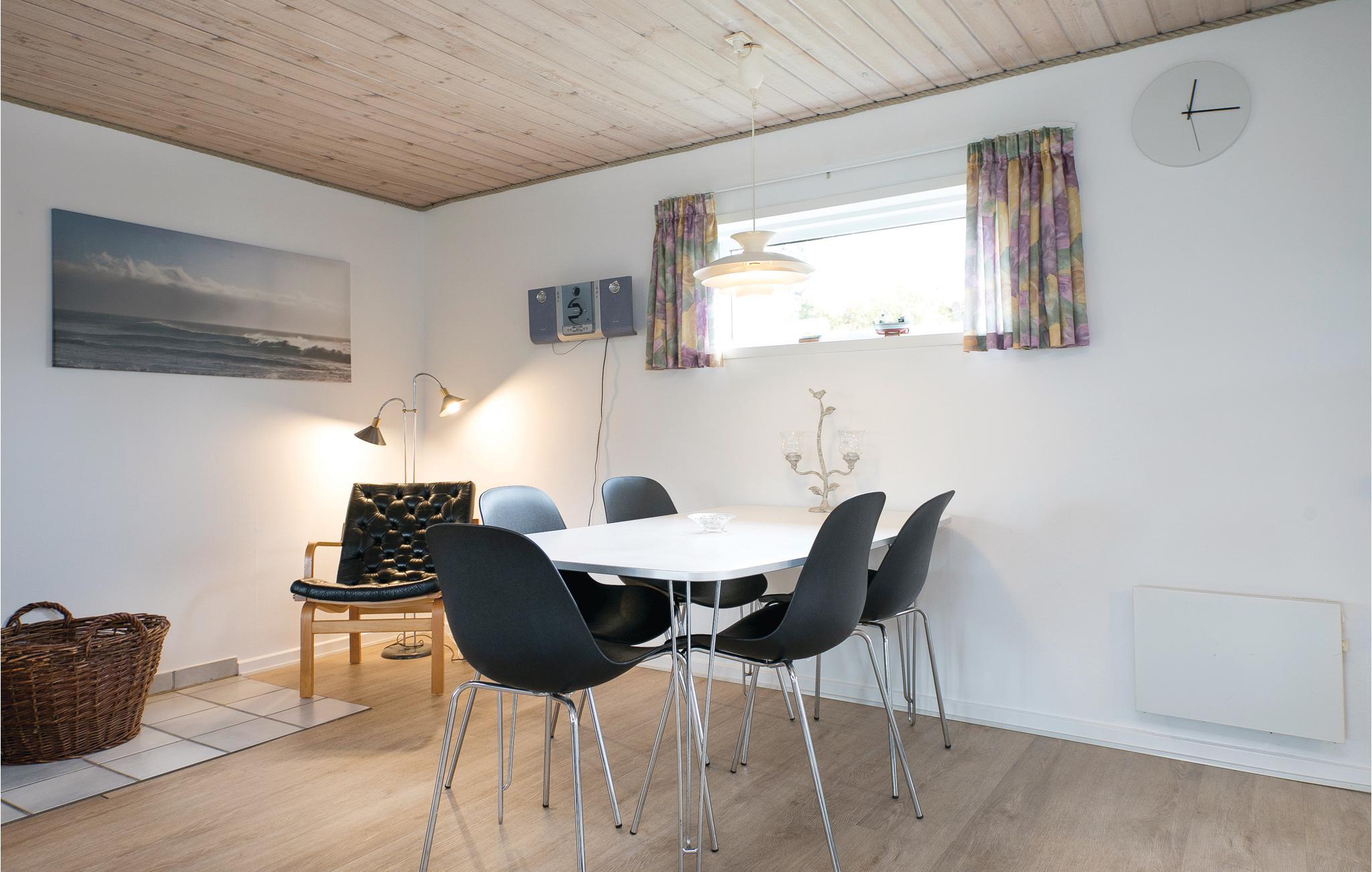 Dette lille hyggelige, moderniserede feriehus med havudsigt ligger kun 5 minutters gang fra en dejlig badestrand. Der er et pænt køkken og på badeværelset med gulvvarme er der både spabad og sauna. Fra den kombinerede spise- og opholdsstue er der udgang til en stor overdækket terrasse, hvorfra der er udsigt til en eng og havet. Der er gode møbler i hele huset. Området er kendt for sine gode forhold for surfere - spring selv på brædtet eller nyd synet af de mange dygtige der øver nye tricks når vinden er rigtig.