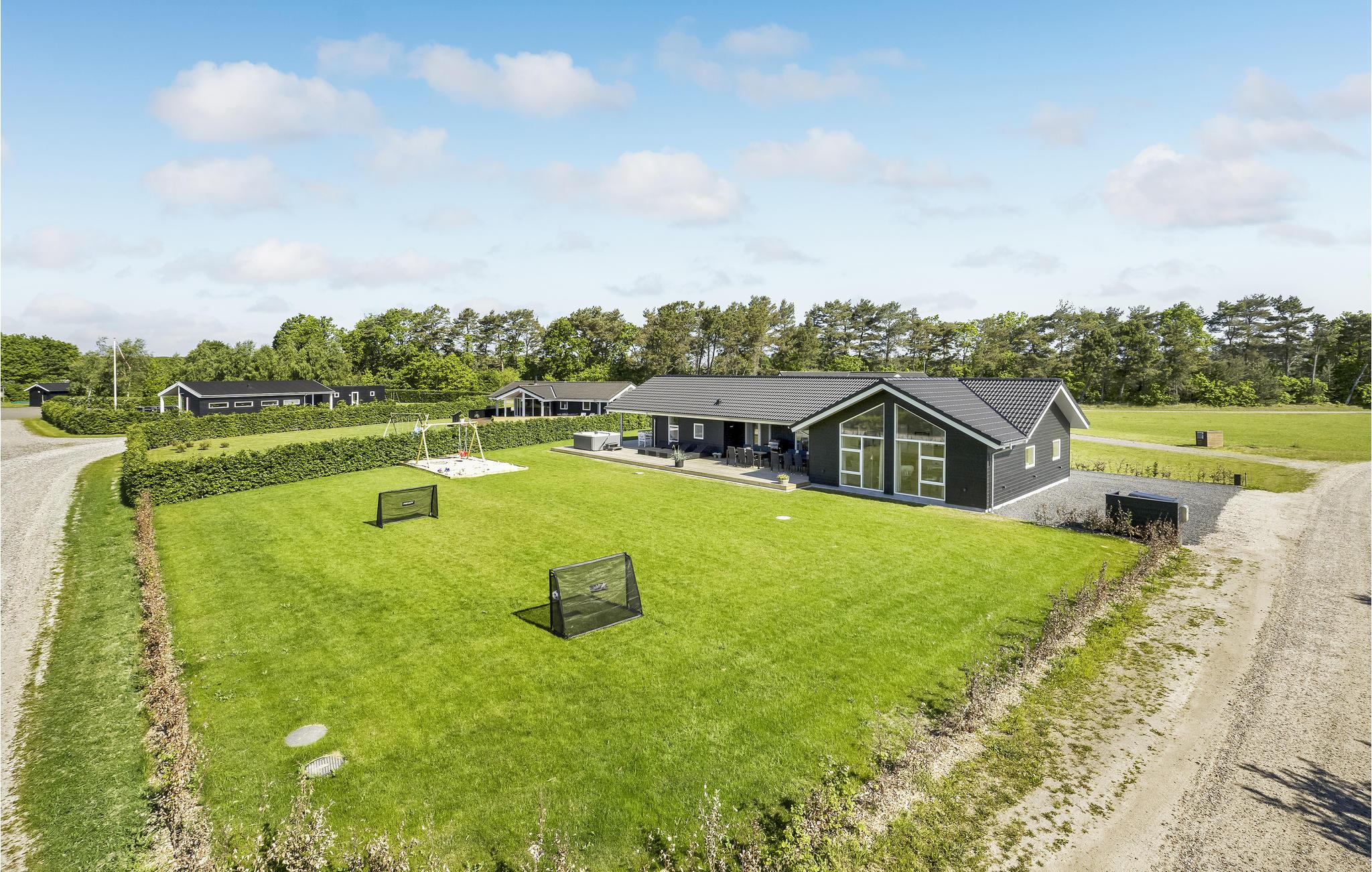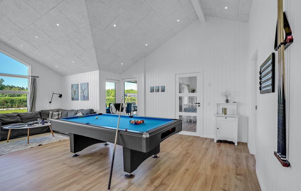 Huset har god plads til både to og tre familier eller tre generationer, som ønsker sig en ferie med masser af kvalitetstid og aktiviteter sammen. Huset er flot møbleret, og fra stuen er der udgang til den store terrasse, hvor man kan nyde udelivet fra tidlig morgen til sen aften. Den store udendørs whirlpool indbyder til dejlig afslapning og velvære. Grunden egner sig til masser af leg og boldspil. Husets aktivitetsrum henvender sig til alle aldre. Her kan man spille både billard, pool og bordtennis.