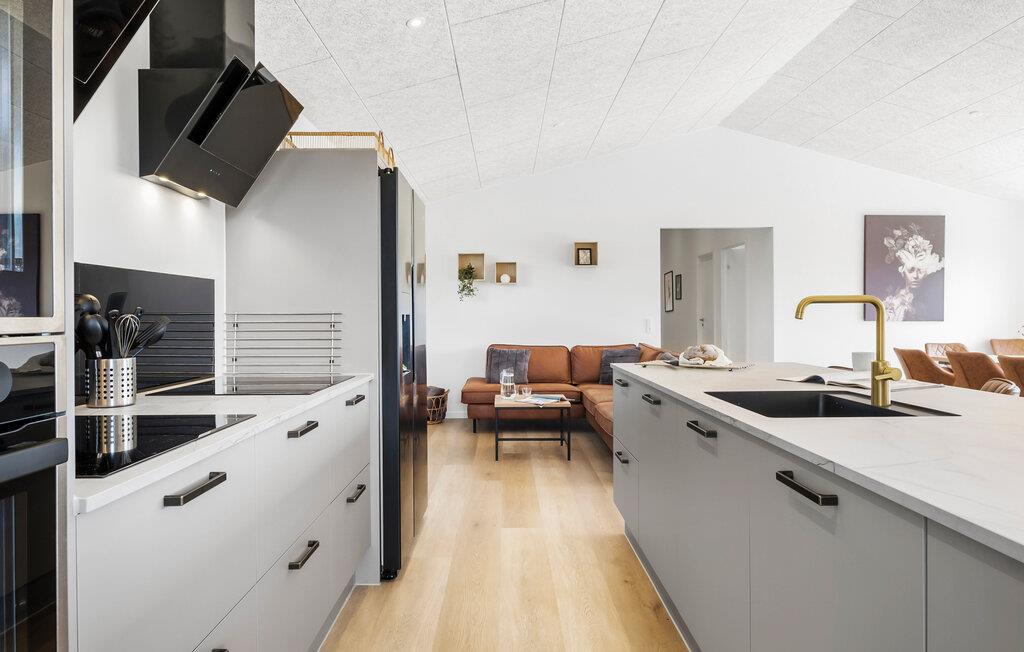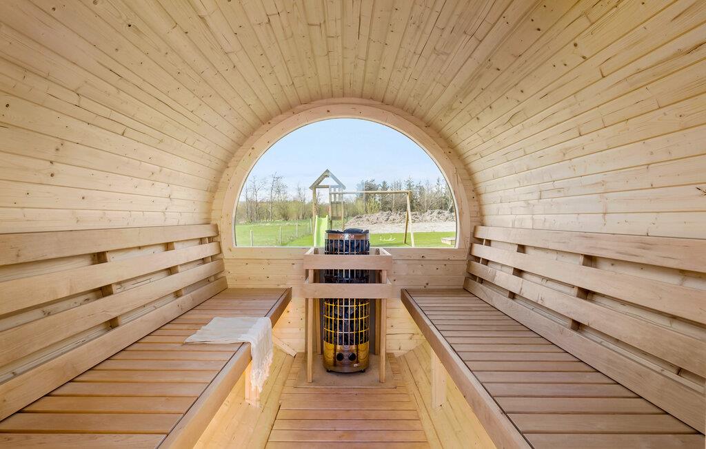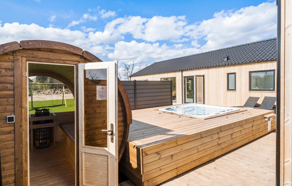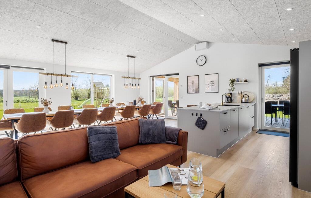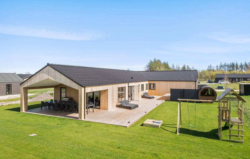 Moderne feriehus nær Øster Hurups strand med pool, sauna og legeplads til hele familien.