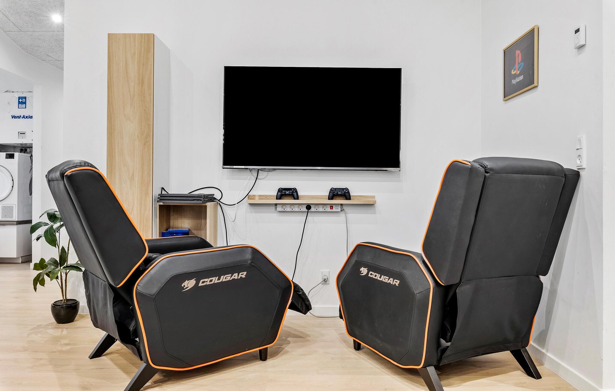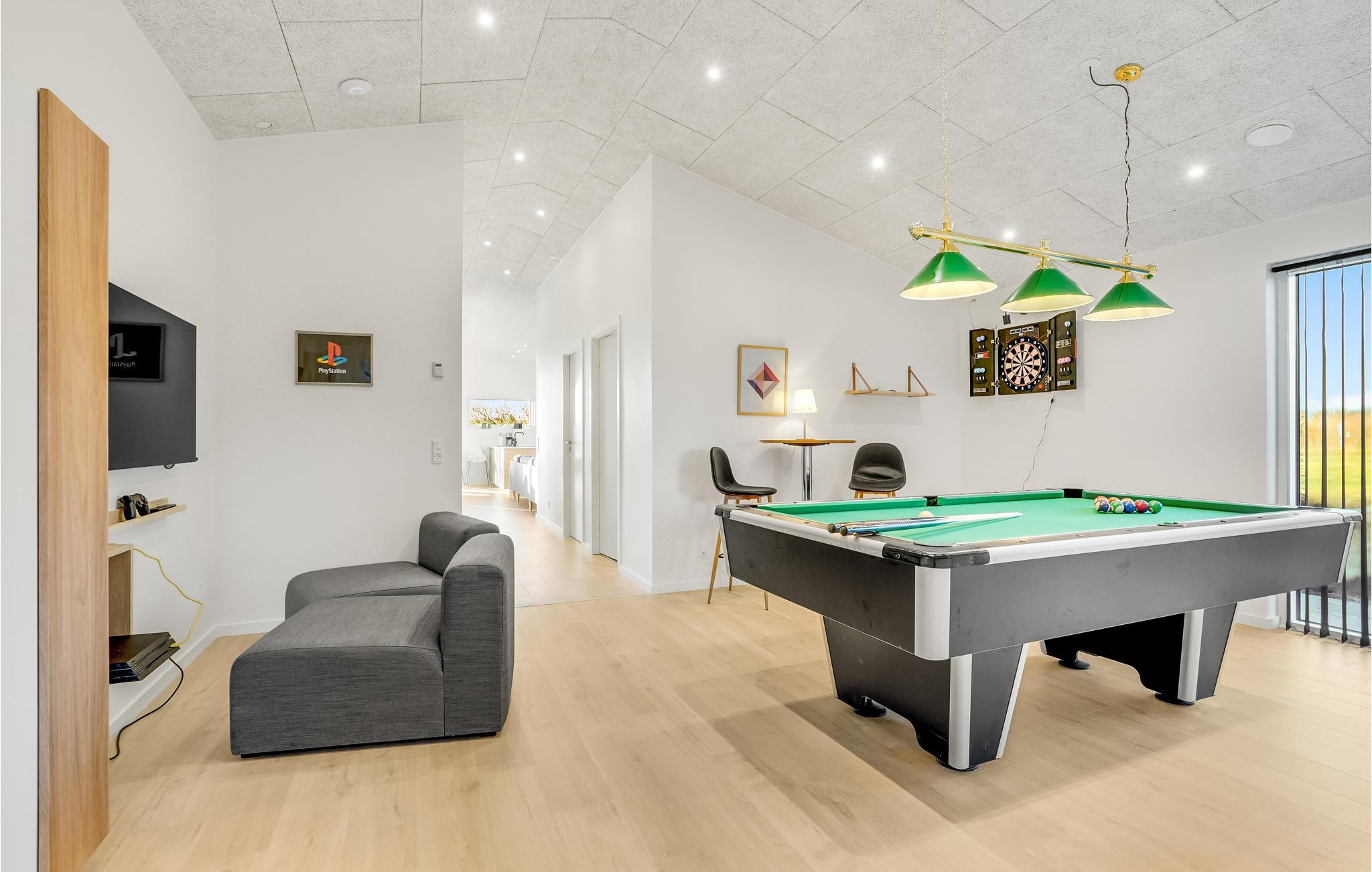 Dette rummelige hus er lyst og indbydende og byder jer velkommen med alt, hvad I behøver for en afslappende pause fra hverdagen med hele familien. Her kan både store og små familiemedlemmer få glæde af opholdet. Tilbring fornøjelige timer i poolen med en smuk udsigt til det fri, slap af i spabadet og tag en forfriskende dukkert i koldtvandsbassinet efter en beroligende tur i saunaen. Glæd jer til hyggelige aftener, når I vender tilbage fra dagens oplevelser. Sæt jer godt til rette ved spisebordet, lad middagen glide over i en spilleaften, dyst i bordfodbold eller billard, eller nyd lange samtaler i godt selskab.