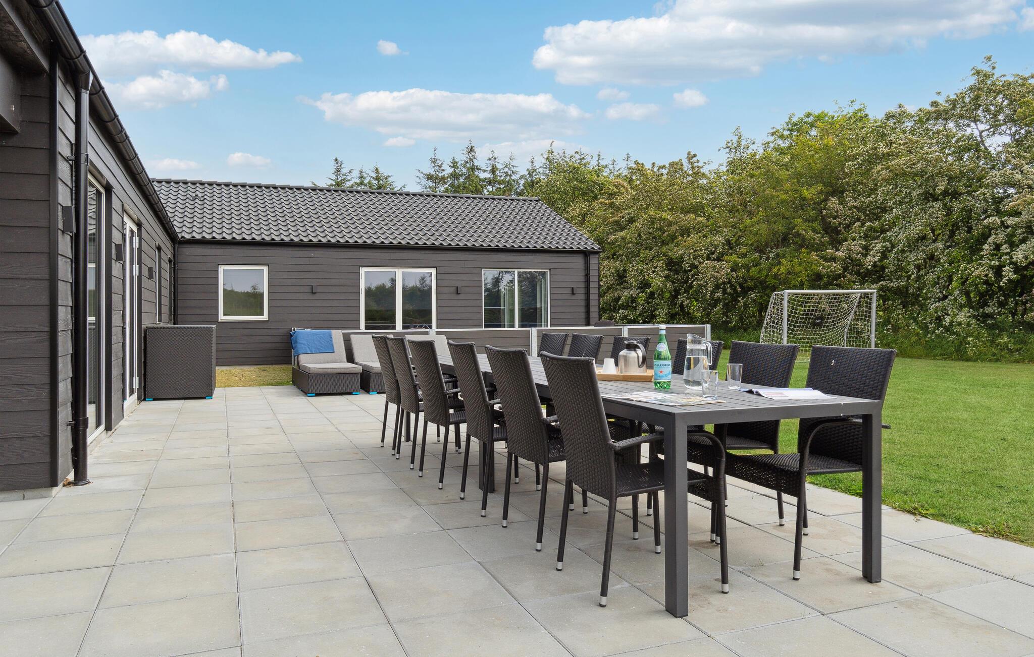 Tilbring masser af tid under åben himmel. Grunden byder på plads til både leg og afslapning. Nyd solen på terrassen, mens børnene graver i sandet eller har det sjovt med at hoppe på trampolinen, og slut dagen af med hygge ved lejrbålet.