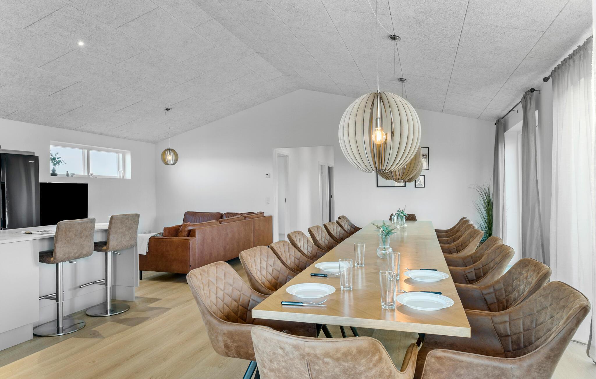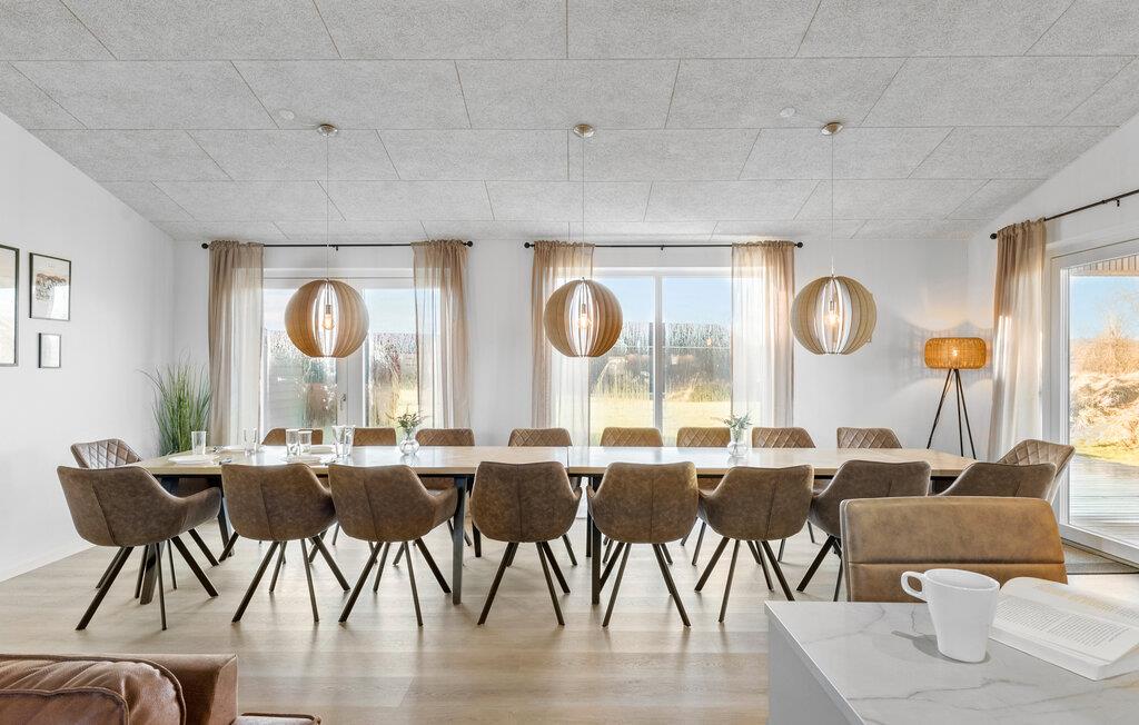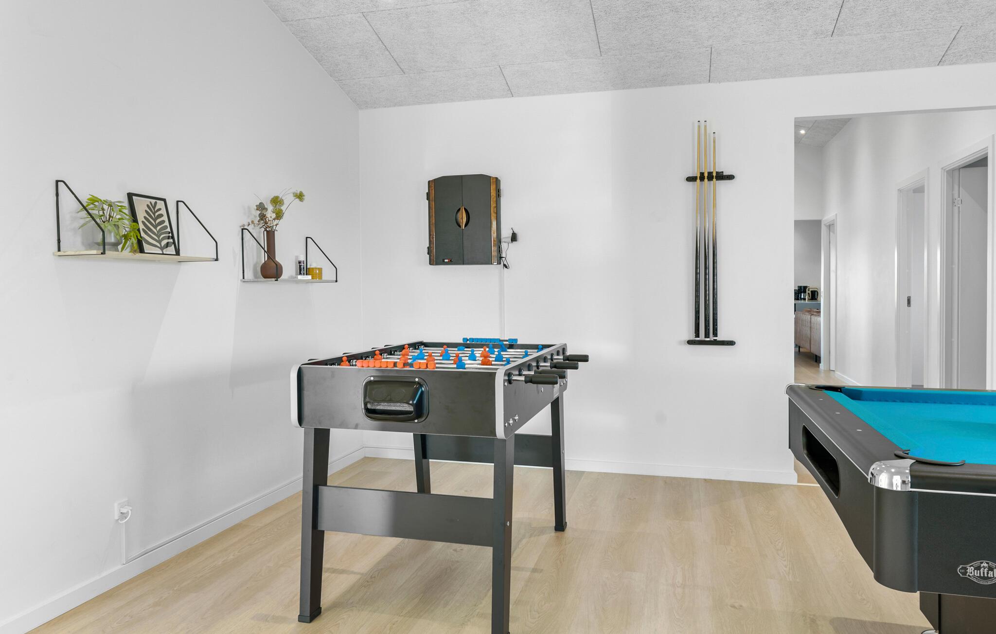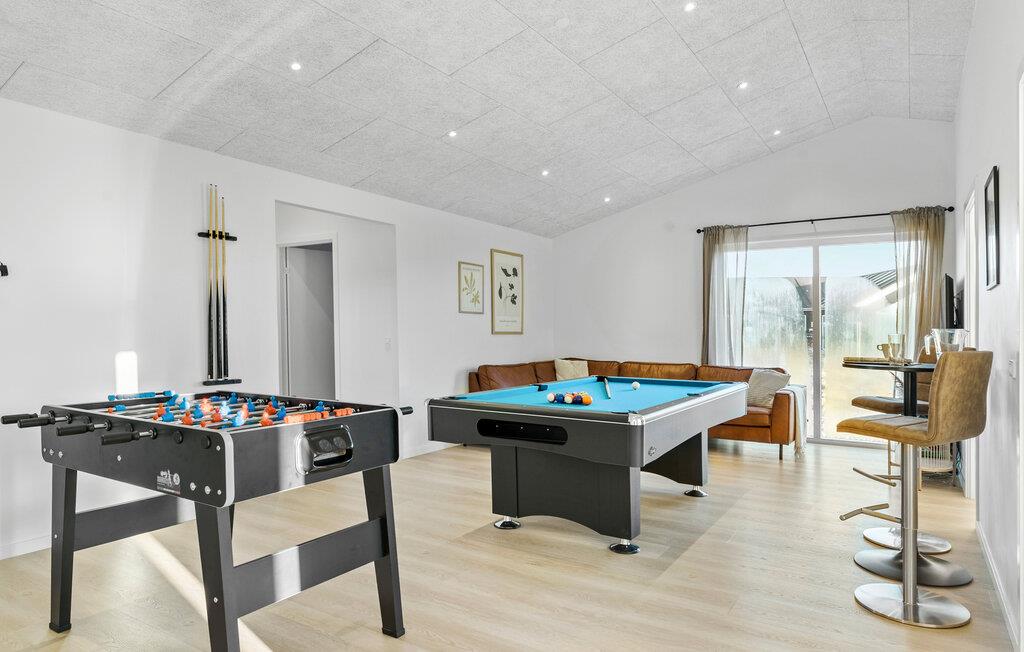Hvis I er på udkig efter en rummelig og komfortabel base for årets store familiesammenkomst på tværs af generationerne, er dette moderne luksushus ved Øster Hurup det helt rette valg for jer. Her får I masser af kvadratmeter, masser af komfort og masser af faciliteter, der gør det muligt at nyde en masse dejlige stunder med dem, I holder af, uden at skulle bekymre jer om noget. Køkkenet er stort og veludstyret, så familiens kokke kan tage sig god tid med at lave mad til det helt store festmåltid ved spisebordet med plads til alle. Hvis vejret bider lidt, er der masser af sjov at give sig til indendørs; mens nogen duellerer ved poolbordet, i bordfodbold eller i dart, kan andre plaske rundt i den skønne, indendørs pool. Om aftenen kan I sætte jer godt til rette i de bløde sofaer med et godt glas vin, brætspil eller måske en familiequiz til sent og nyde, at I ikke skal tidligt op dagen efter.