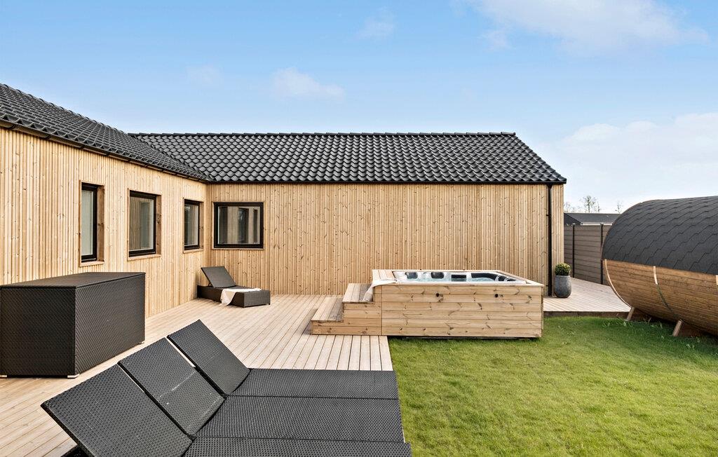 Moderne luksushus ved Øster Hurup med pool, sauna, legeplads og wellness faciliteter for hele familien.