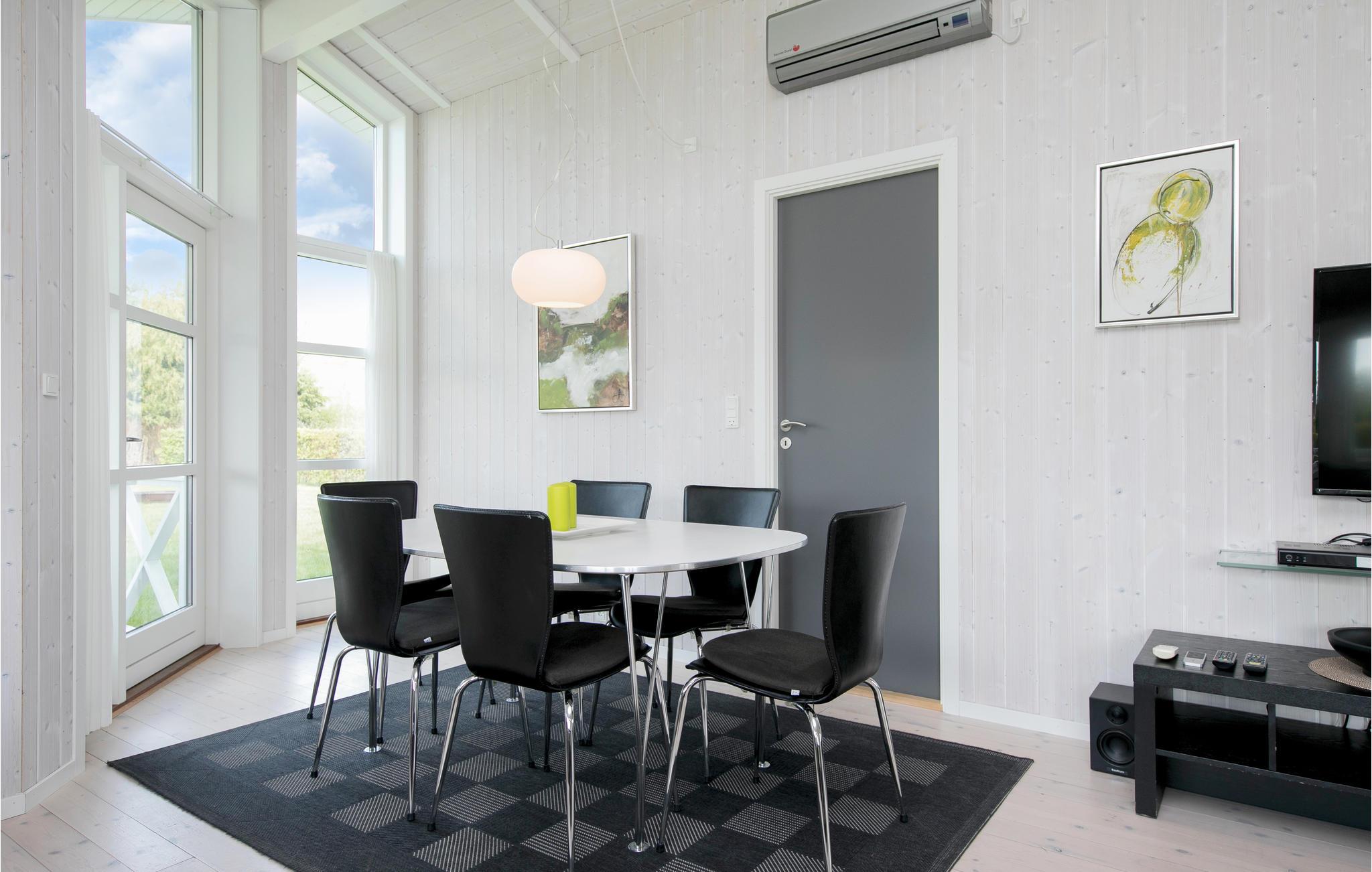 I Øster Hurup ligger dette dejlige feriehus med en lys og hyggelig indretning, brændeovn og gode møbler. I huset er der tre gode soveværelser, et gæstetoilet samt et badeværelse med spabad til de ømme muskler. Fra stuen er der udgang til terrassen, hvor I kan sidde og nyde ferien. I Øster Hurup er der et suptropisk badeland, og naturparken Lille Vildmose ligger tæt på feriehuset. I Øster Hurup er der desuden en hyggelig lille havn, hvor I kan nyde en stille øl eller bare opleve hvad der sker på havnen. I sommerperioden er der masser af liv og mange boder.