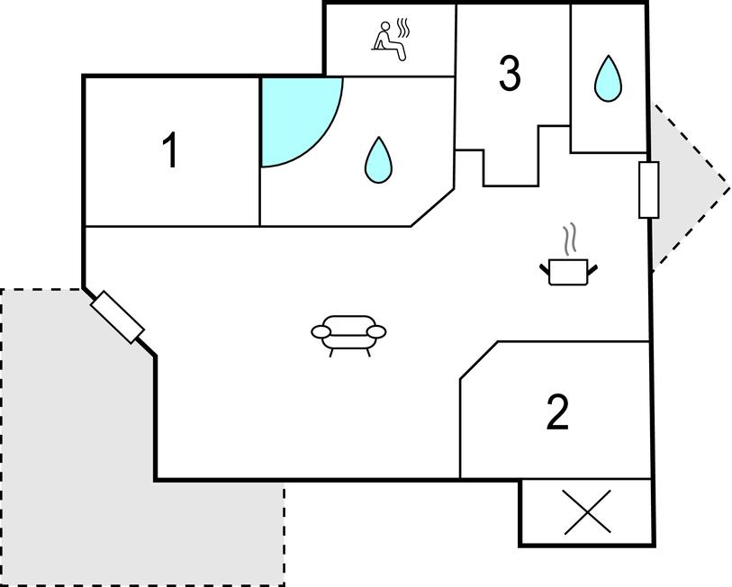 Badeværelse 8m2 (nr. 1) - WC. Varmt og koldt vand. Bruser