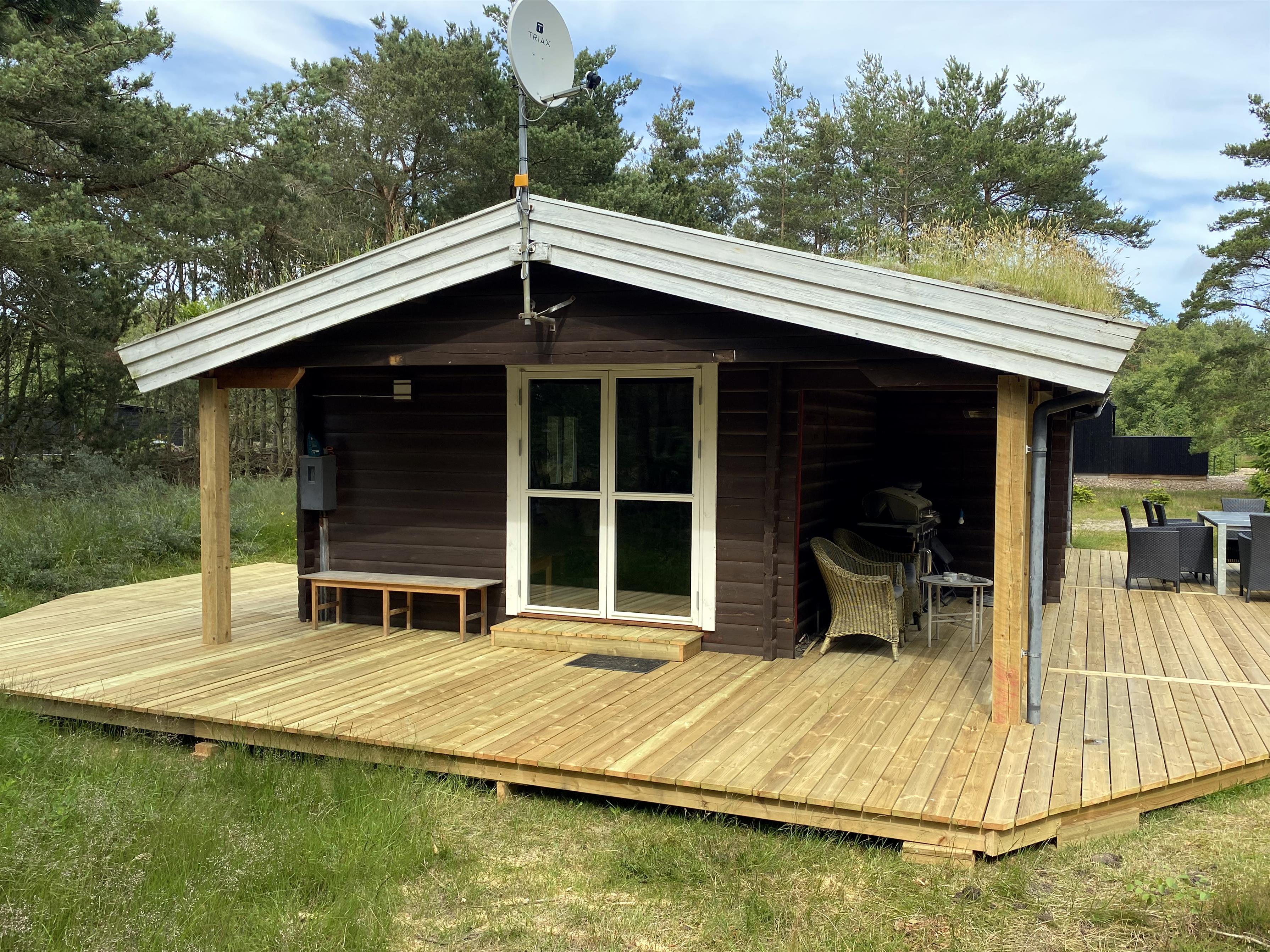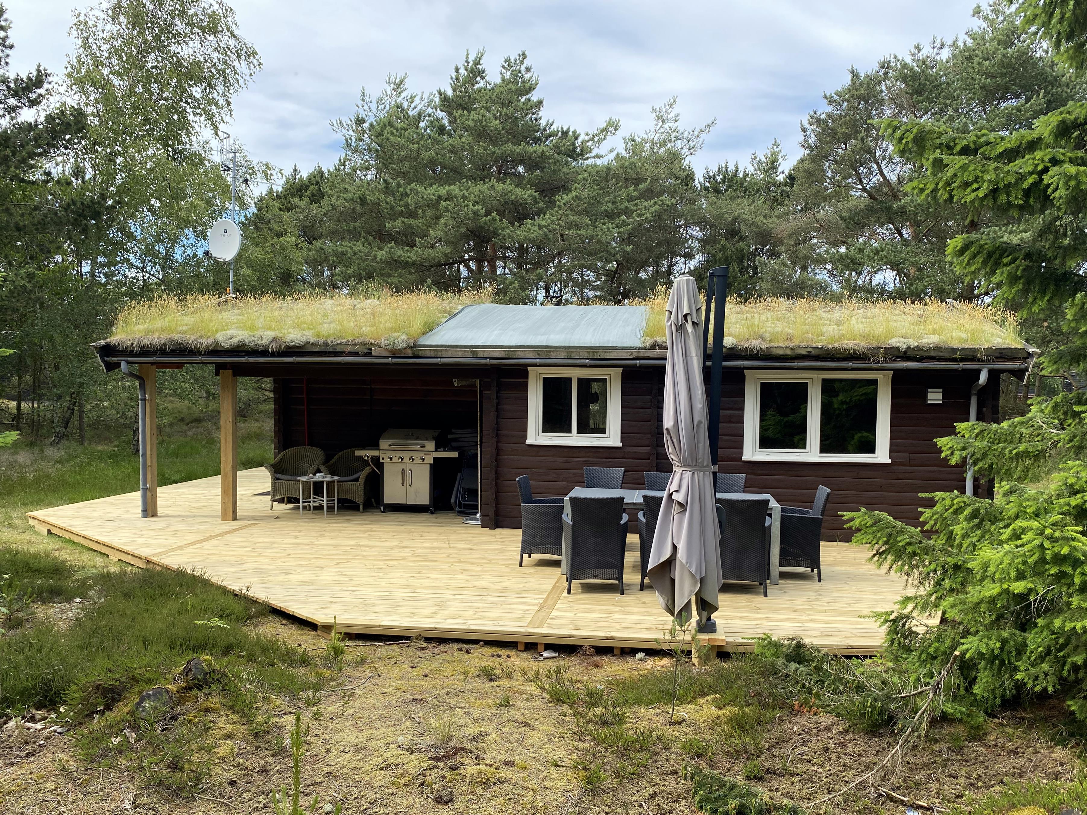 Delvis overdækket terrasse med grill. Et rigtig dejligt sted omkranset af fyrretræer, tæt på stranden og Østerby Havn, hvor der er marina, restauranter, fiskehandel og fine indkøbsmuligheder.