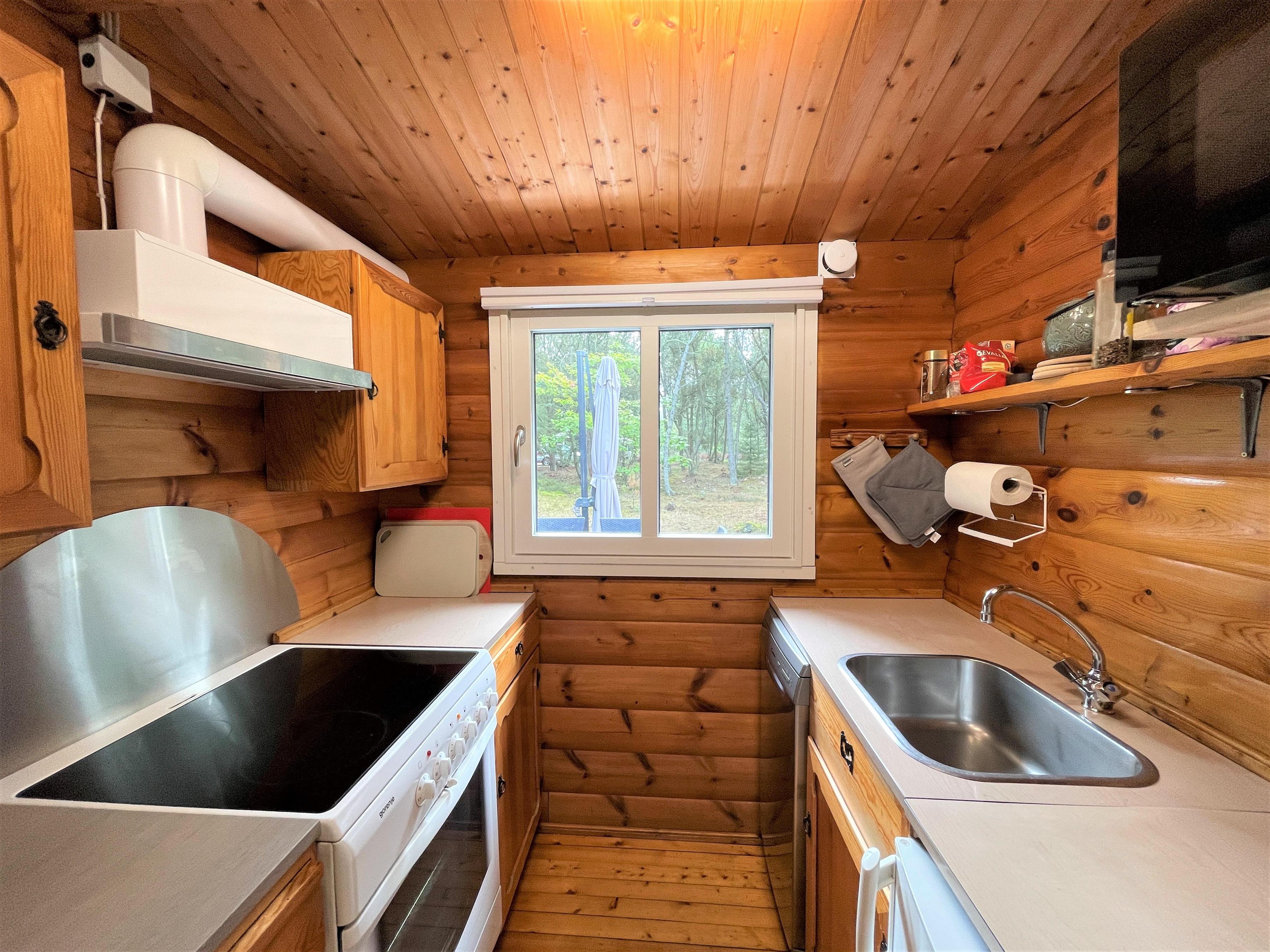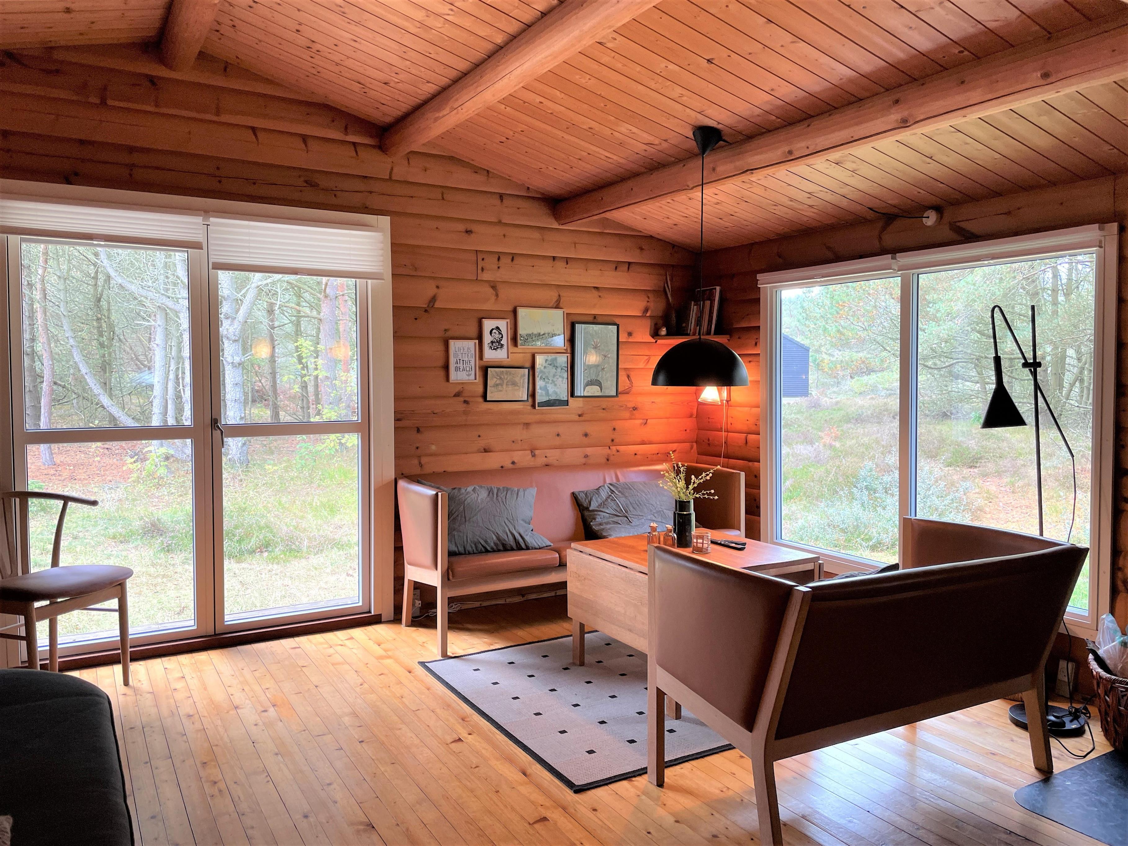 Rigtigt fint og hyggeligt feriehus i bedste fjeldhyttestil beliggende på skøn naturgrund. Selve huset har et køkken/alrum og hyggelig stue med brændeovn, samt varmepumpe. To soverum, et med dobbeltseng og køjeseng og et med 2 enkeltsenge. Et lille badeværelse med brus.