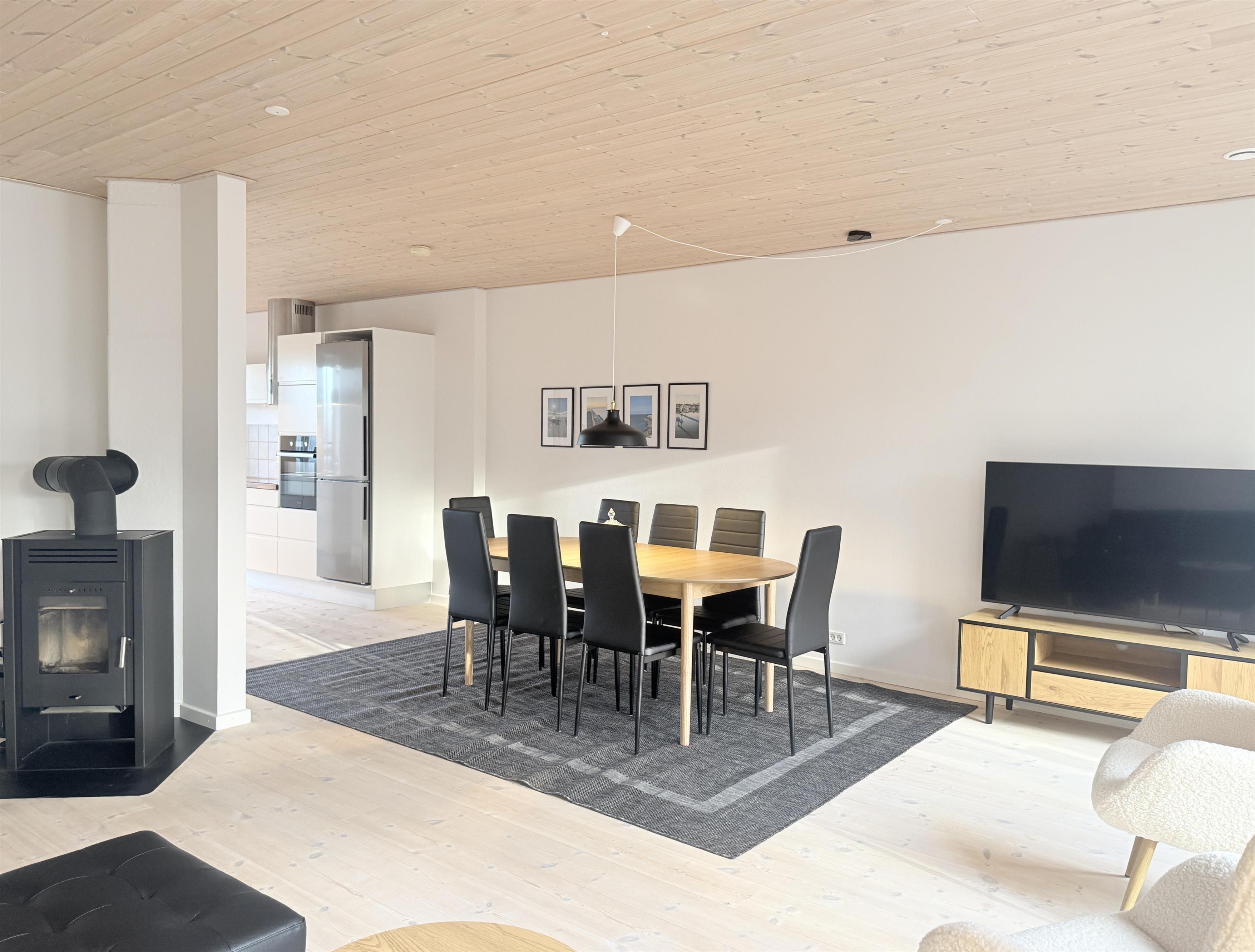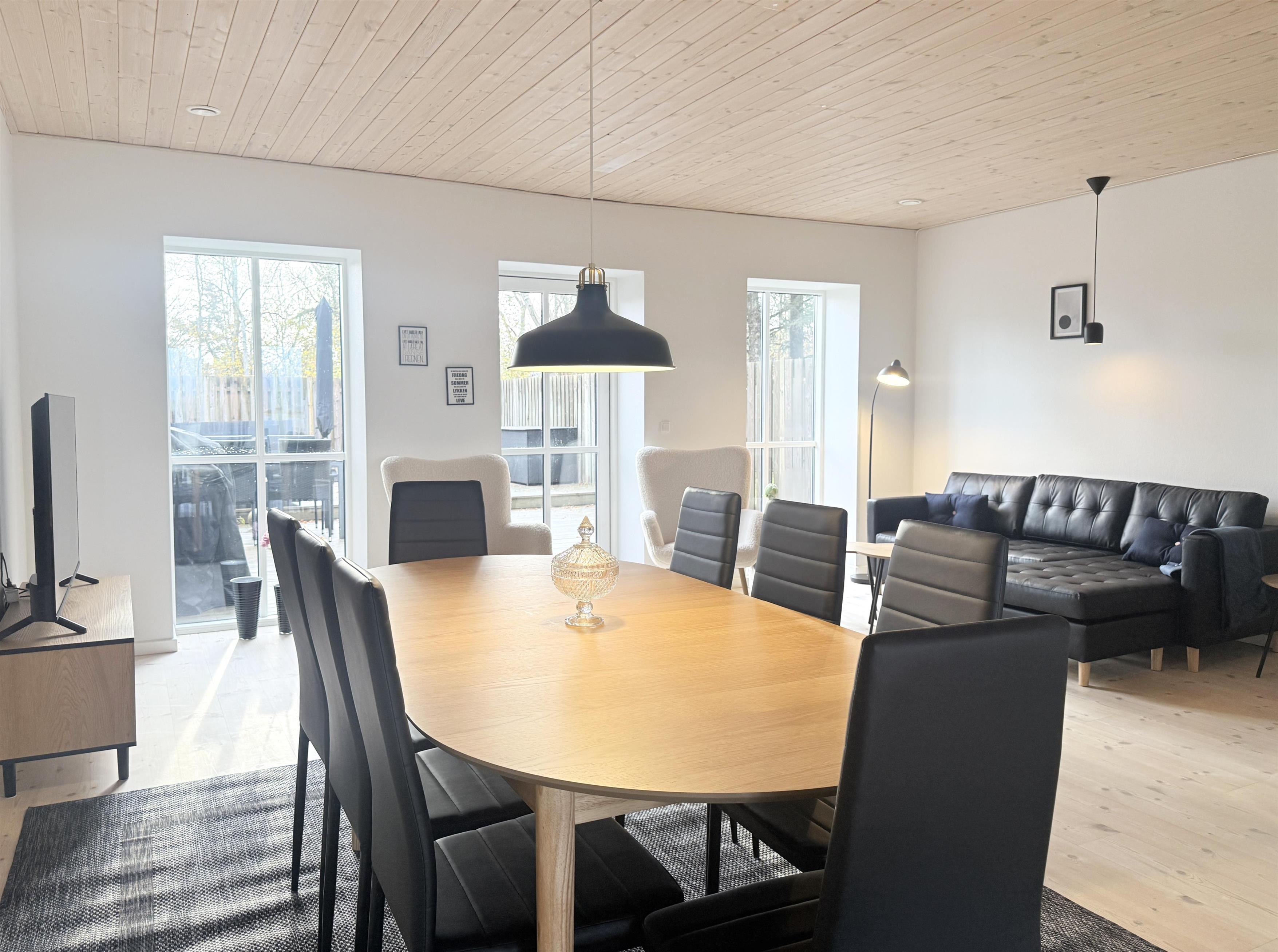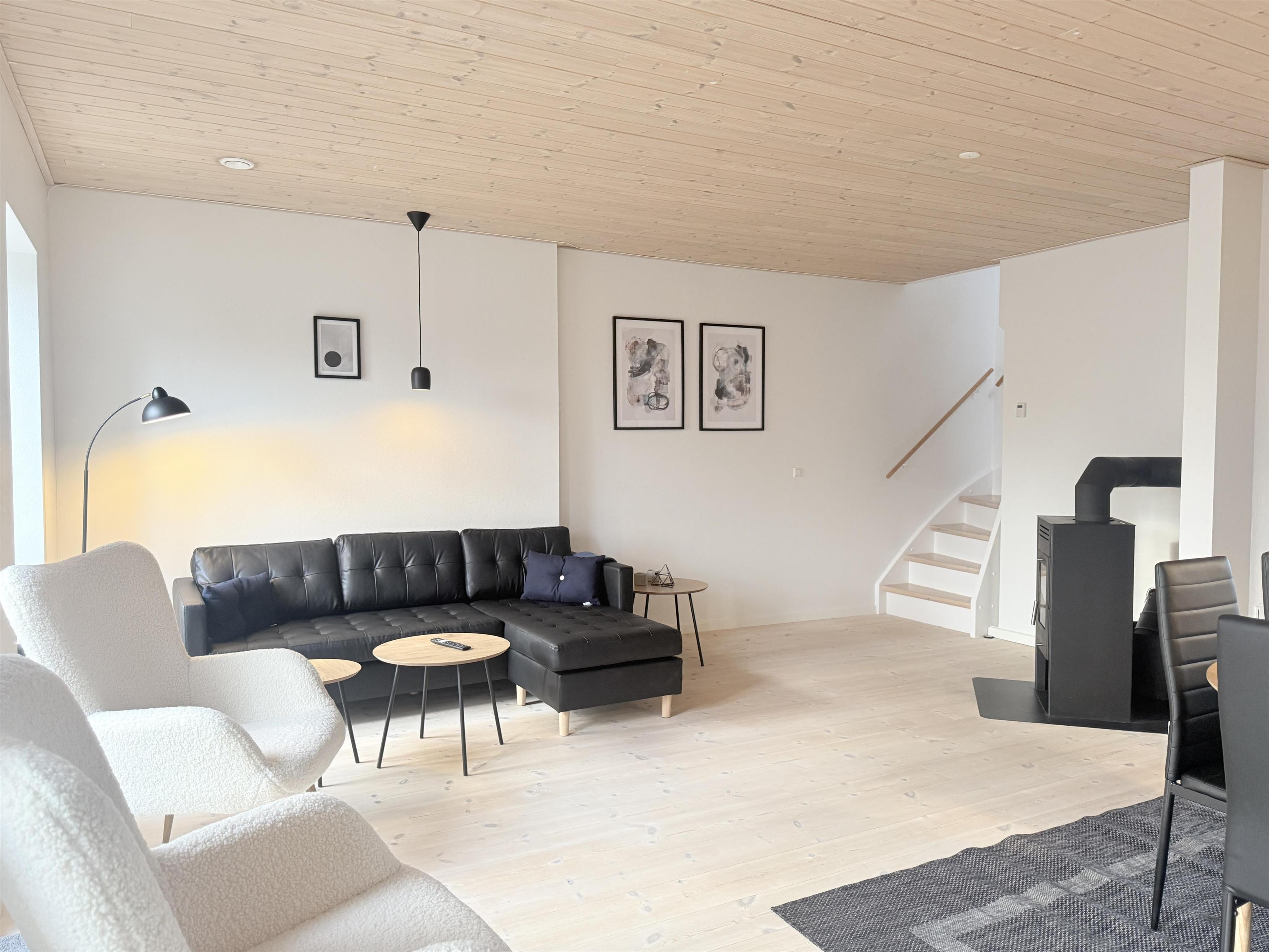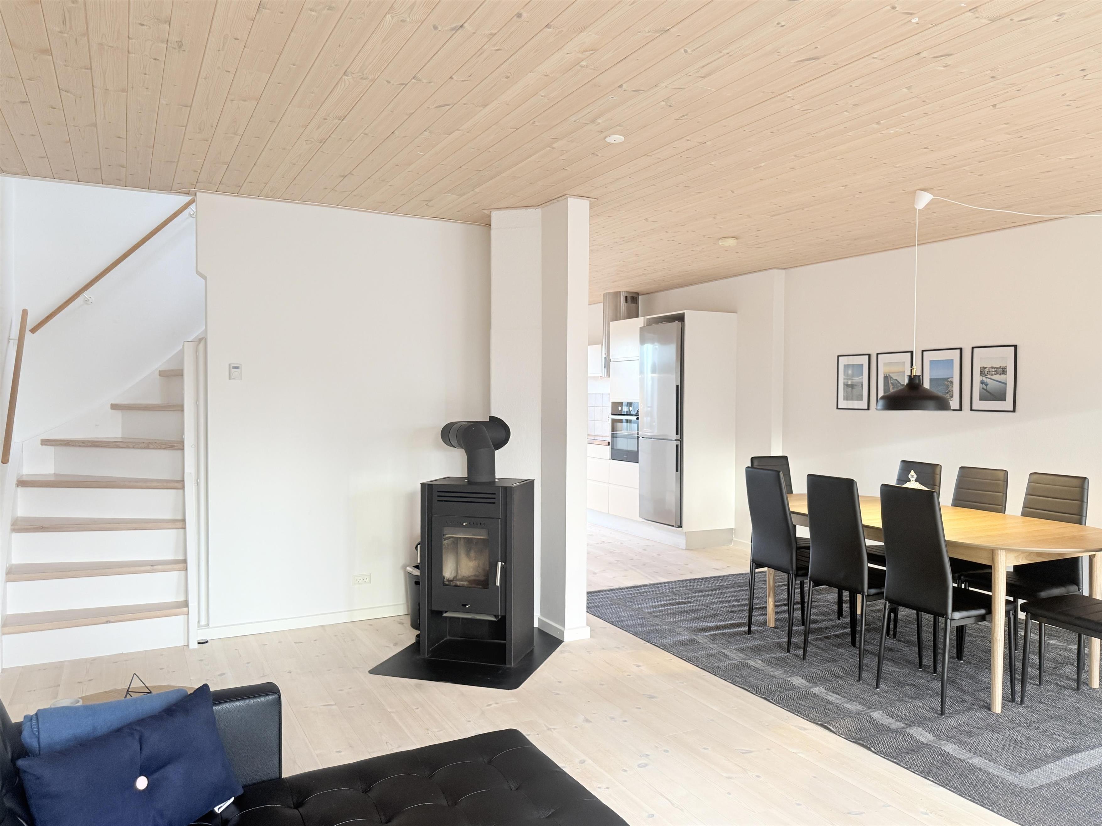 Dette flotte rækkehus med havudsigt, fordelt på to etager ved en af Læsøs bedste badestrande skaber rammerne for den allerbedste ferie på Læsø. Flotte lysindfald uanset hvor I huset, man befinder sig. I stueetagen findes et indbydende køkken alrum og en stor stue med TV og hyggeligt sofaområde. Her er også udgang til den flotte træterrasse. Fint gæstetoilet. På 1.sal er der tre soveværelser, to med dobbeltsenge og et med to enkeltsenge. I hallen er der endnu en sovesofa. Desuden et flot badeværelse med brus. Placeringen er den midterste bolig i rækkehuset. Der er terrasser på begge sider af huset, og der er rigtig gode havemøbler og grill til rådighed. Fra boligen har man stranden og det hyggelige havnemiljø med marina, restauranter, fiskehandler og indkøbsmuligheder i Østerby lige udenfor døren. En skøn beliggenhed, der også skaber rammerne for de dejligste familieaftener i skæret af solnedgangen over Kattegat.