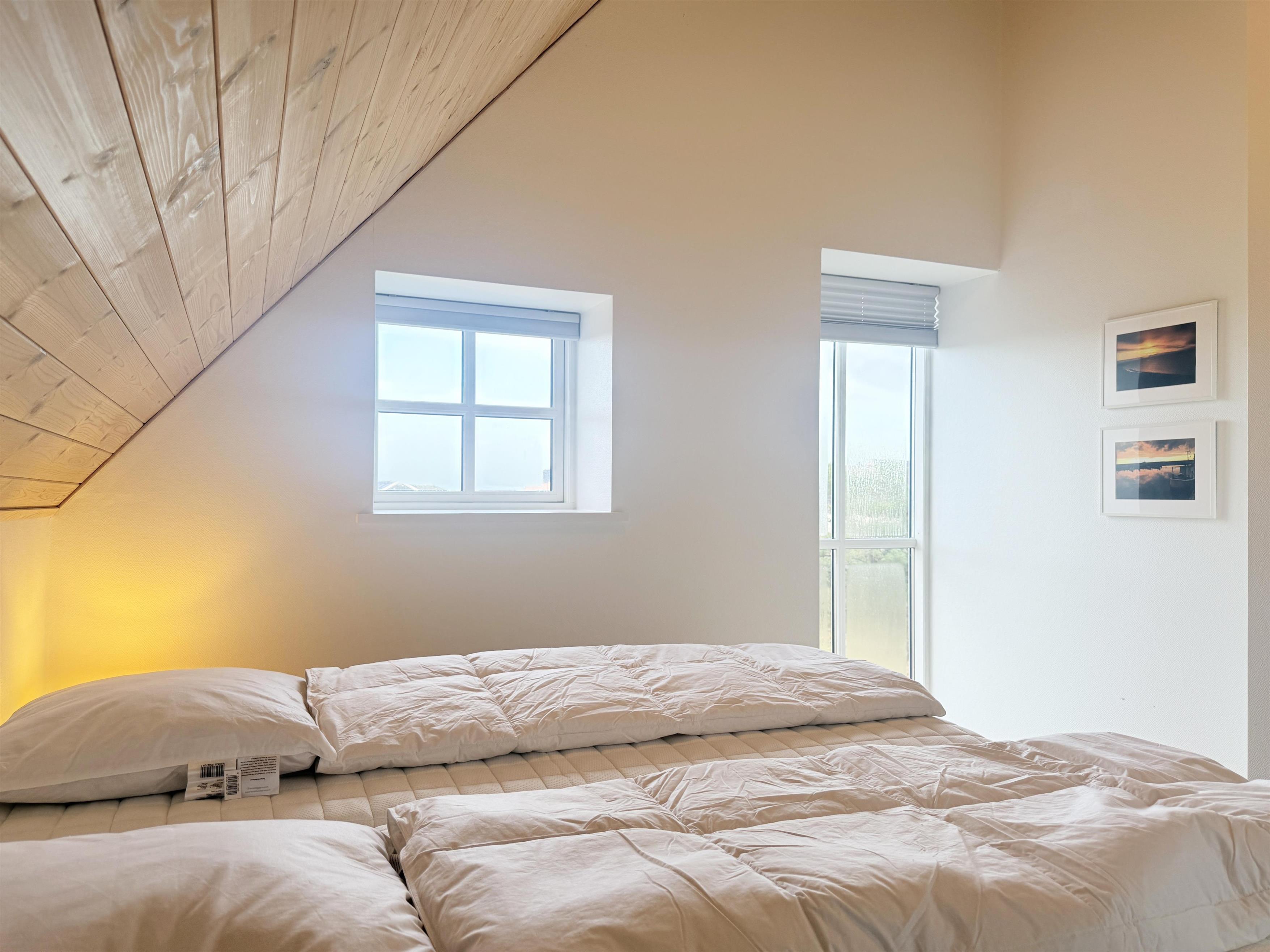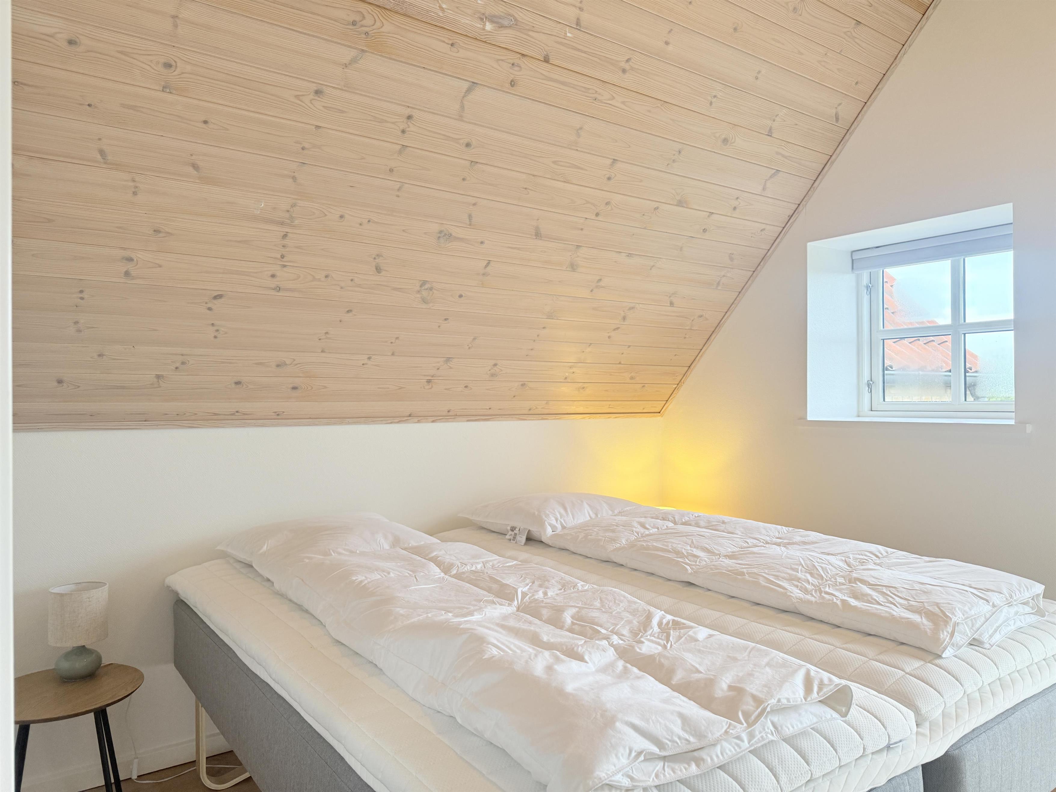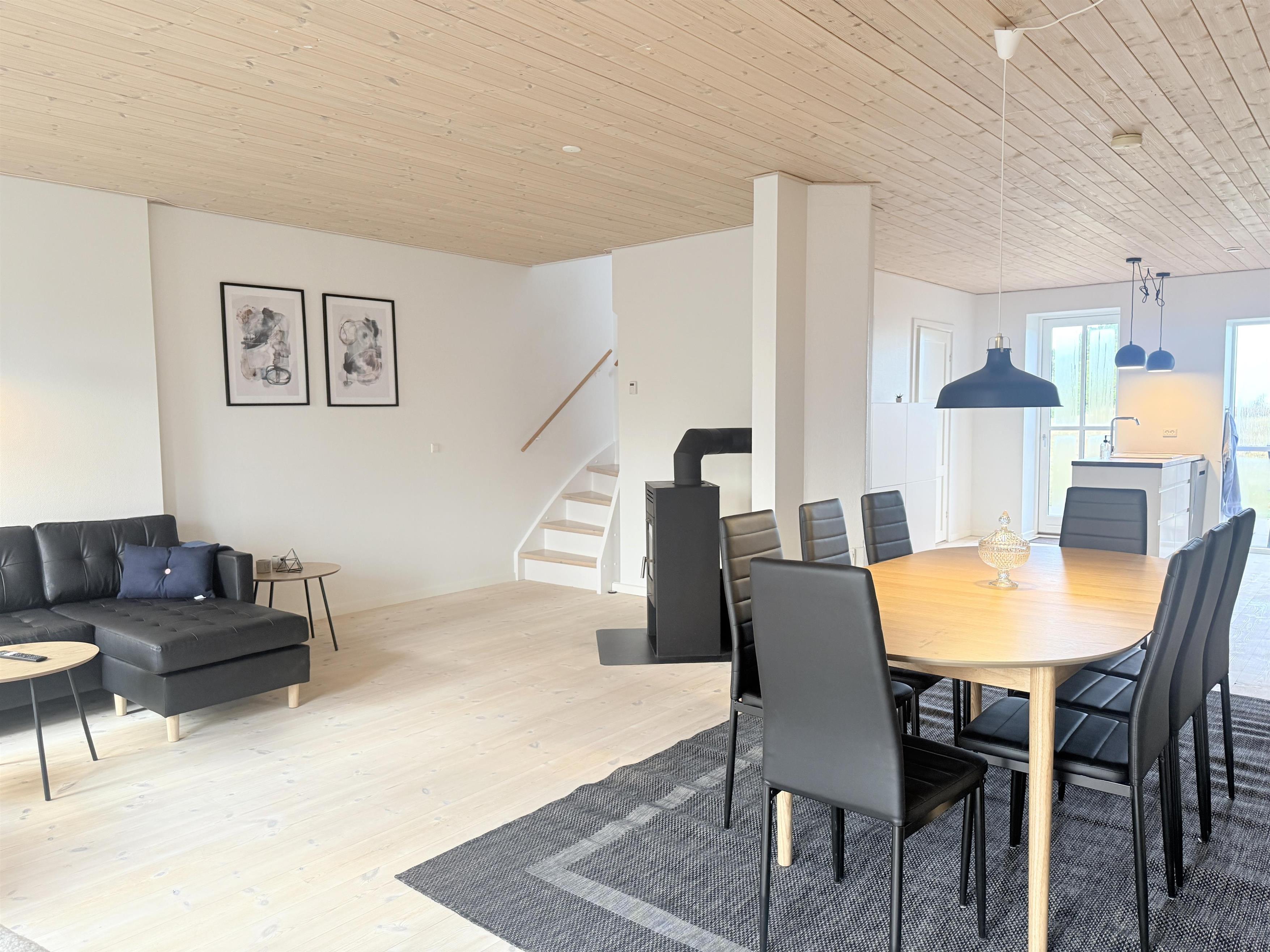 Dette flotte rækkehus med havudsigt, fordelt på to etager ved en af Læsøs bedste badestrande skaber rammerne for den allerbedste ferie på Læsø. Flotte lysindfald uanset hvor I huset, man befinder sig. I stueetagen findes et indbydende køkken alrum og en stor stue med TV og hyggeligt sofaområde. Her er også udgang til den flotte træterrasse. Fint gæstetoilet. På 1.sal er der tre soveværelser, to med dobbeltsenge og et med to enkeltsenge. I hallen er der endnu en sovesofa. Desuden et flot badeværelse med brus. Placeringen er den midterste bolig i rækkehuset. Der er terrasser på begge sider af huset, og der er rigtig gode havemøbler og grill til rådighed. Fra boligen har man stranden og det hyggelige havnemiljø med marina, restauranter, fiskehandler og indkøbsmuligheder i Østerby lige udenfor døren. En skøn beliggenhed, der også skaber rammerne for de dejligste familieaftener i skæret af solnedgangen over Kattegat.