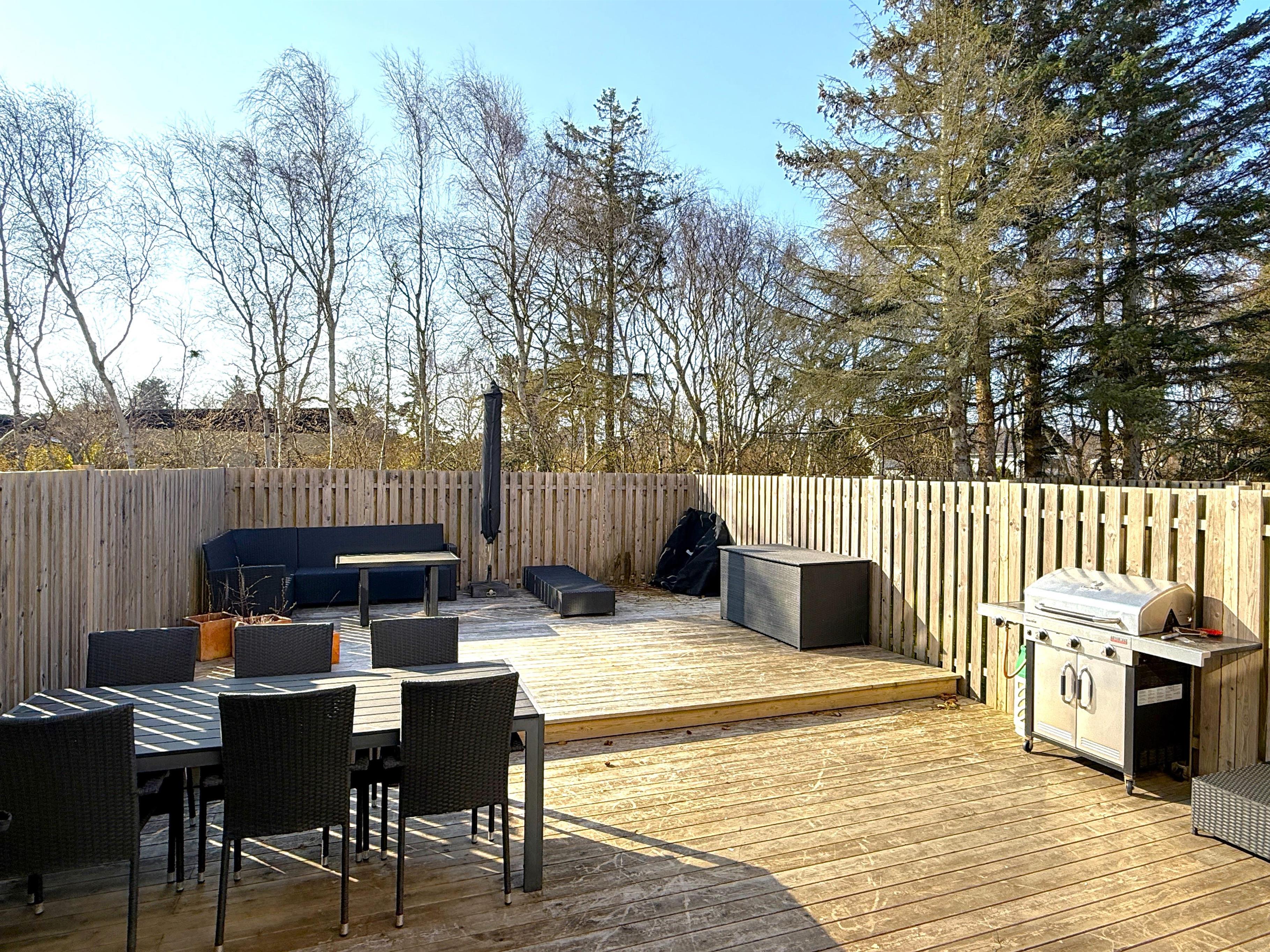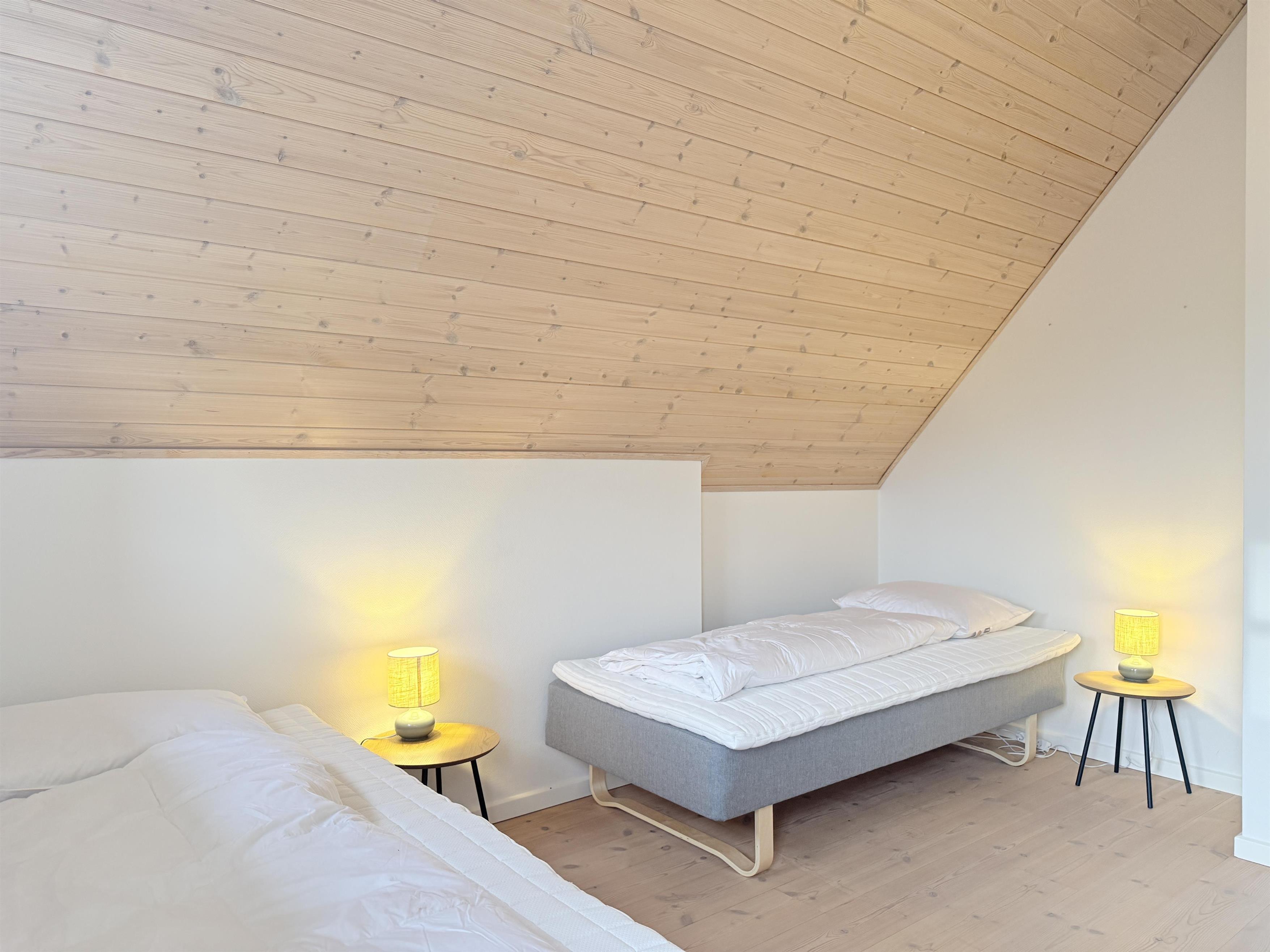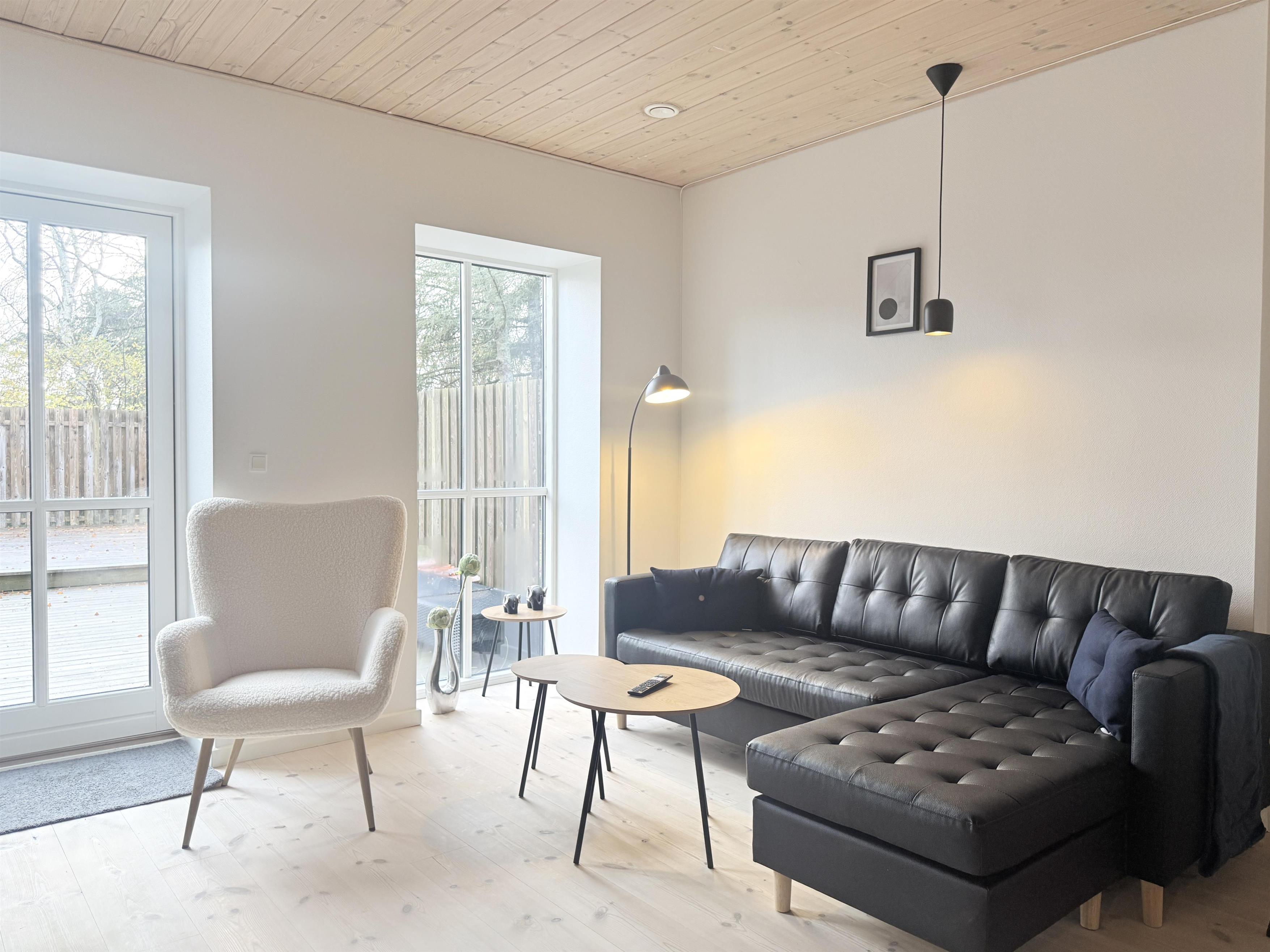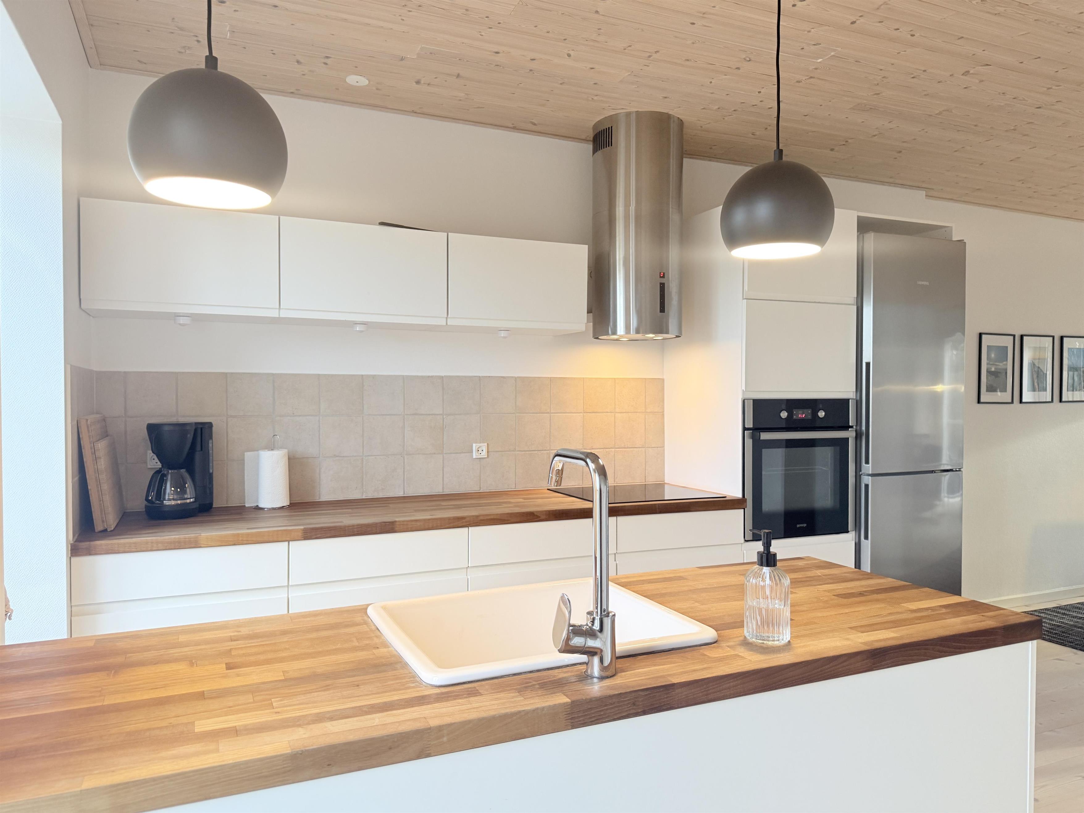 Dette flotte rækkehus med havudsigt, fordelt på to etager ved en af Læsøs bedste badestrande skaber rammerne for den allerbedste ferie på Læsø. Flotte lysindfald uanset hvor I huset, man befinder sig. I stueetagen findes et indbydende køkken alrum og en stor stue med TV og hyggeligt sofaområde. Her er også udgang til den flotte træterrasse. Fint gæstetoilet. På 1.sal er der tre soveværelser, to med dobbeltsenge og et med to enkeltsenge. I hallen er der endnu en sovesofa. Desuden et flot badeværelse med brus. Placeringen er den midterste bolig i rækkehuset. Der er terrasser på begge sider af huset, og der er rigtig gode havemøbler og grill til rådighed. Fra boligen har man stranden og det hyggelige havnemiljø med marina, restauranter, fiskehandler og indkøbsmuligheder i Østerby lige udenfor døren. En skøn beliggenhed, der også skaber rammerne for de dejligste familieaftener i skæret af solnedgangen over Kattegat.