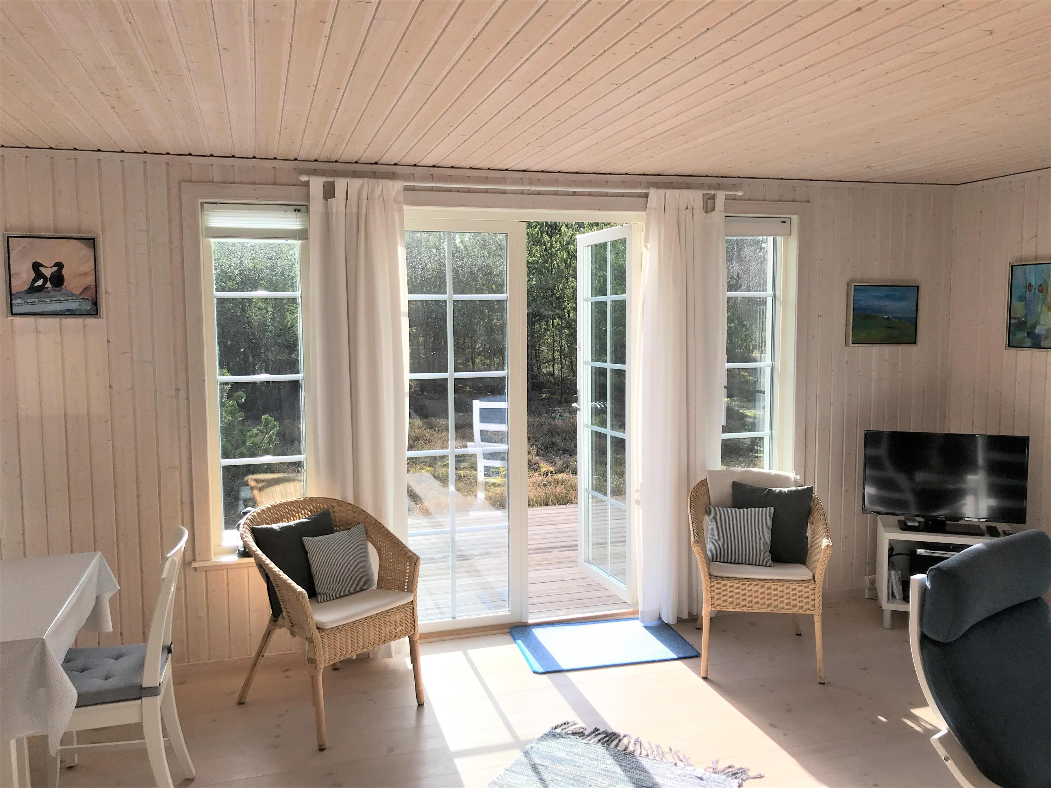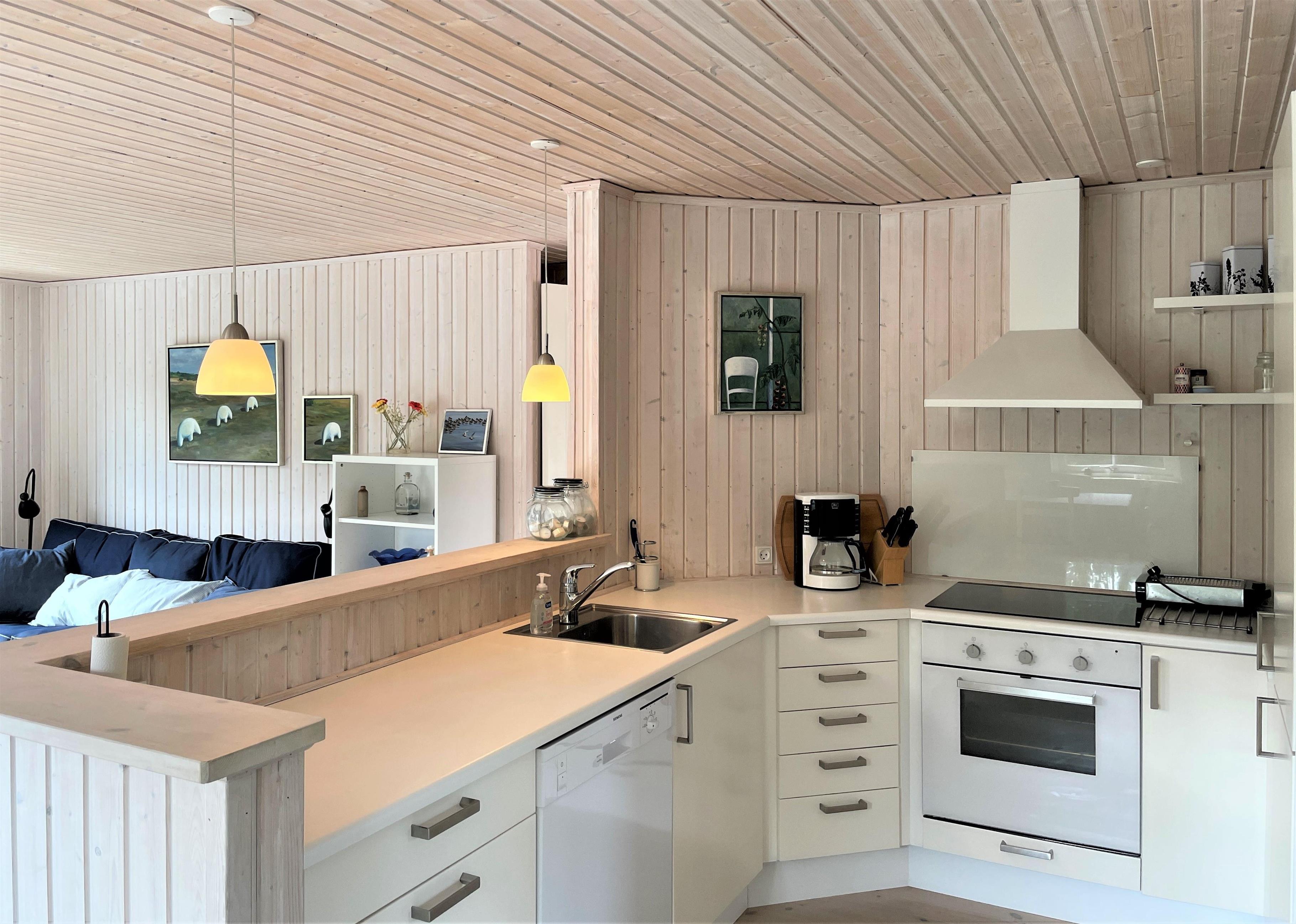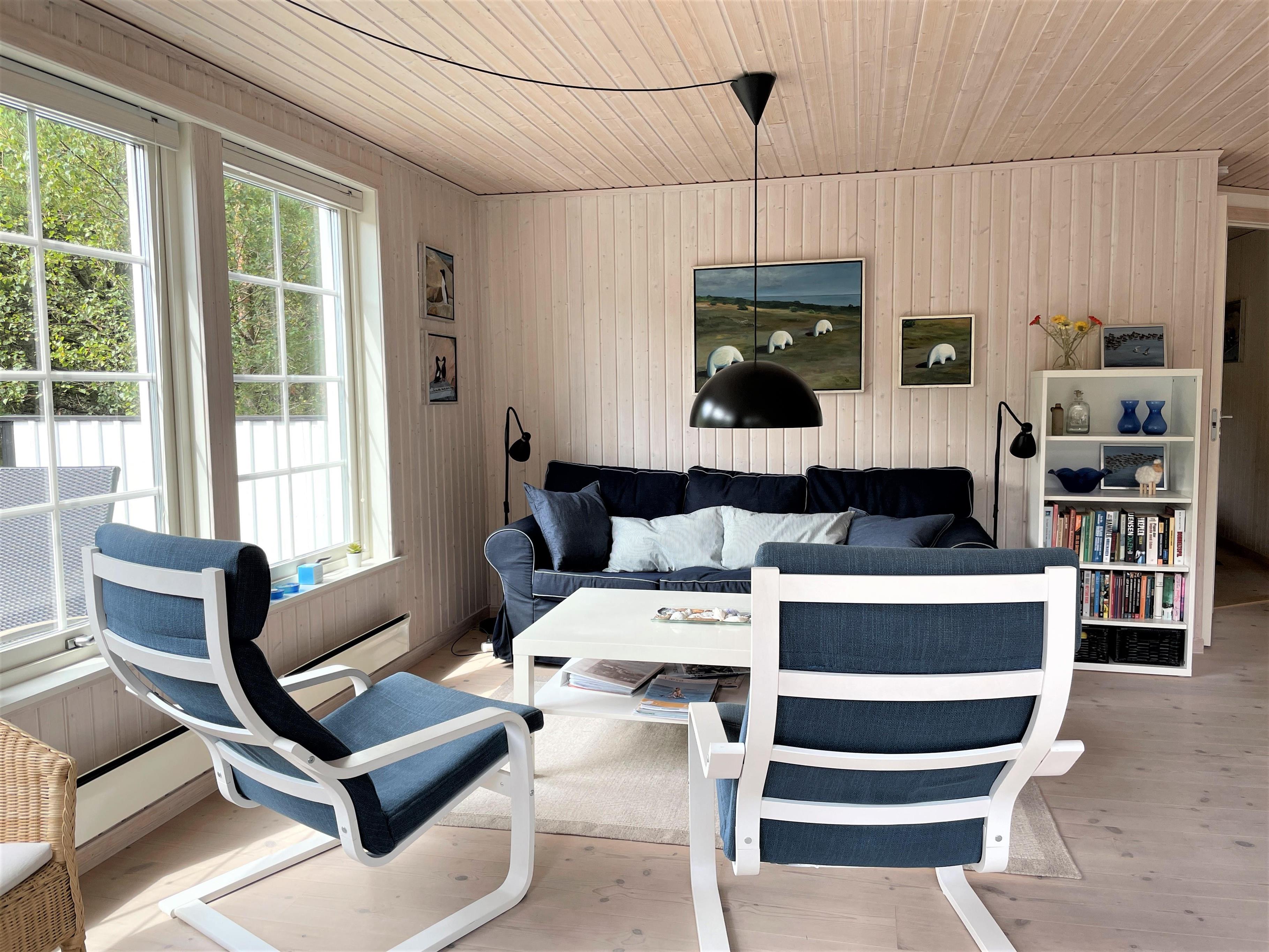 Huset er indrettet lyst og lækkert med moderne møbler, og man fornemmer den helt rigtige sommerhusstemning, straks man træder ind i huset. Stort køkken/alrum og stue, 3 soveværelser; to med dobbeltseng, et med køjeseng. Badeværelse med brus og vaskemaskine. Husets TV har Chromecast.