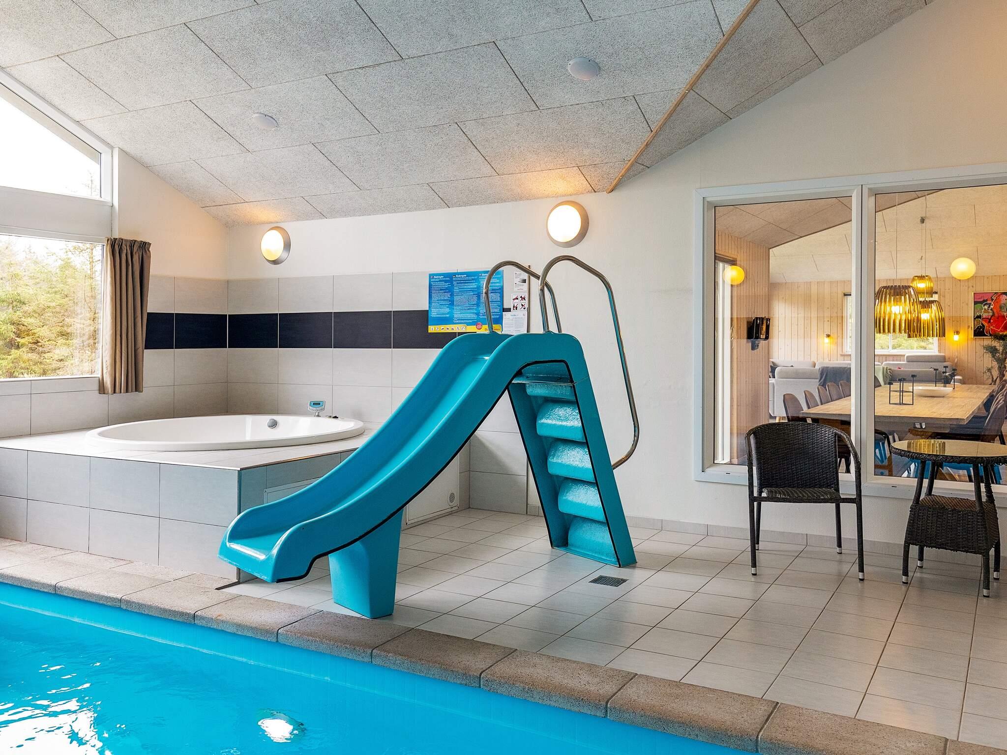 Dette velindrettede feriehus i Ålbæk har en swimmingpool med rutsjebane , som børnene kan boltre sig i, og ren afslapning i spabadet til 4-6 personer og saunaen, der ligger i poolrummet. I aktivitetsrummet kan du spille billard og derefter et spil bordtennis. Der er også bordfodbold, dart og en bar.